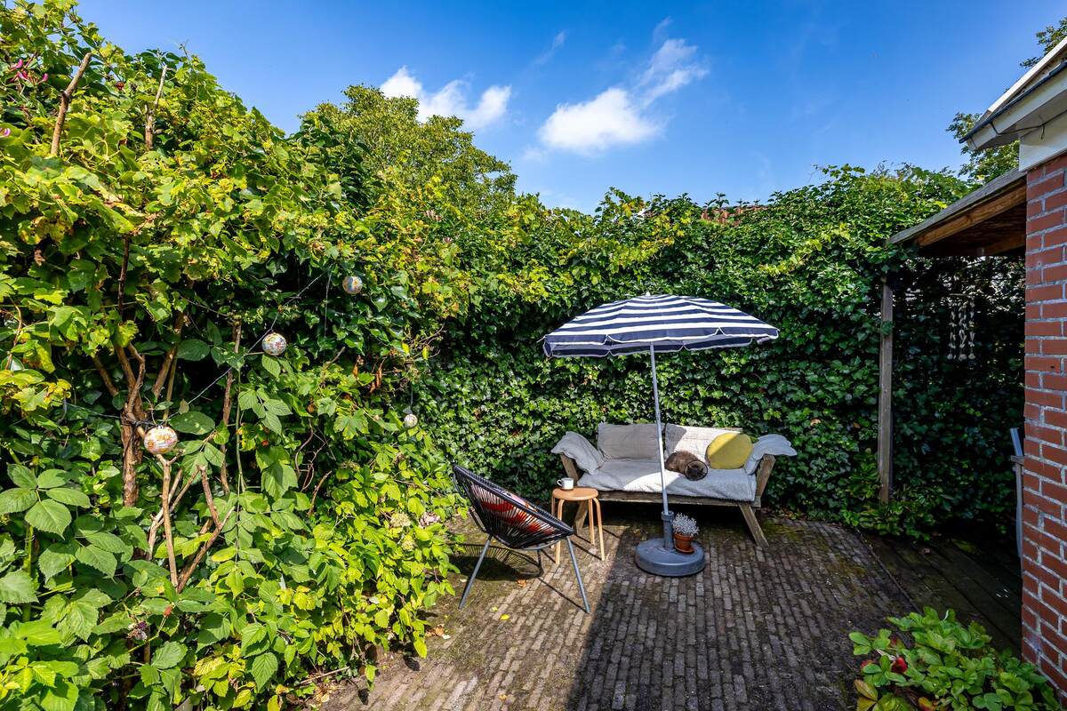 De besloten tuin met overkapping biedt veel privacy. Een eigen stukje paradijs en een oase van rust en sereniteit, perfect om 's ochtends te ontbijten, te ontspannen na een drukke dag of om buiten te borrelen of dineren tijdens warme zomeravonden. Een gedeelte van de zijtuin bij de overkapping is gemeentegrond.