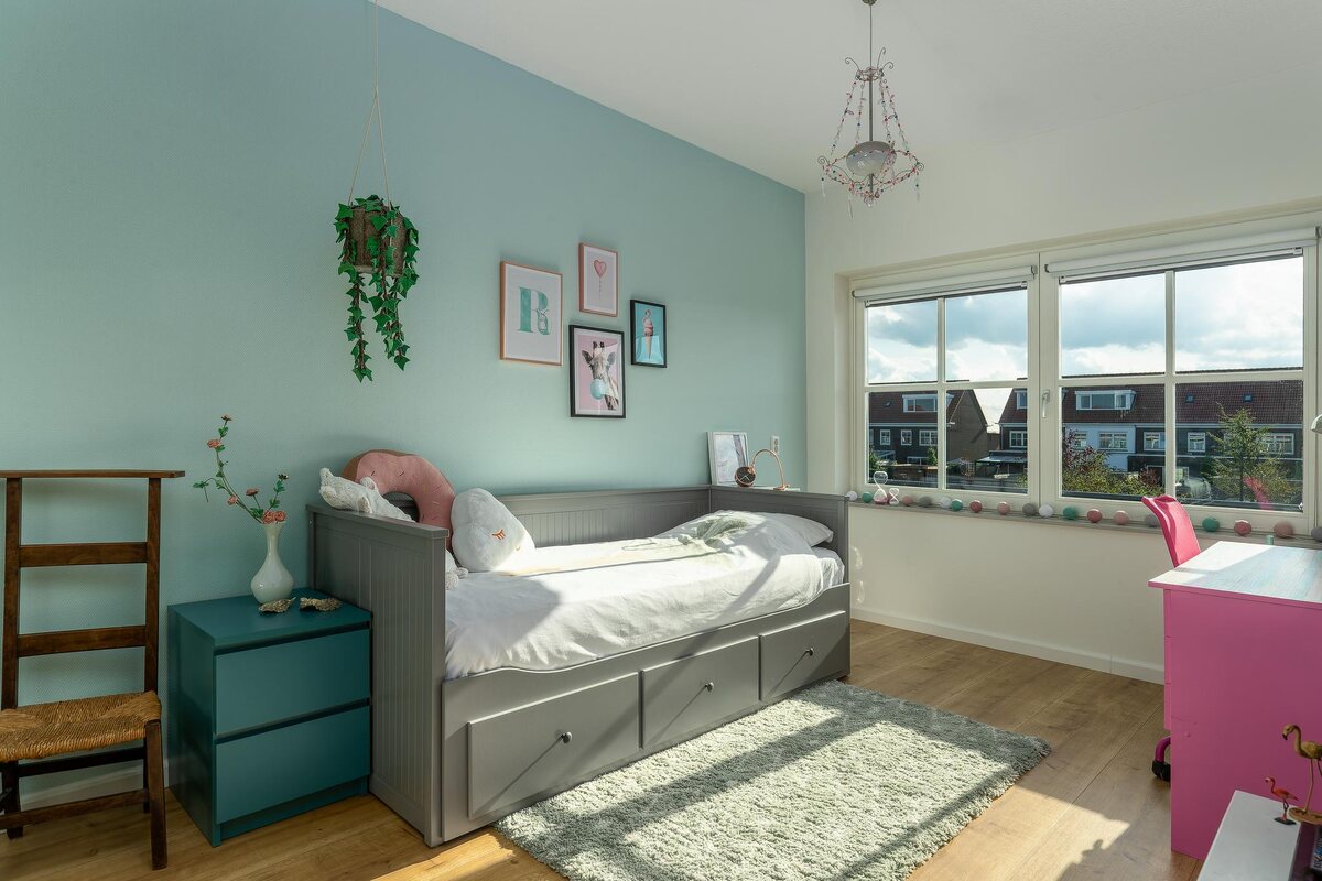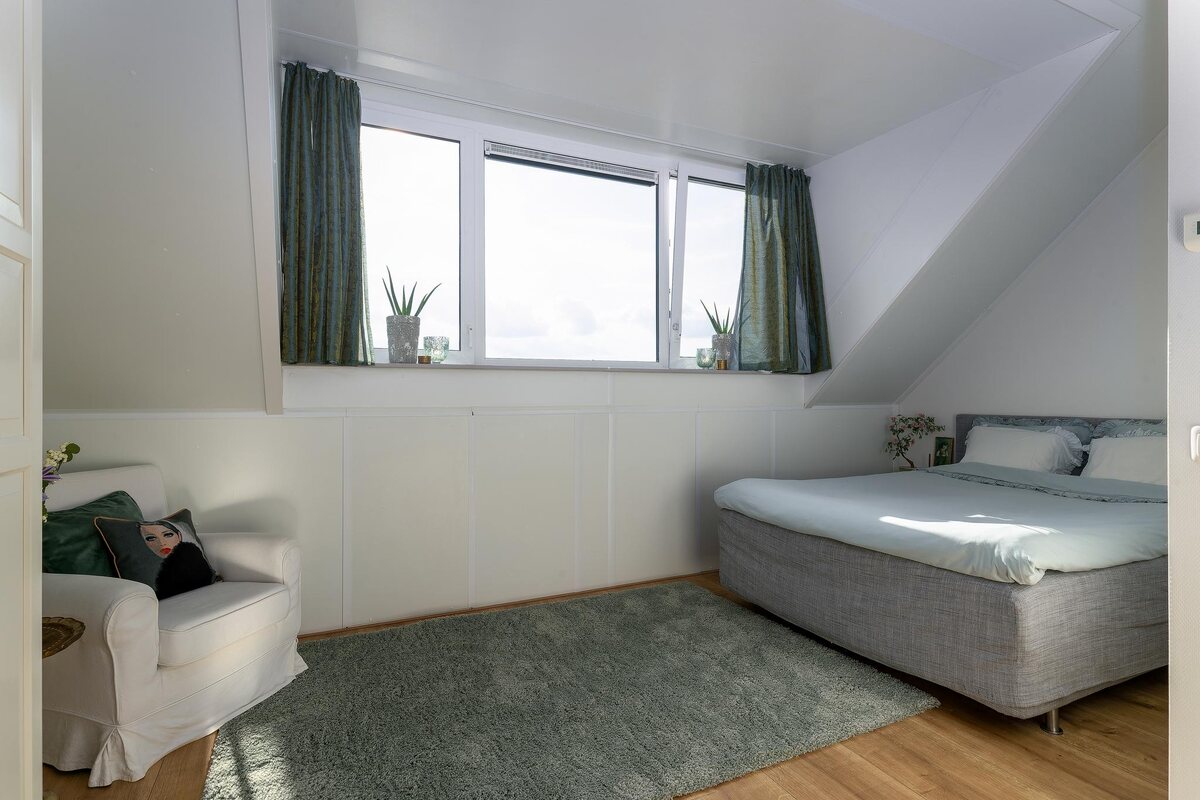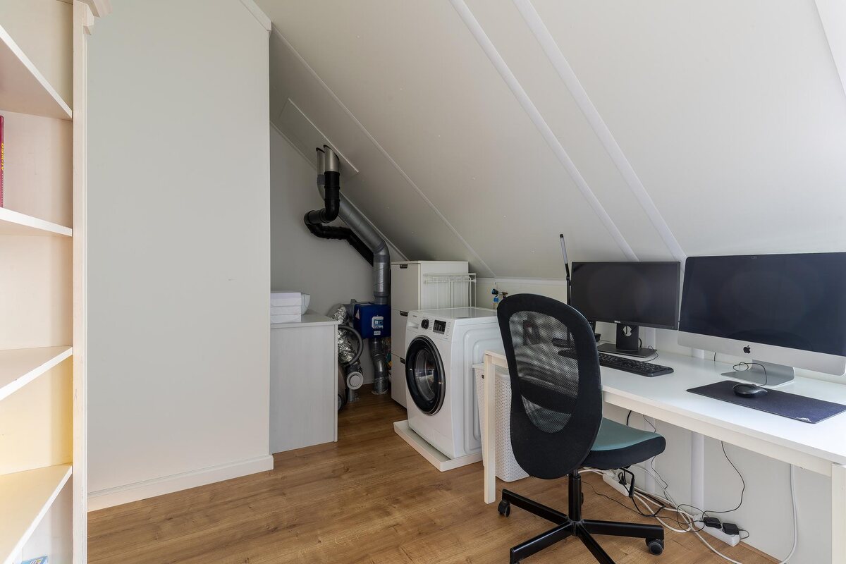 Tweede verdieping: overloop.Waskamer/kantoorkamer (ca. 11 m2) met opstelplaats van de wasmachine en omvormer, kast met warmtepomp. Deze beschikt over een fraai Frans balkon.Slaapkamer 4 (ca. 17 m2) met dakkapel en berging achter de knieschotten.