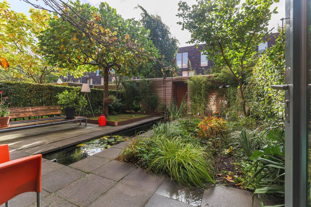 - fijne stadstuin (ca. 80 m2) op het zuidwesten met achterom- 2 praktische fietsenbergingen (4 en 5 m2);