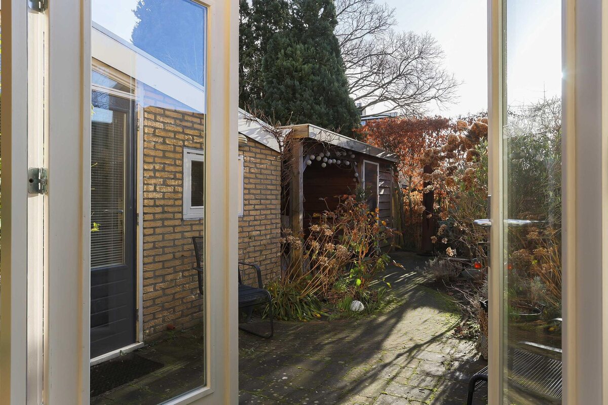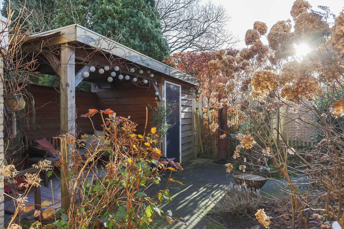 TUIN Voortuin van bijna 50 m2 (grotendeels gemeentegrond) en een fijne besloten achtertuin (ook ca. 50 m2) op het zonnige zuiden. Met achterom en houten berging met overkapping.