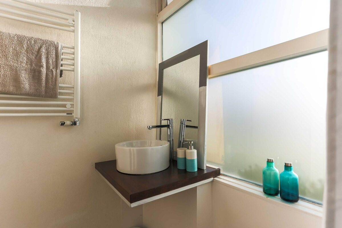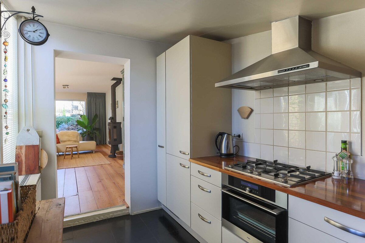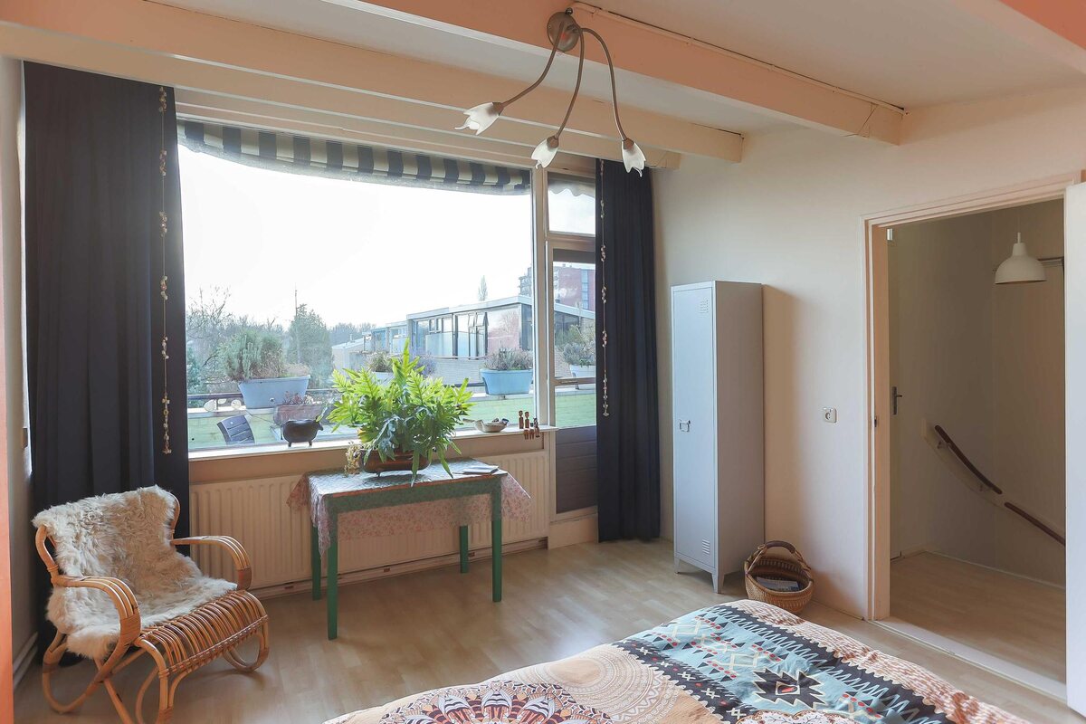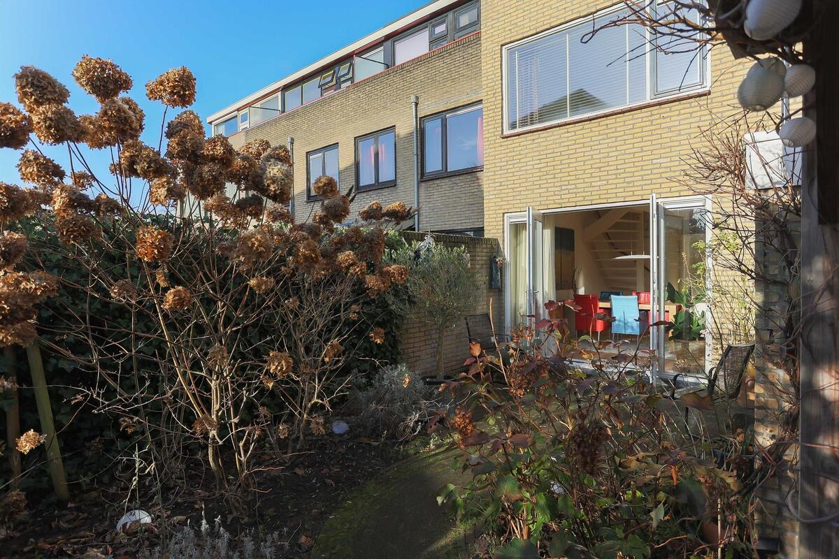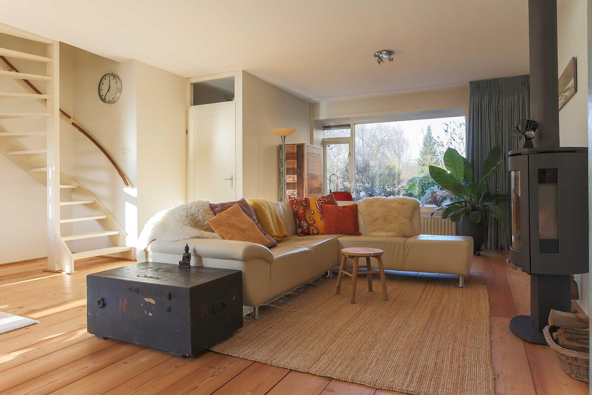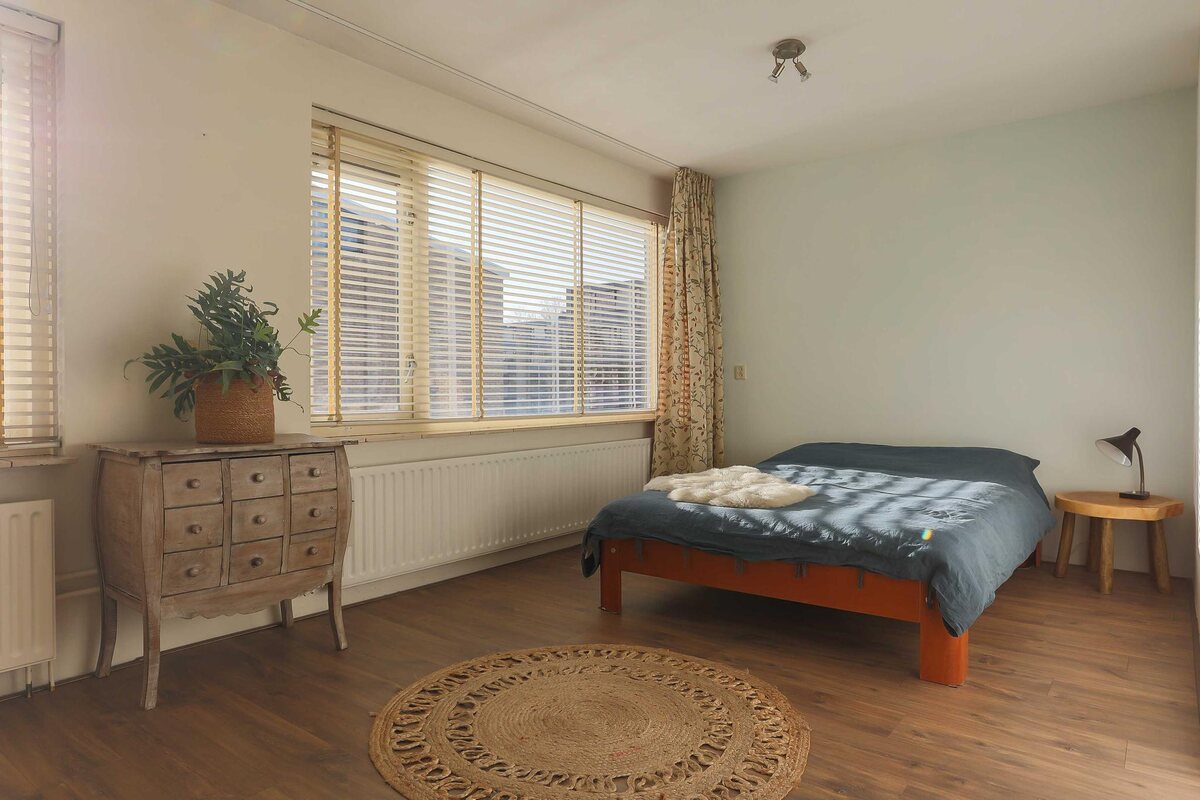 INDELING Begane grond: entree/hal, toilet met fontein, meterkast, lichte en ruimtelijke woonkamer (42m2) met fraaie houten plankenvloer en prachtige houtkachel, dichte keuken (8 m2) met keukenblok in hoekopstelling voorzien van inbouwapparatuur en deur naar de zonnige achtertuin met achterom. Eerste verdieping: overloop, separaat hangend toilet en 2 flinke slaapkamers (respectievelijk 21 en 14 m2). De nette, volledig betegelde, badkamer (5 m2) heeft een douche in ligbad en dubbele wastafel. De grootste slaapkamer is ontstaan door een samenvoeging van 2 slaapkamers. Tweede verdieping: overloop, praktische tweede badkamer (3 m2) met douche en wastafel, een slaapkamer (13 m2) met deur naar dakterras (8 m2) en nog een slaapkamer (totaal 16 m2) met aparte wasruimte en opstelplaats cv-ketel.