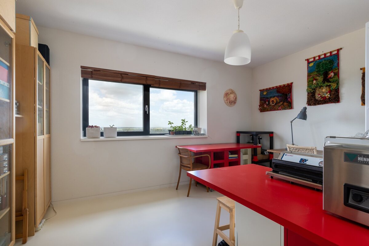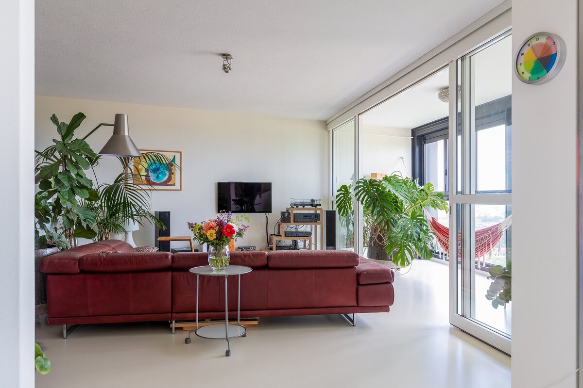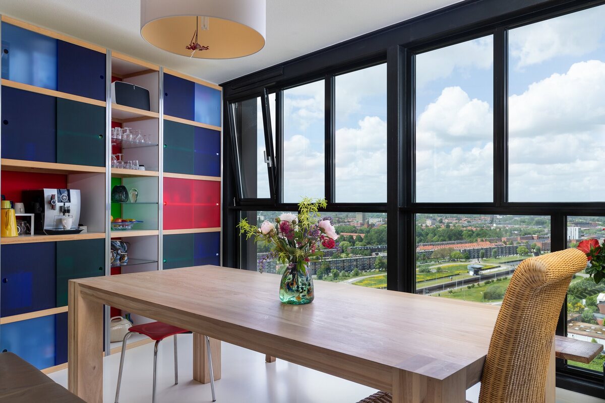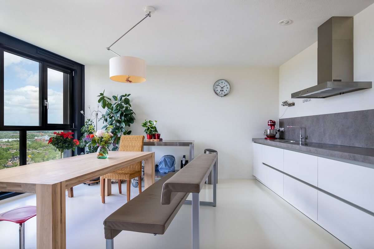 Indeling appartement: entree/hal (20 m2), toilet, berging, riante living van totaal 84 m2 waaronder de woonkamer (maar liefst 48 m2), serre/balkon (11 m2) en een half open luxe woonkeuken (ca. 25 m2). Door de glazen pui in de woonkamer volledig open te vouwen creëert u als het ware een groot inpandig balkon met een prachtig uitzicht! Daarnaast is het genieten van de middag-avondzon. Verder 3 grote slaapkamers (21, 16 en 16 m2) en 2 badkamers van 12 en 4 m2.