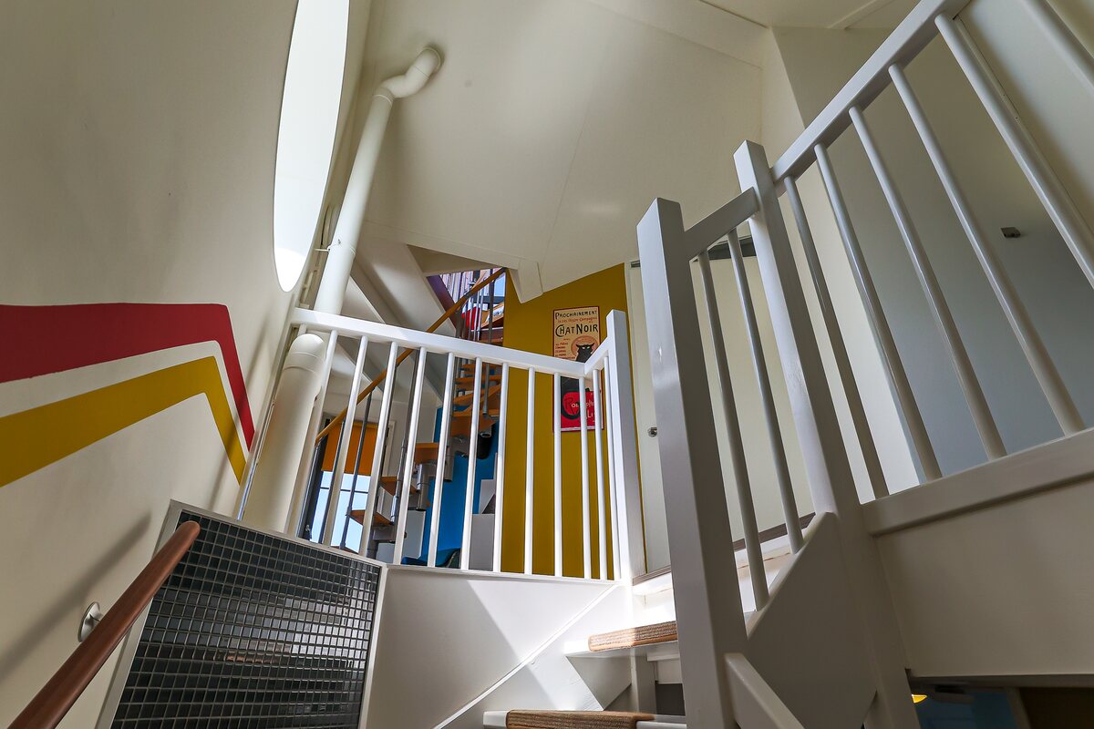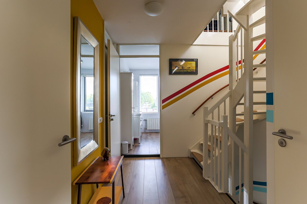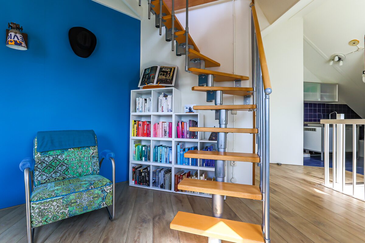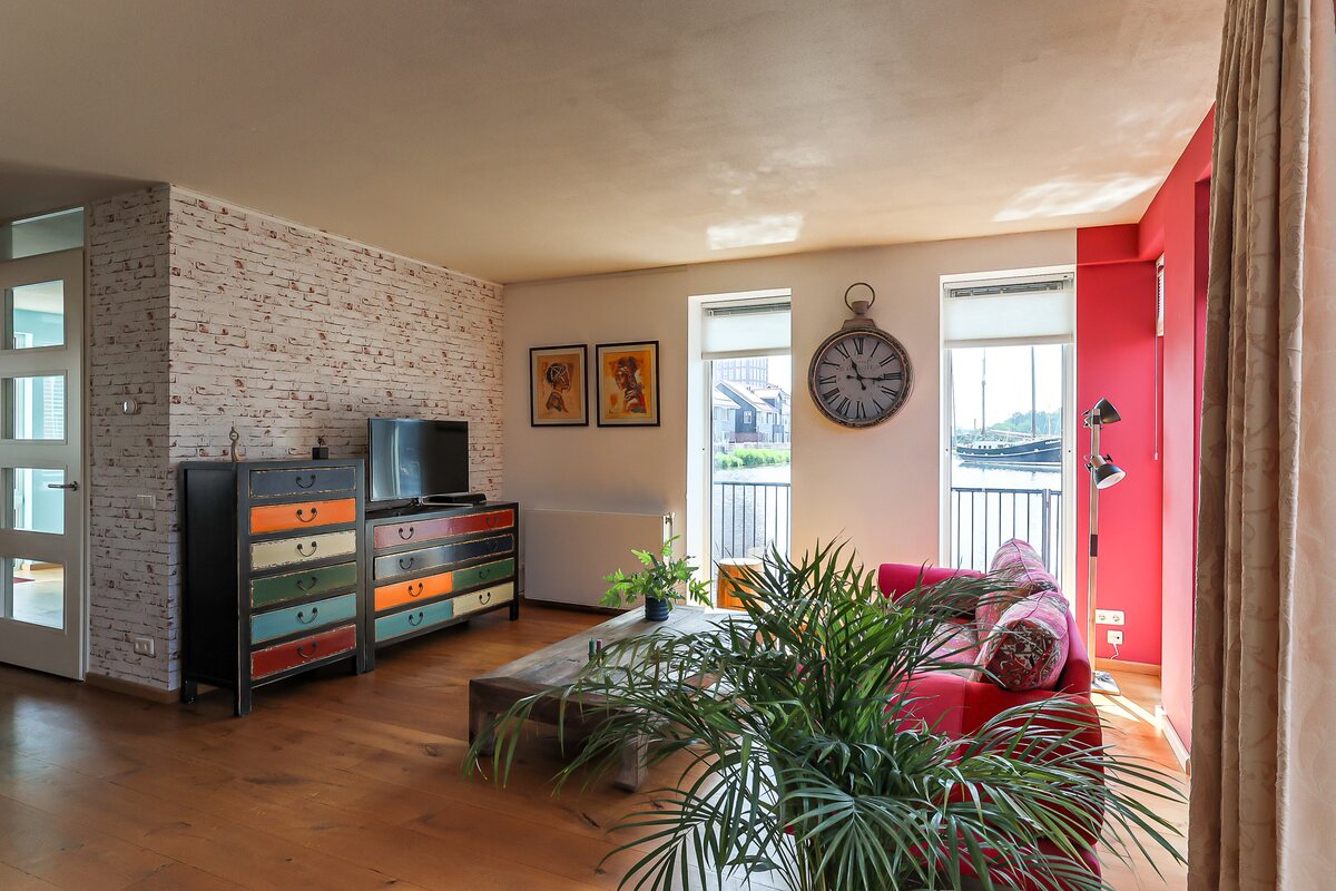 KLEURRIJK WONENFantastisch gelegen (met vele fraaie uitzichten) royaal en luxe herenhuis (hoek) aan het water (open vaarverbinding) met eigen aanlegsteiger, twee eigen parkeerplaatsen in de garage onder de woning en een flinke berging. Verdeeld over 5 woonlagen! Woonoppervlakte maar liefst 177 m2 en deze meters zijn bijzonder speels verdeeld over de woonlagen.