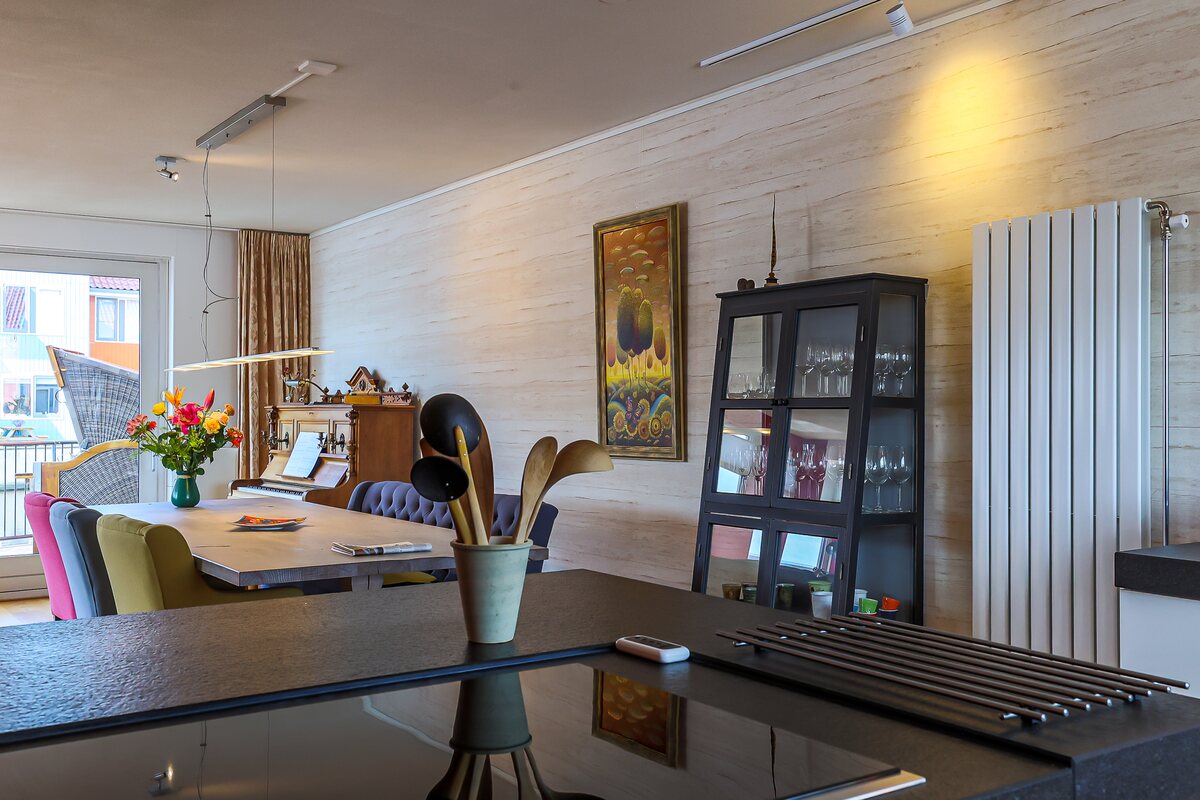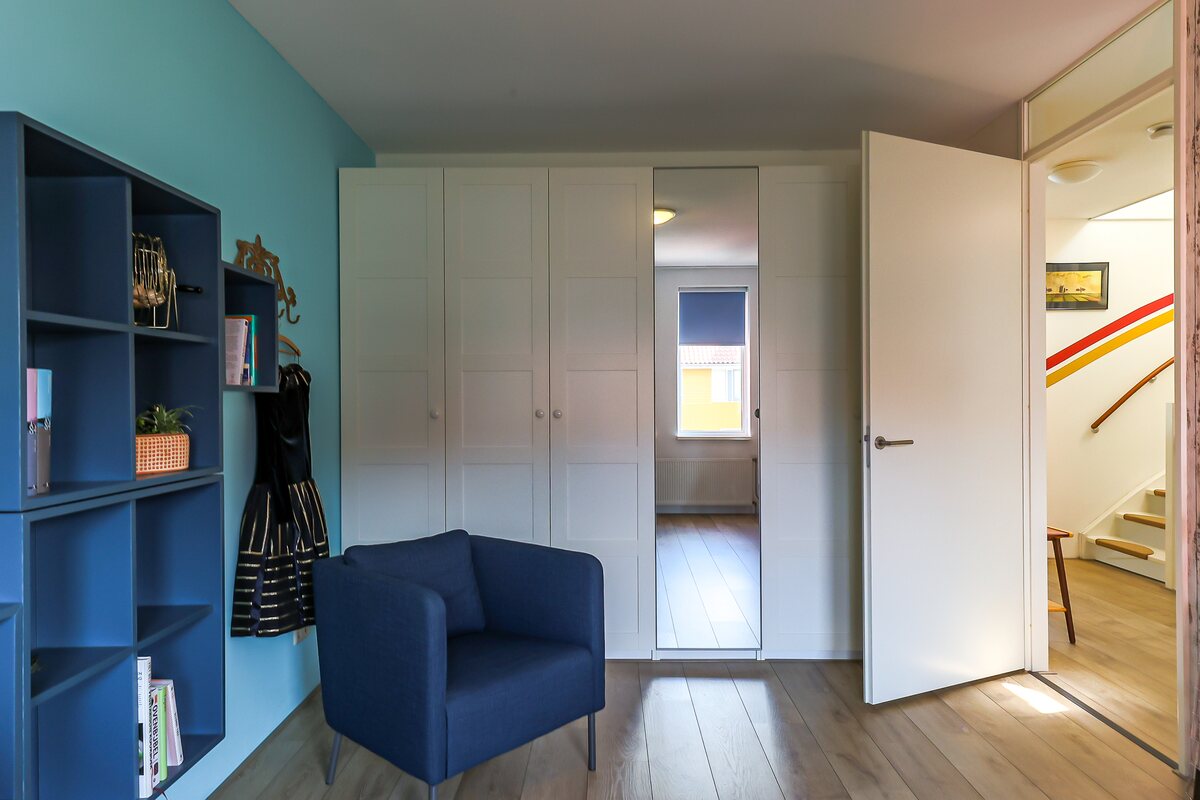 Kelder: twee eigen parkeerplaatsen, ruime berging (25 m2), hal en toegang tot de begane grond.Begane grond: entree/hal, toilet met fonteintje, royale lichte woonkamer ca. 48 m2 met open luxe keuken (2015) voorzien van diverse inbouwapparatuur en kookschiereiland en schuifpui naar heerlijk terras (28 m2) op de zon aan het water. De woonkamer is tevens voorzien van een nette laminaatvloer.Eerste verdieping: drie slaapkamers (16, 14 en 14 m2), separaat toilet, en een keurige badkamer van ca. 8 m2 (vernieuwd in 2015).Tweede verdieping: Een bijzondere etage! Overloop, met leuke leeshoek (8 m2) in het torentje, 4e slaapkamer/sportruimte (14 m2) met Finse sauna en aparte douche. Op de overloop ook nog een pantry en de wasmachineaansluiting. Vanuit de leeshoek een vaste trap naar...Derde verdieping: gave stuurmanshut (8 m2) met rondom prachtige en verre uitzichten.
