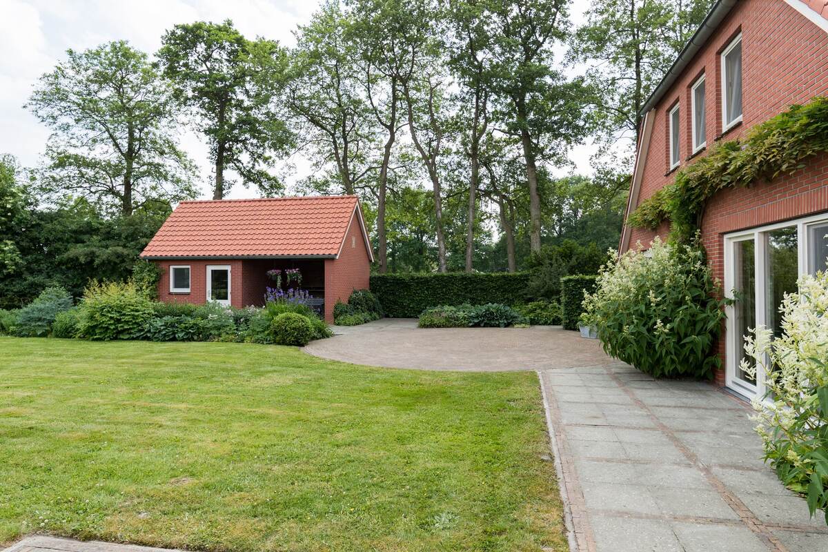 Naast de woonboerderij staat een in 1997 gerealiseerde volledig geisoleerde vrijstaande royale garage. De garage beschikt over twee elektronische roldeuren, grote vliering, een extra woonruimte/tuinkamer met vloerverwarming en badkamer.Op het perceel is een vrijstaande stenen tuinhuis aanwezig (2002 gebouwd) die eveneens volledig geisoleerd is uitgevoerd.
