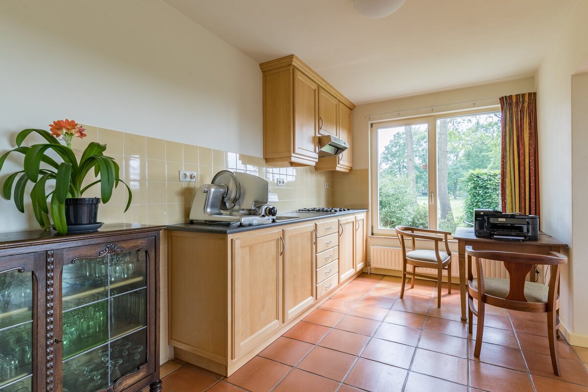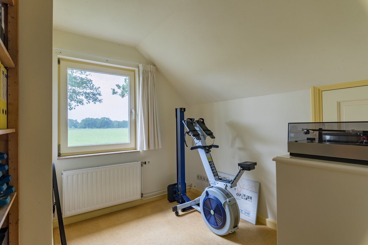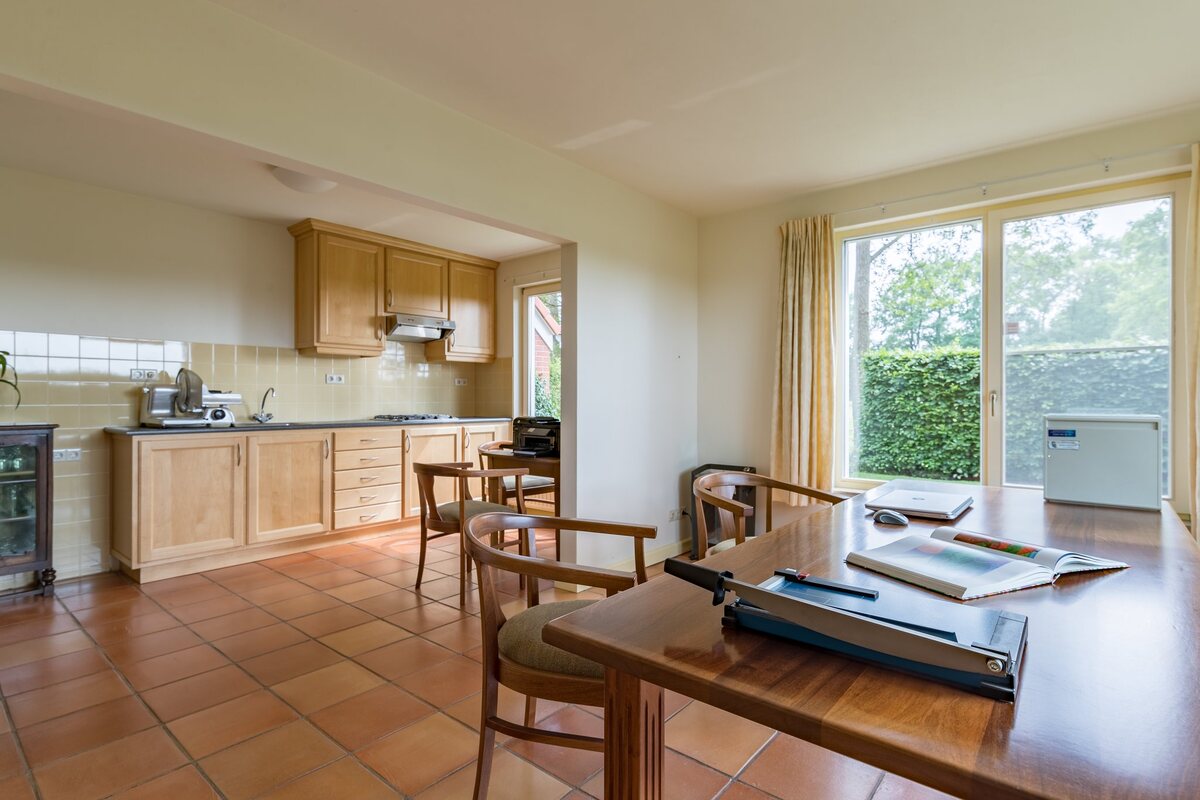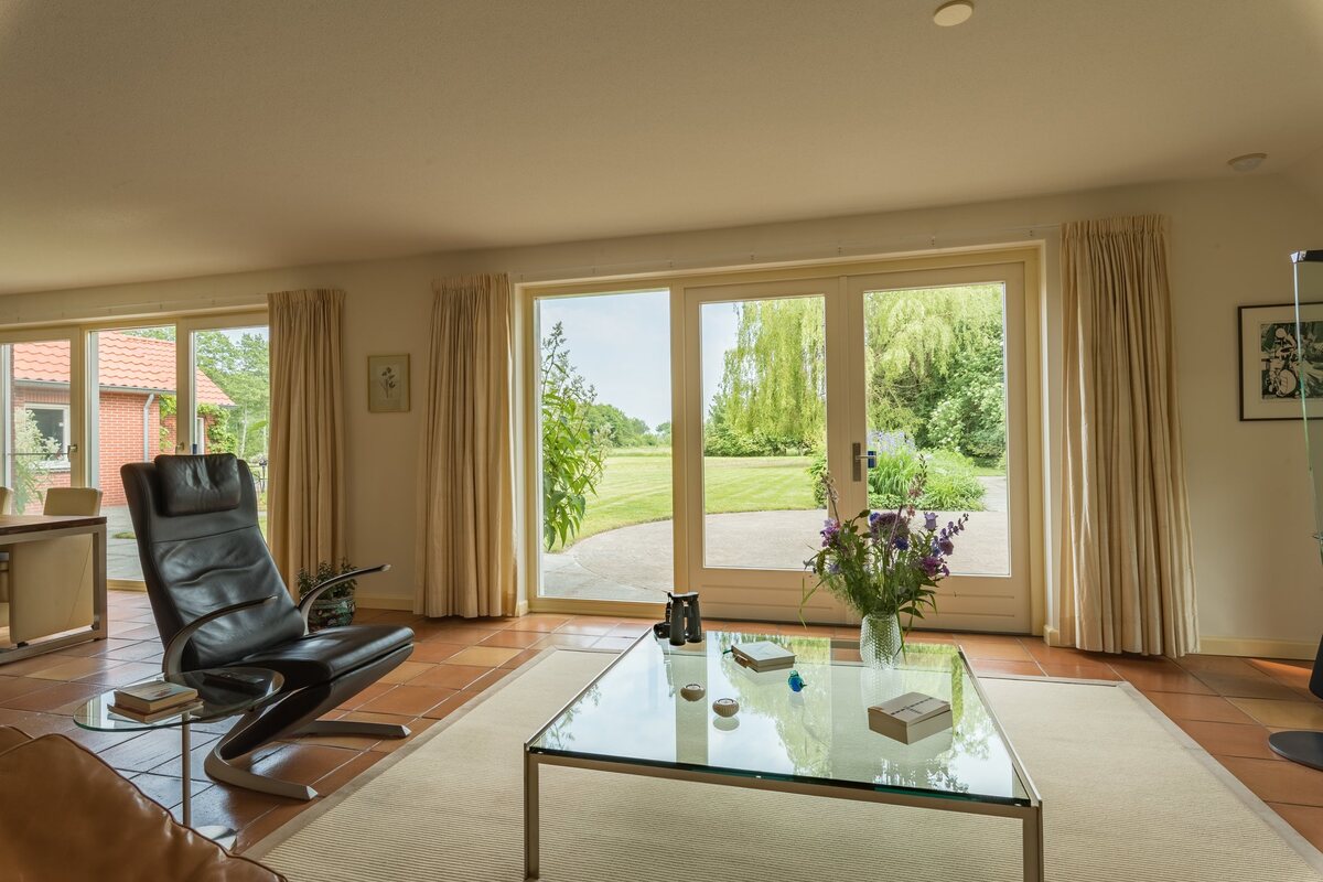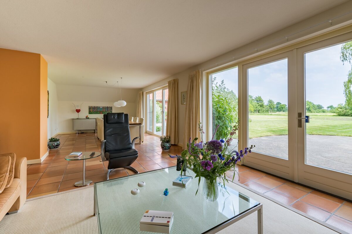 Begane grondEntree/hal, tussenhal. Royale woonkamer van ca. 76 m2 met zicht over de landerijen. Woonkeuken van ca. 20 m2 met inbouwkeuken. Werkkamer, bijkeuken met tweede entree.Voorhuis met woon-/slaapkamer, keuken, badkamer (2016) en eigen entree.Eerste verdieping: