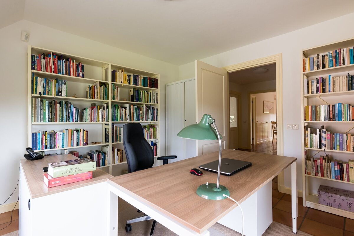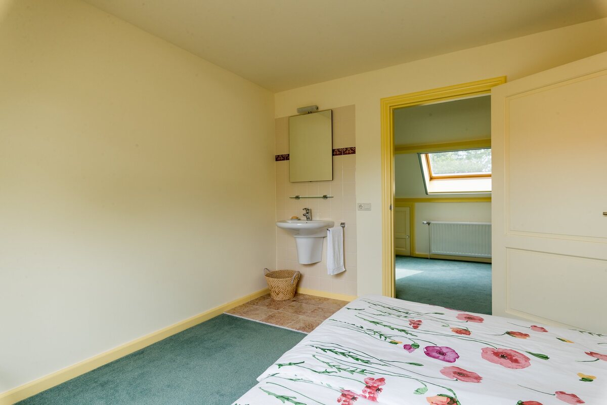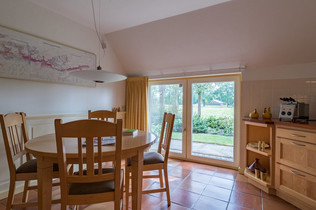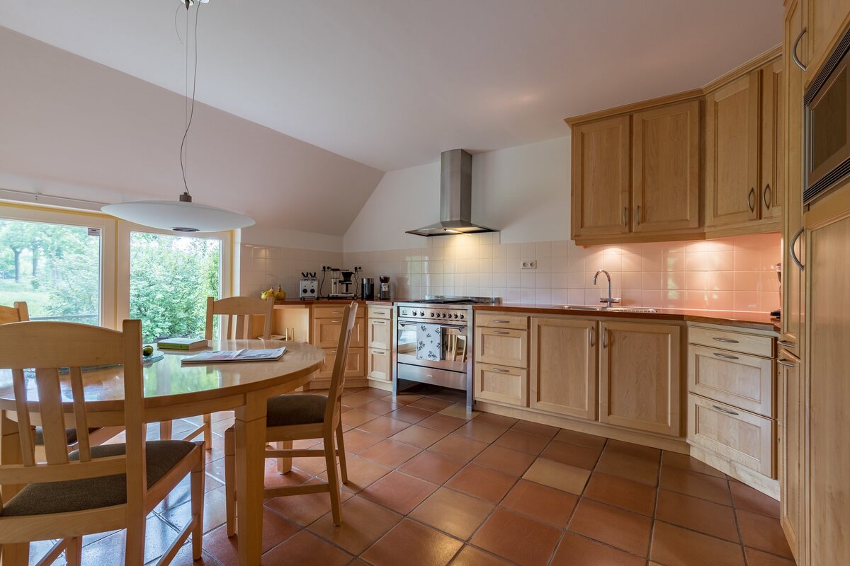 Begane grondEntree/hal, tussenhal. Royale woonkamer van ca. 76 m2 met zicht over de landerijen. Woonkeuken van ca. 20 m2 met inbouwkeuken. Werkkamer, bijkeuken met tweede entree.Voorhuis met woon-/slaapkamer, keuken, badkamer (2016) en eigen entree.Eerste verdieping: