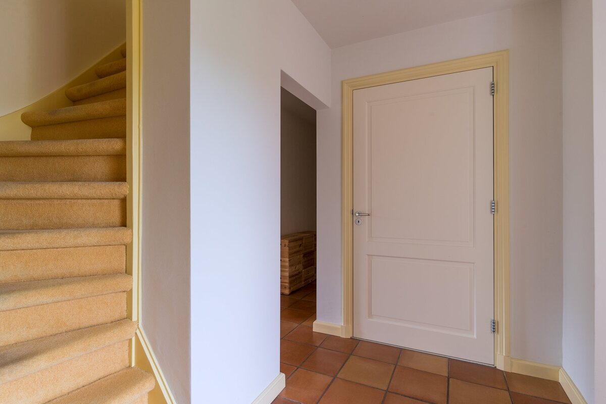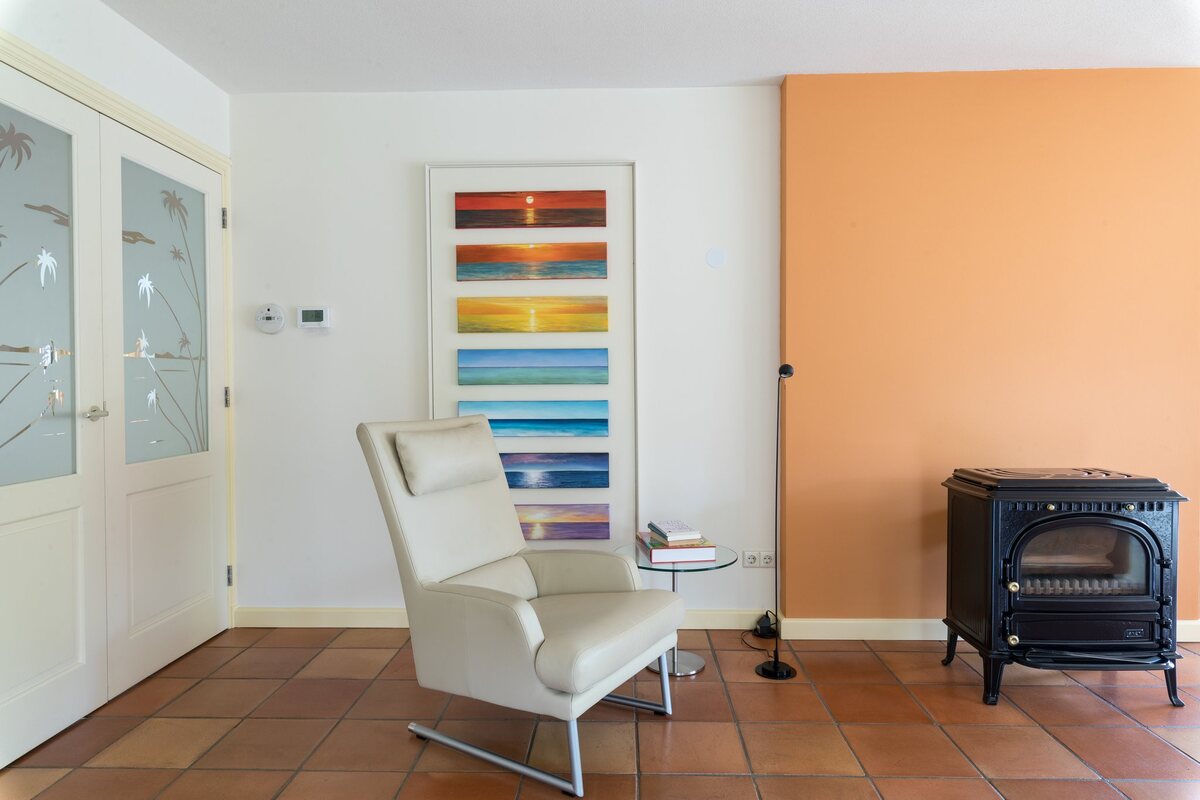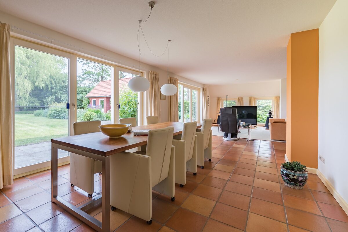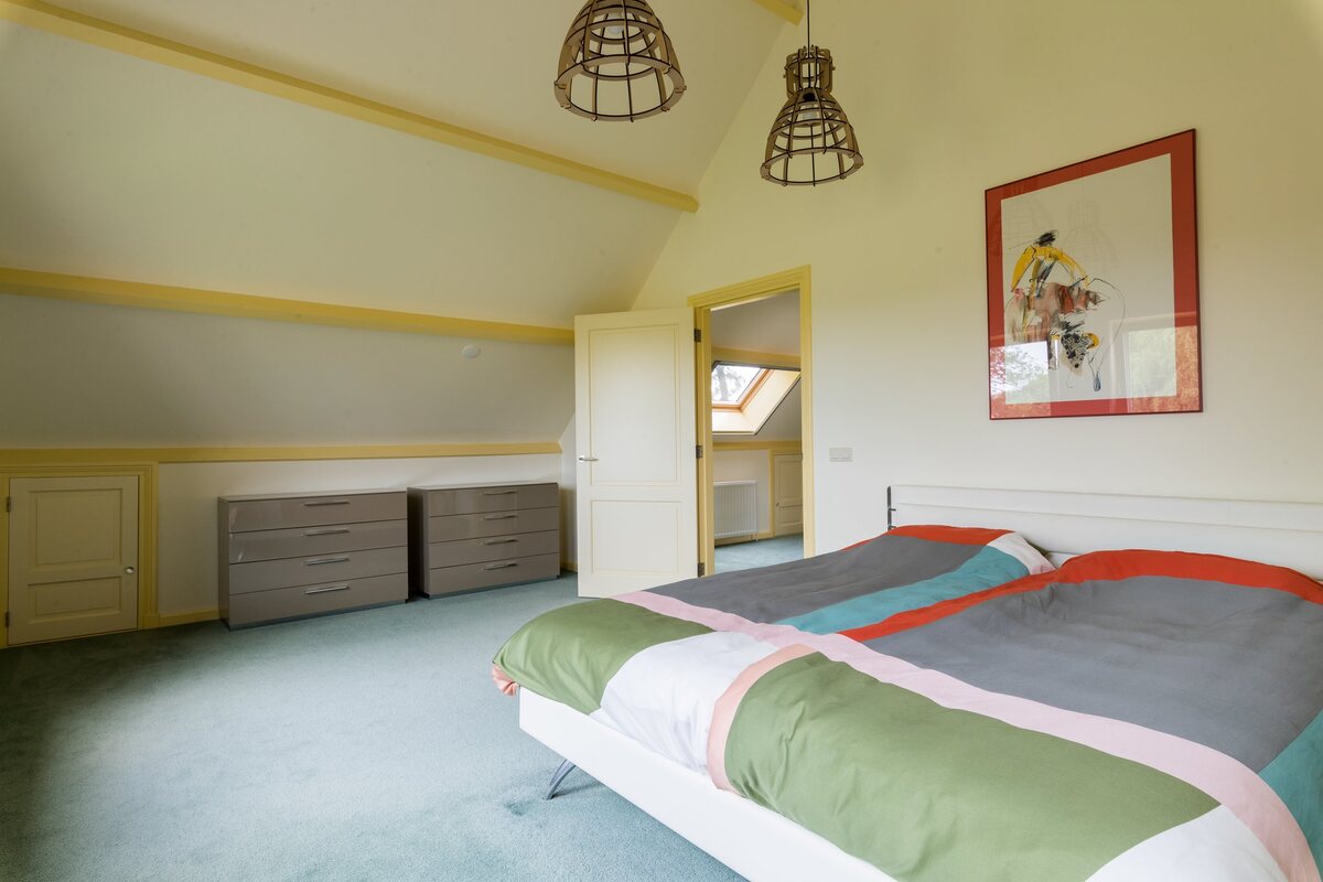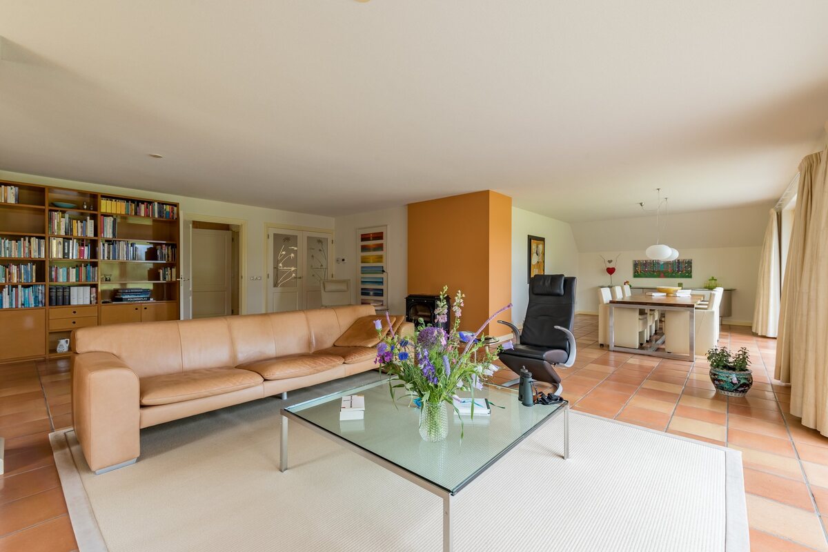 Begane grondEntree/hal, tussenhal. Royale woonkamer van ca. 76 m2 met zicht over de landerijen. Woonkeuken van ca. 20 m2 met inbouwkeuken. Werkkamer, bijkeuken met tweede entree.Voorhuis met woon-/slaapkamer, keuken, badkamer (2016) en eigen entree.Eerste verdieping: