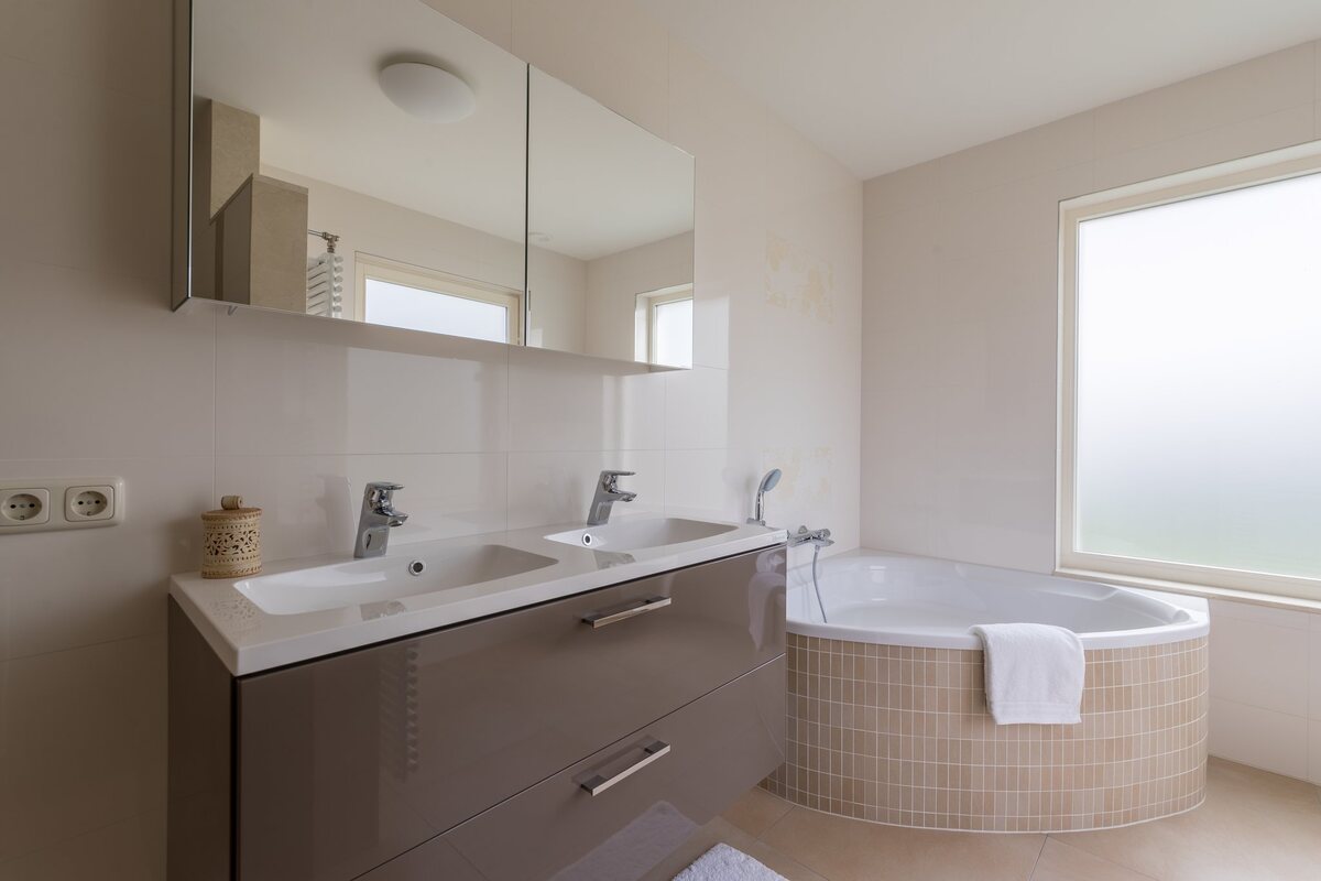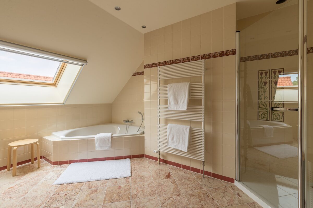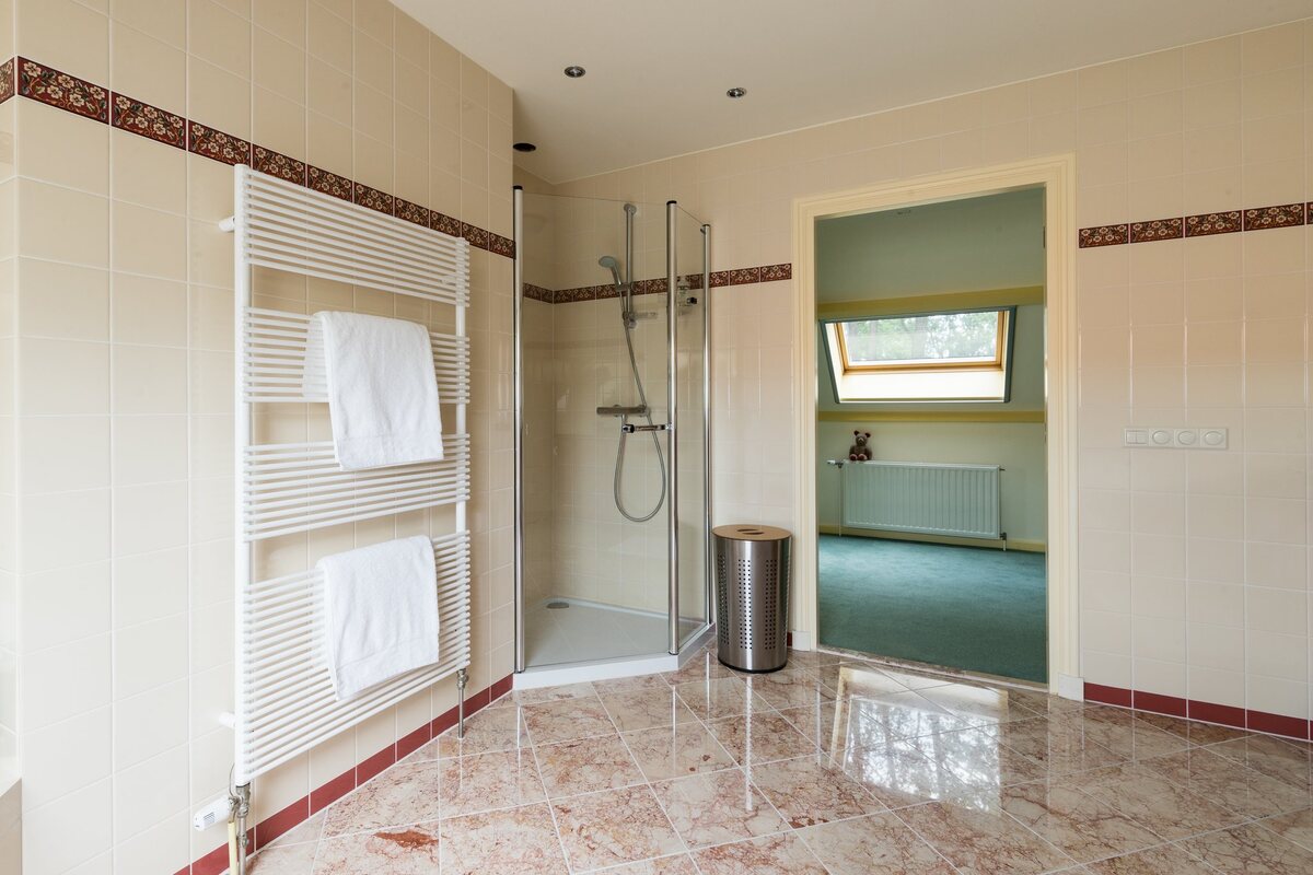 Overloop (meerdere delen), vier slaapkamers van ca. 7, 9, 16 en 27 m2. Twee badkamers van ca. 5 (douche, toilet, wastafel) en 16 (douche, toilet wastafelmeubel met dubbele wastafel, ligbad, designradiator) m2.