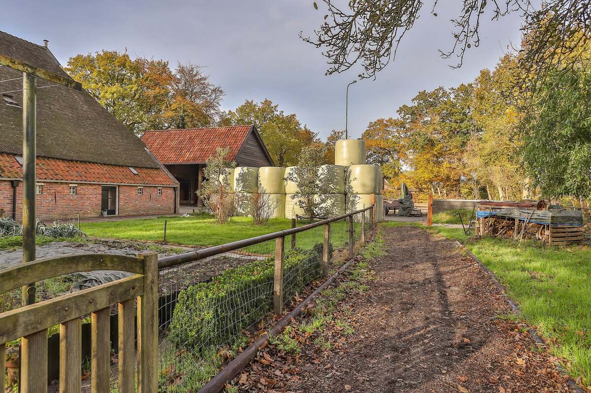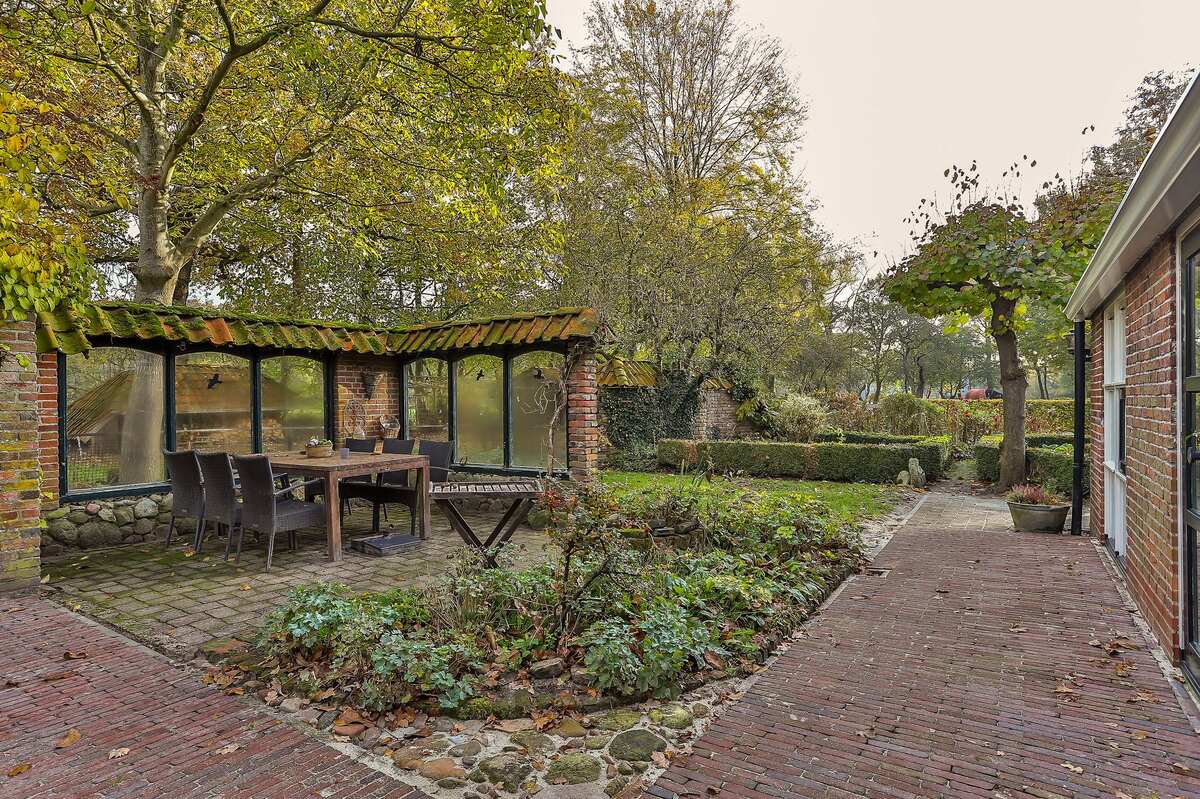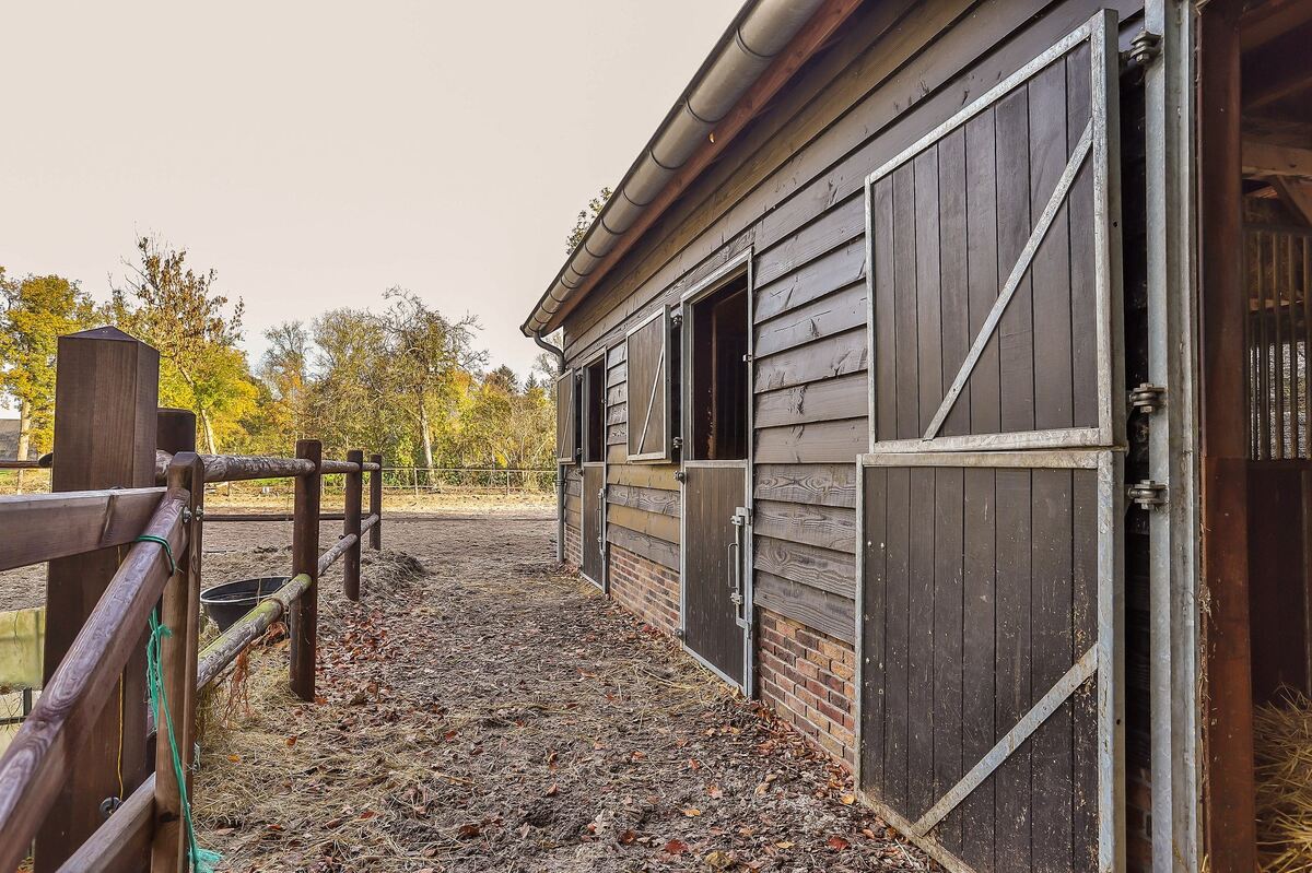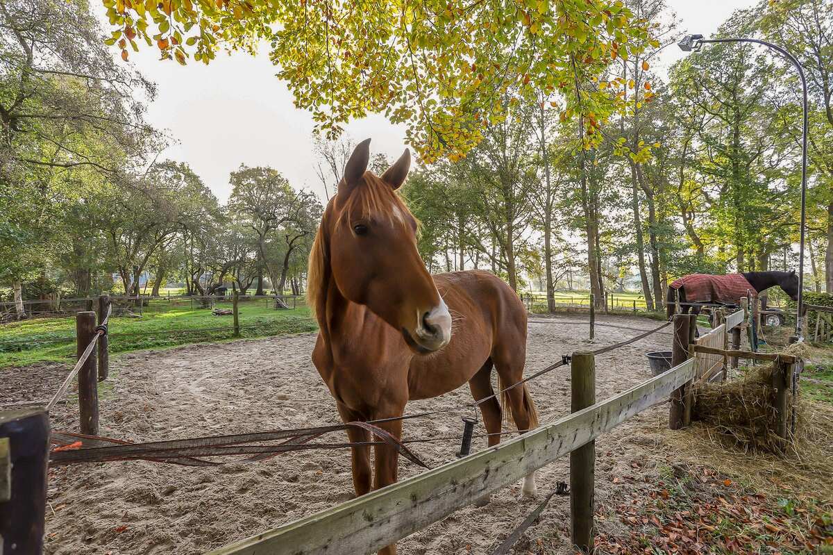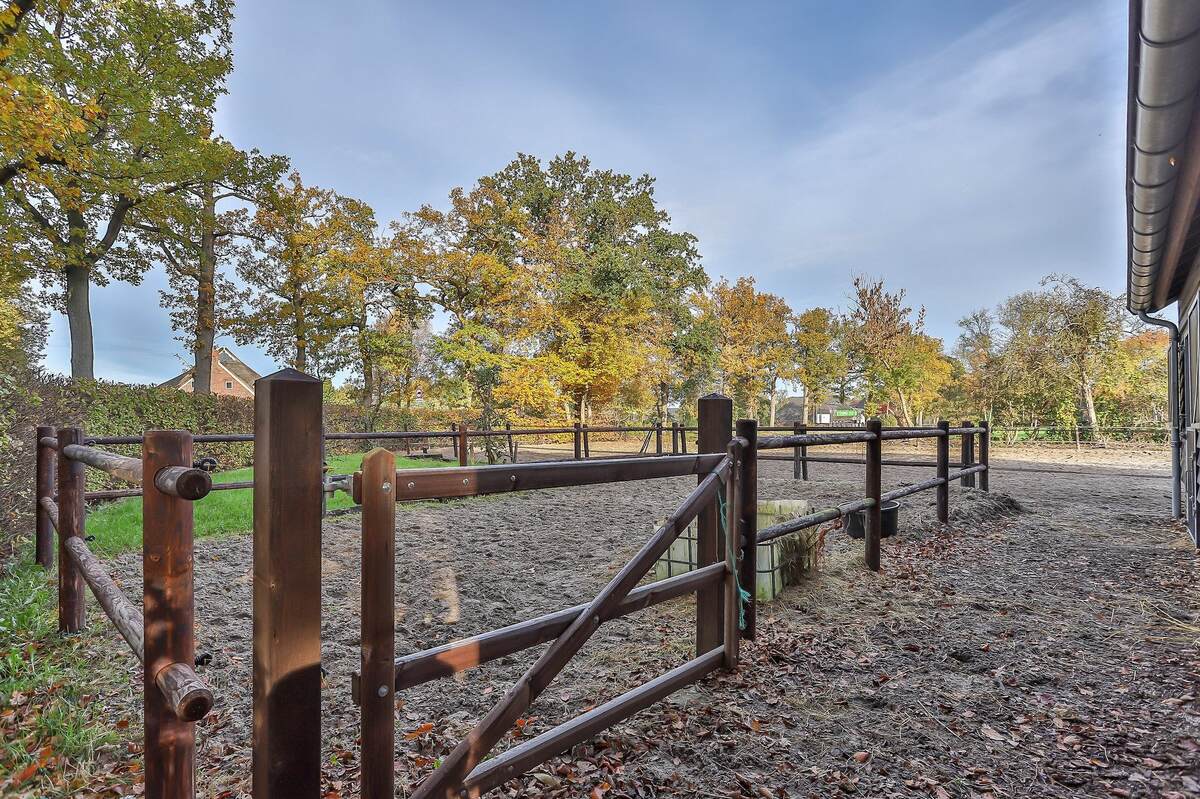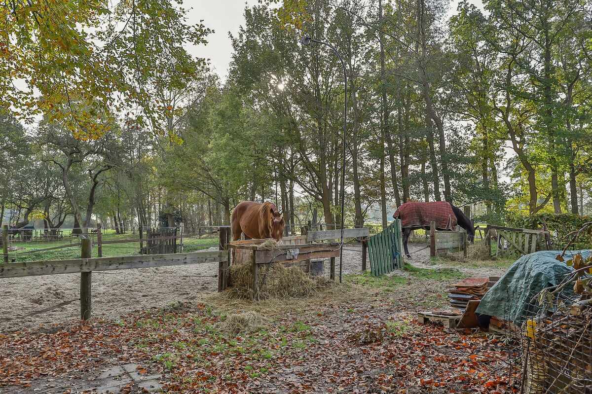 Robuuste kapschuur (ca. 7,5m. bij 10,8m. met drie boxen en een hooizolder)Gedraineerde buitenbak ca. 33 m. bij 20 m. Heerlijke besloten en groene tuin met vele zon- en schaduwplekjes, kippenhok, stookhut, een eigen waterput, terrassen, gazon en borders.Direct aan de tuin ligt een weiland perceel, geschikt voor meerdere paarden.Maar natuurlijk is met dit object ook ruimte voor het realiseren van andere hobby's mogelijk.
