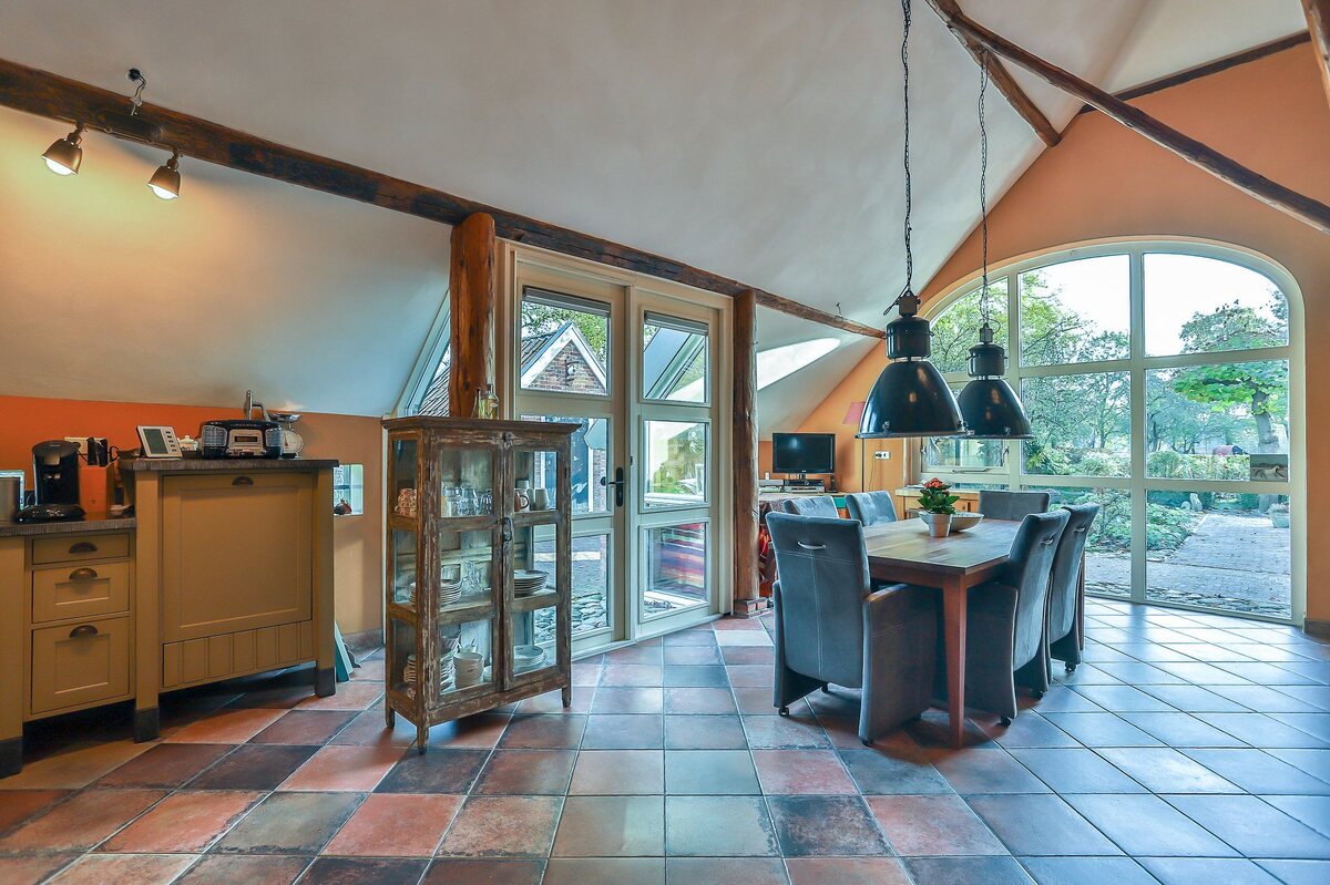 Uniek!Prachtig landelijk in Drentse Coulisselandschap en toch in de nabijheid van Groningen gelegen, zorgvuldig en compleet gerestaureerde woonboerderij (zeer hoog afwerkingsniveau). Volop natuur, de Kleibos, de prachtige Onlanden en het Leekstermeer op korte afstand en met Roden en Peize een compleet winkel aanbod en sportvoorzieningen.De prachtige woonboerderij is voorzien van 6 slaapkamers, een deel met twee paardenboxen, een traditionele kapschuur met eiken gebinten met nog eens drie paardenboxen, royale tuin met boomgaard, kippenhok, terrassen, borders, een gedraineerde rijbak en een fraai stuk weiland grond. In totaal 1.05 ha eigen grond (optioneel meer in bruikleen te verkrijgen). Luxe aangekleed - onder andere vloerverwarming op de begane grond, compleet geïsoleerd, centraal stofzuigsysteem en mechanische ventilatie.Indeling: