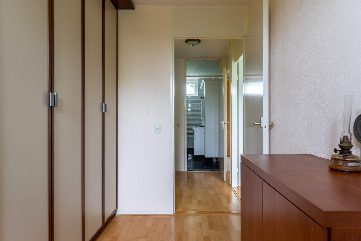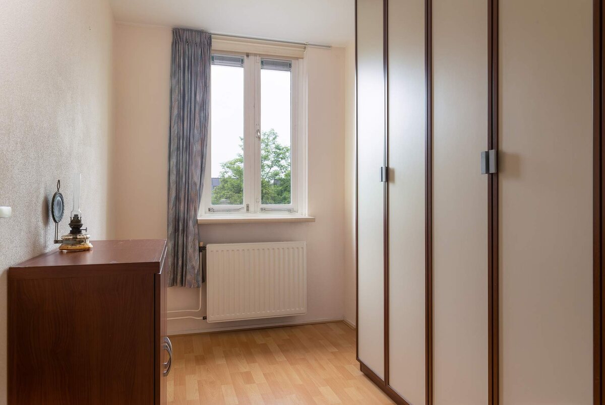 Begane grond: entree, hal, toilet, lichte woonkamer met houten parketvloer, half open keuken met keukeninrichting en aansluitend aan de keuken de bijkeuken (10 m2). De oppervlakte van de woonkamer en keuken bedraagt zo'n 34 m2. Eerste verdieping: overloop, 3 slaapkamers van 10, 13 en 7 m2, nette badkamer met douche, tweede toilet en wastafelmeubel.Tweede verdieping: overloop, veel bergruimte en een flinke 4e slaapkamer (14 m2).