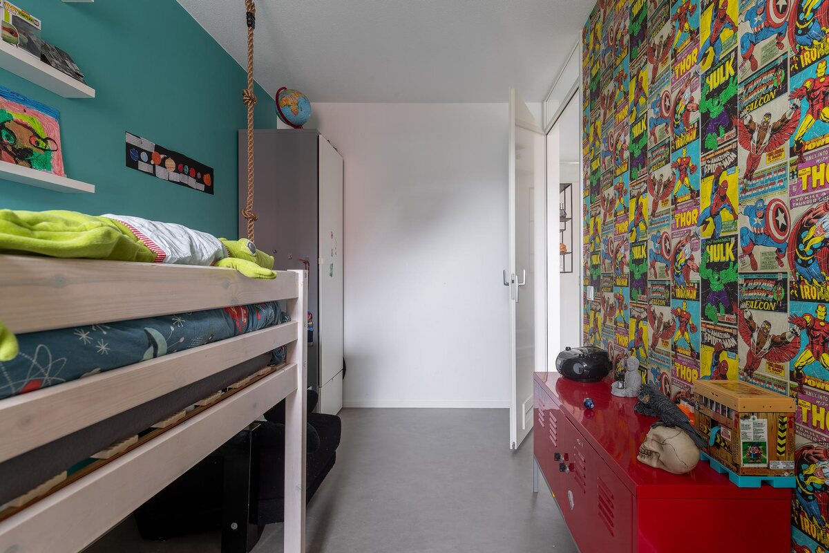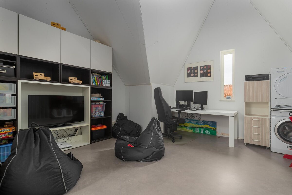 Tweede verdieping: ruime multifunctionele ruimte van ca. 22 m² groot dat dienst kan doen als werkruimte of als speelplek voor de kinderen. Hier bevindt zich ook de technische installaties van de woning, als ook de wasmachine aansluiting. Aan de achterzijde bevinden zich nog twee slaapkamers van beide ca. 9 m² groot. De nok van het dak is hoog. Zodoende voelt deze verdieping ook ruim aan. Verder zijn er nog knieschotten en een vide aanwezig om spullen op te bergen.