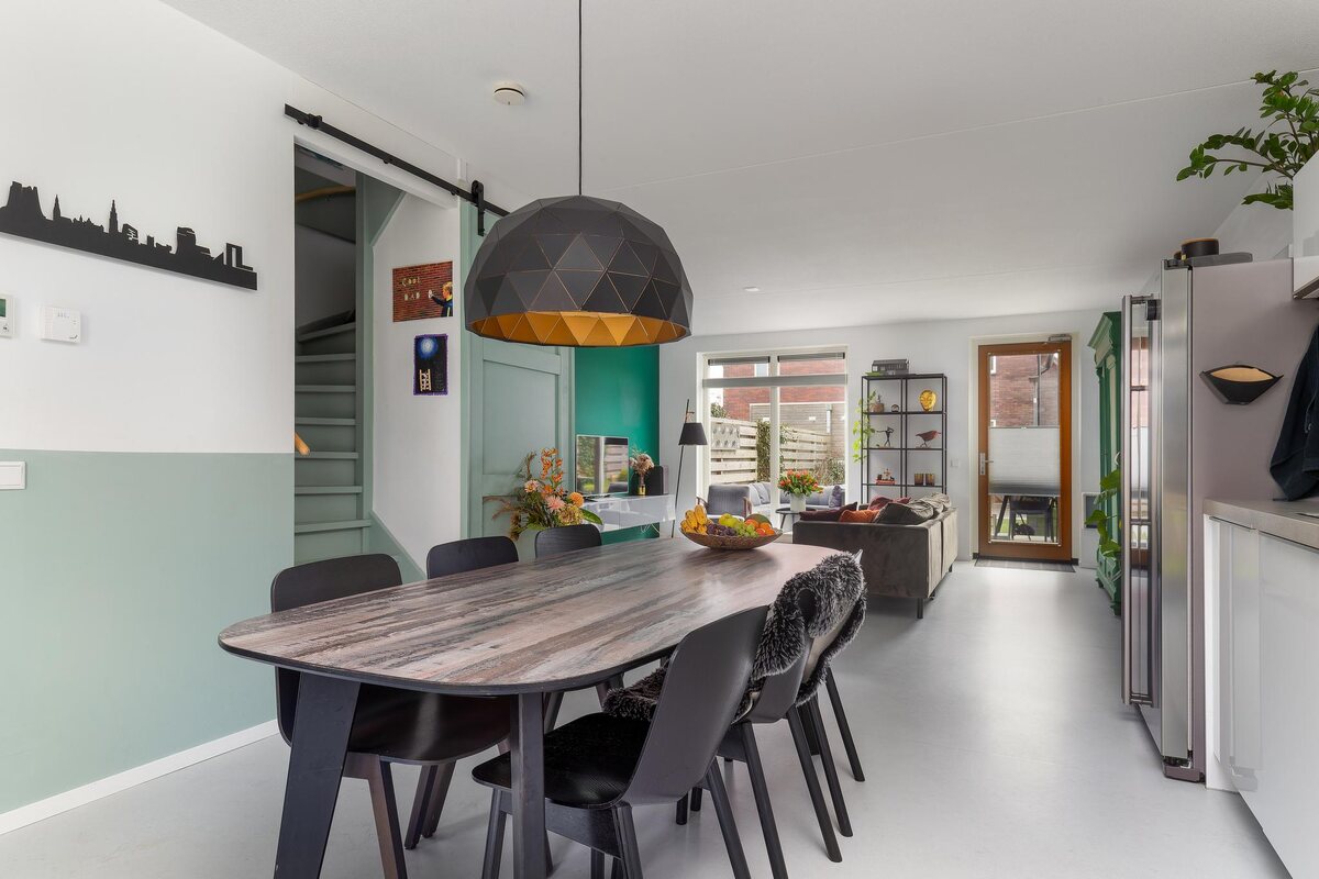 Begane grond: entree/hal met meterkast en toilet. De tuingerichte woonkamer met open keuken is in totaal ca. 45 m² groot. De keuken is voorzien van diverse inbouwapparatuur en grote raampartijen. Via de woonkamer is ook de achtertuin te betreden. Tevens is er nog een trapkast aanwezig om spullen in op te bergen. Hier bevindt zich ook de warmtepomp van de woning. De gehele begane grond is voorzien van vloerverwarming.