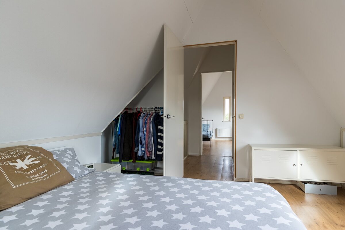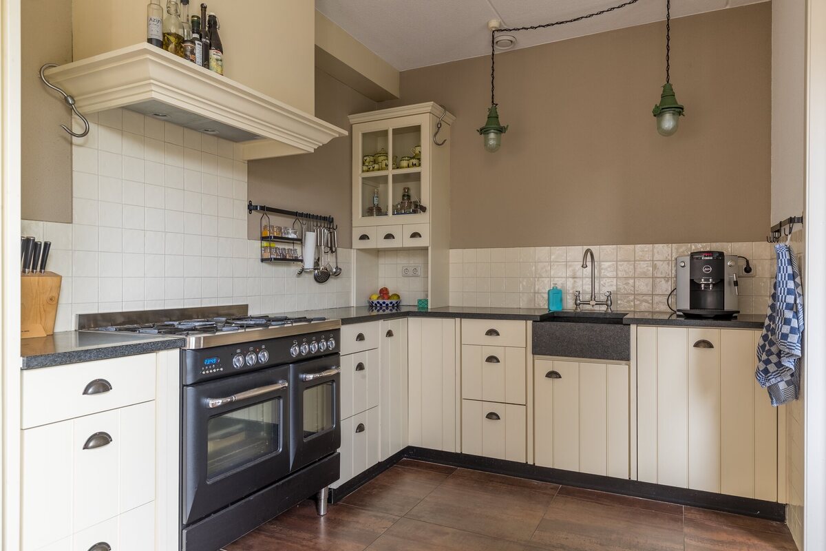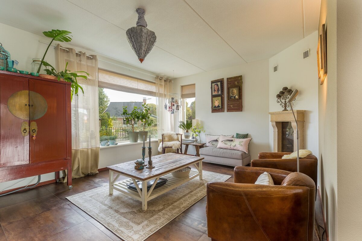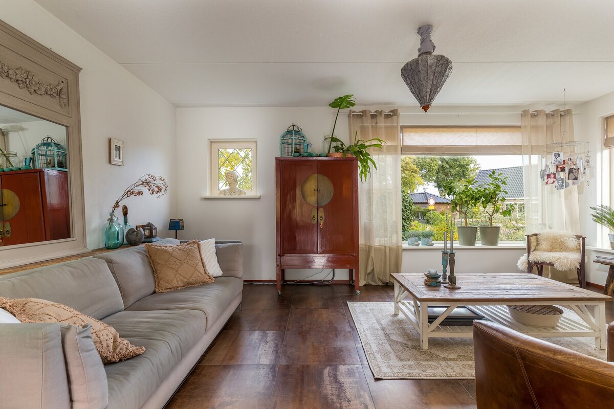 Begane grond: entree/ha, trapopgang met grote trapkast (garderobe) en een modern toilet. Ruime lichte U- vormige living (ca. 50 m2) met aan de voorzijde een sfeervol zitgedeelte (v.v. gashaard) en een luxe half open keuken voorzien van inbouwapparatuur. Aangebouwde verlengde bijkeuken (8 m2) en een ruime garage (24 m2). De gehele begane grond vloer is belegd met warme plavuizen en heeft vloerverwarming.Eerste verdieping: ruime overloop, 3 slaapkamers (19, 8 en 8 m2) en een moderne verzorgde badkamer voorzien van ligbad, douche, wastafel en een tweede toilet.Tweede verdieping: overloop met compacte badkamer en 2 ruime slaapkamers (beide ca. 12 m2).