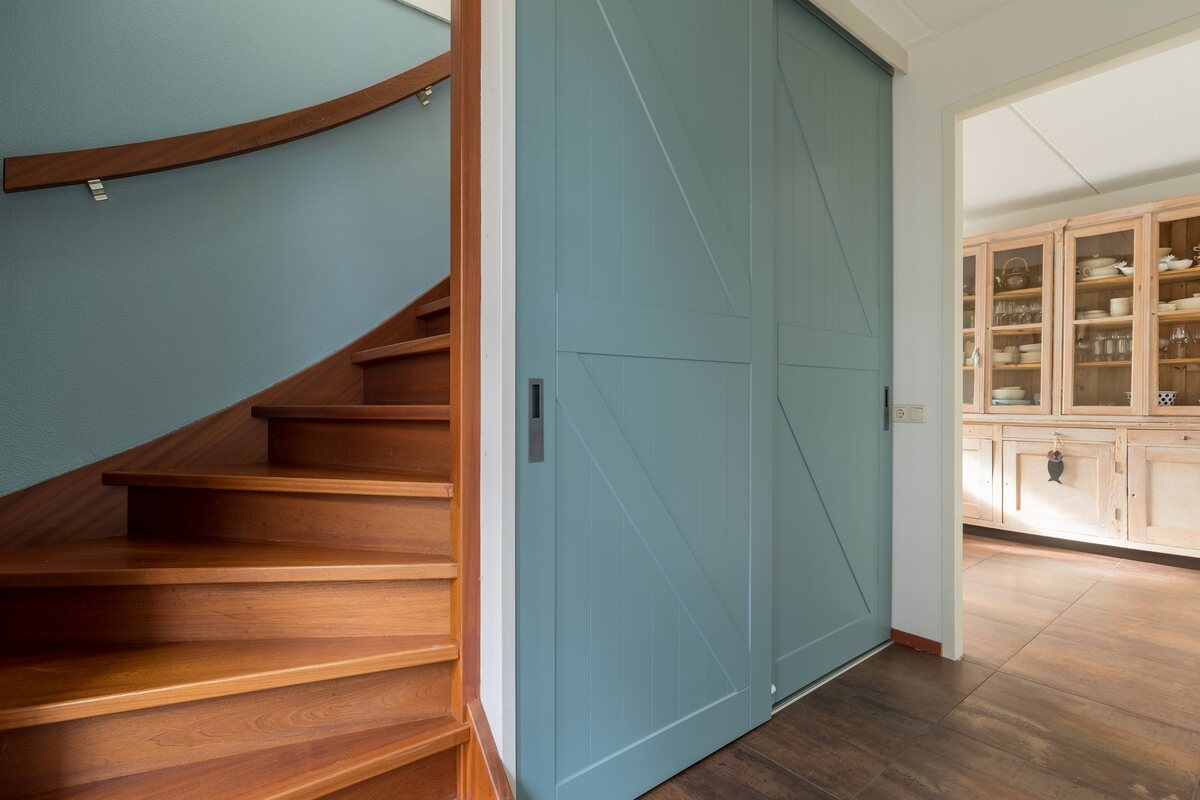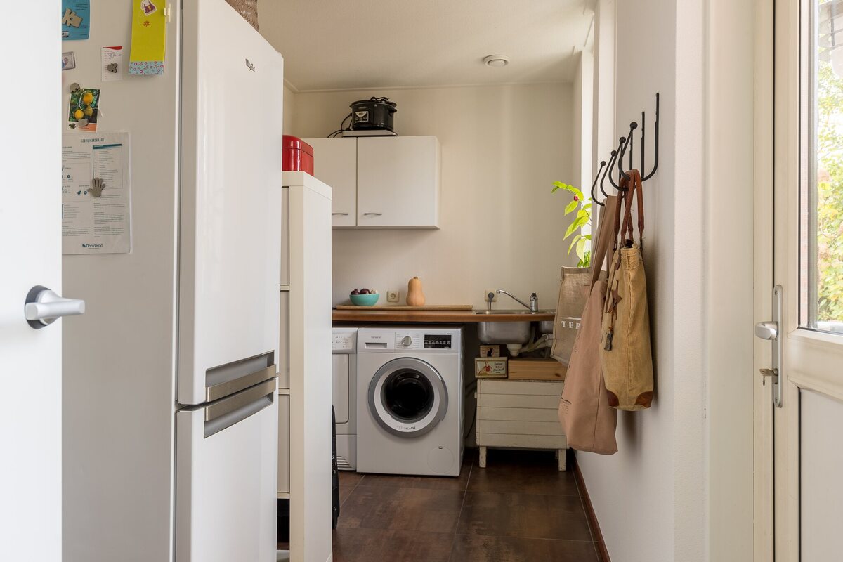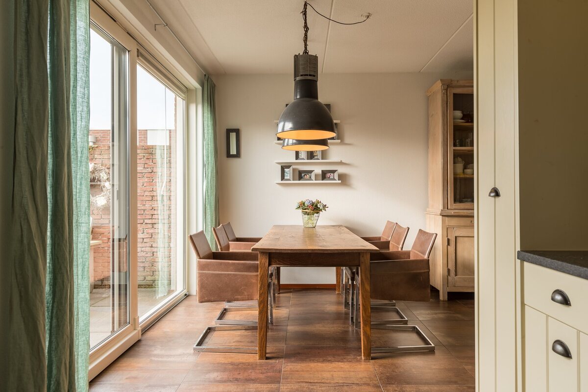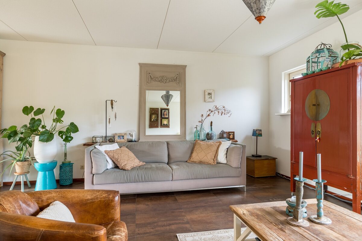 Begane grond: entree/ha, trapopgang met grote trapkast (garderobe) en een modern toilet. Ruime lichte U- vormige living (ca. 50 m2) met aan de voorzijde een sfeervol zitgedeelte (v.v. gashaard) en een luxe half open keuken voorzien van inbouwapparatuur. Aangebouwde verlengde bijkeuken (8 m2) en een ruime garage (24 m2). De gehele begane grond vloer is belegd met warme plavuizen en heeft vloerverwarming.Eerste verdieping: ruime overloop, 3 slaapkamers (19, 8 en 8 m2) en een moderne verzorgde badkamer voorzien van ligbad, douche, wastafel en een tweede toilet.Tweede verdieping: overloop met compacte badkamer en 2 ruime slaapkamers (beide ca. 12 m2).