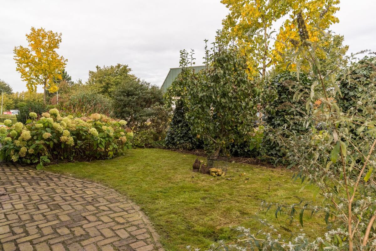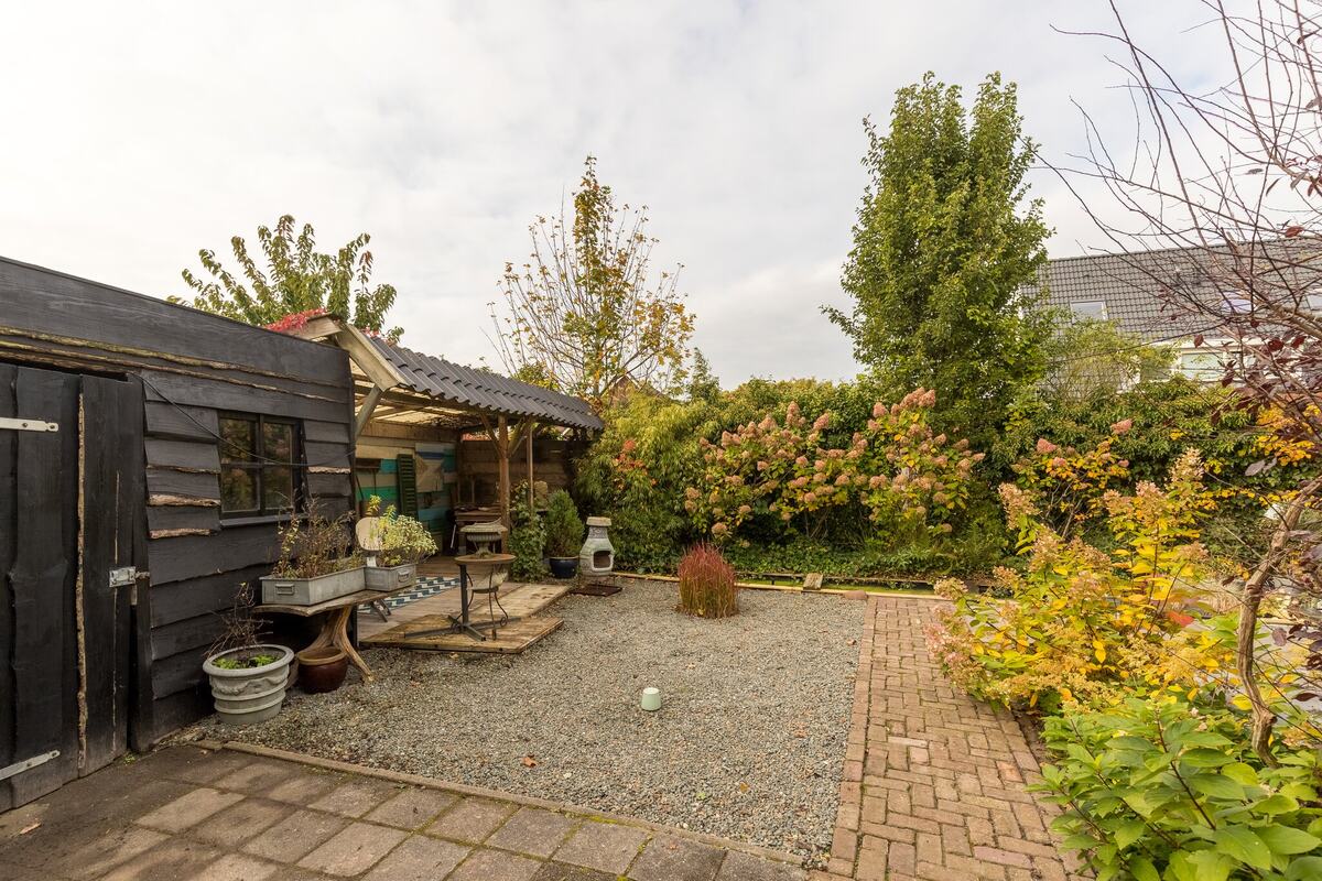 Grote oprit en voortuin en een besloten achtertuin (pal op het zonnige zuiden) met schuurtje en een leuke overkapping. De totale perceelsgrootte bedraagt 350 m2.