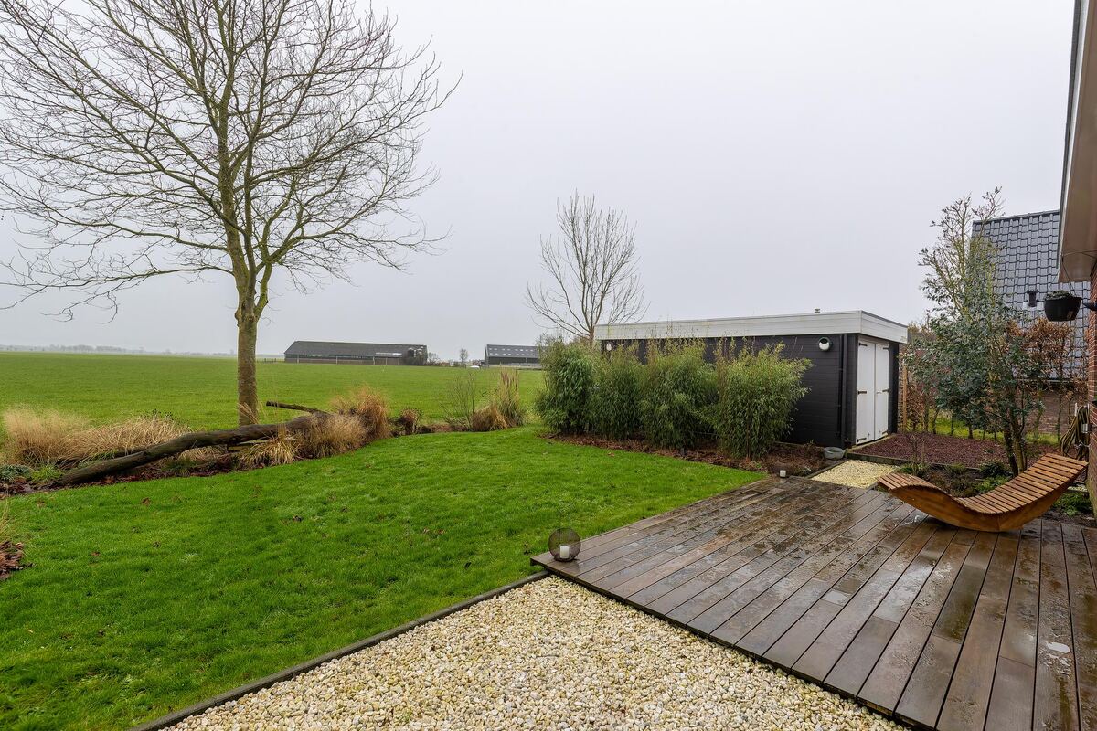 Tuin: De woning beschikt over een brede oprit met een ruime houten garage van ca. 21 m² groot. De tuin is fraai aangelegd met het voornamelijk doel om optimaal te kunnen genieten van het uitzicht. Door de grote van de tuin is er gelukkig ook een mogelijkheid om uit de zon en de wind te zitten.