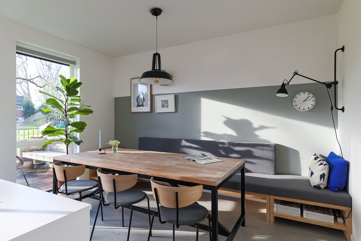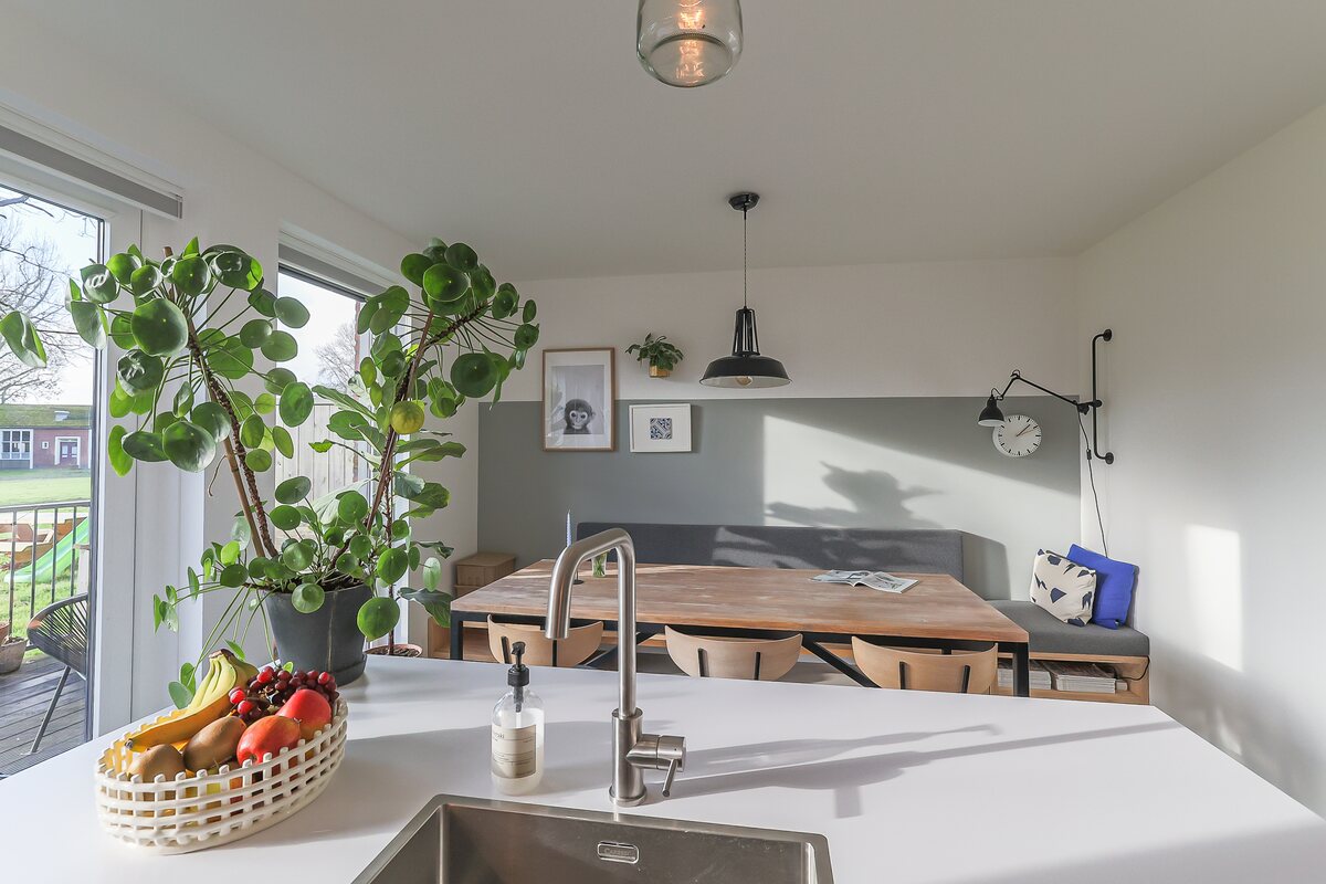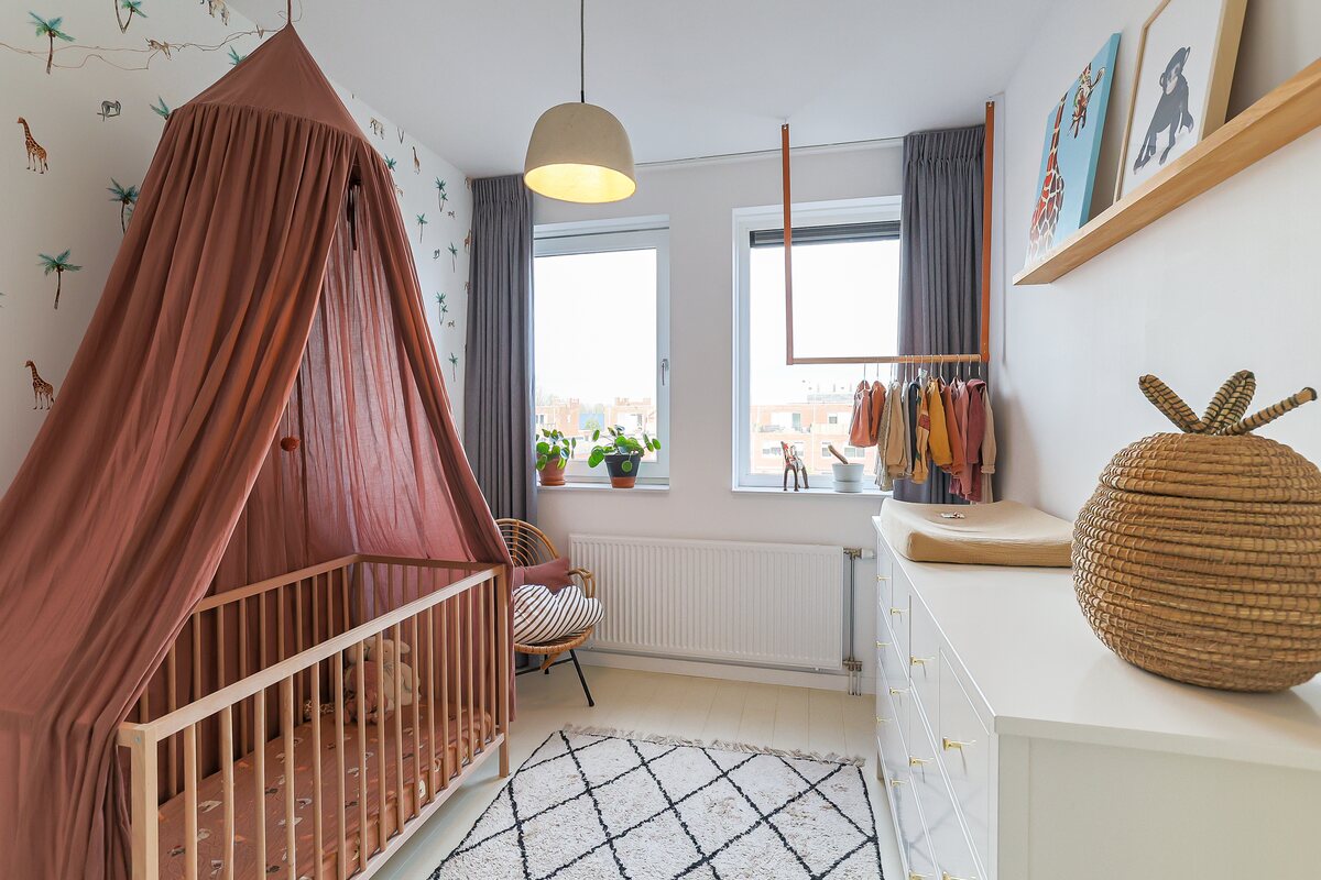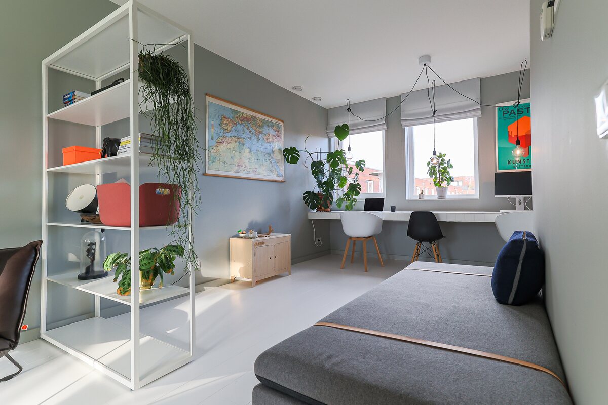 Begane grond: entree/hal, toilet, inpandige berging (8 m2), trapkast, flinke woonkeuken met 2 luxe keukenblokken v.v. inbouwapparatuur (22 m2). Vanuit de keuken toegang tot zonnig terras van 13 m2 met vrij uitzicht. Een heerlijke plek om te zitten en te genieten van het groen.Eerste verdieping: overloop, lekker lichte en ruime woonkamer (40 m2) en een compacte speel-/werkkamer (3 m2). De woonkamer is strak gestuukt met gave houten vloer. Daarnaast is op subtiele wijze een mooi (en praktisch) bureaublad aangebracht.Tweede verdieping: overloop, 3 nette slaapkamers van circa 13, 9 en 8 m2, strakke badkamer (6 m2) met douche, ligbad, fraaie wastafel en 2e toilet, bergruimte met cv-opstelling en wasmachine-opstelling.