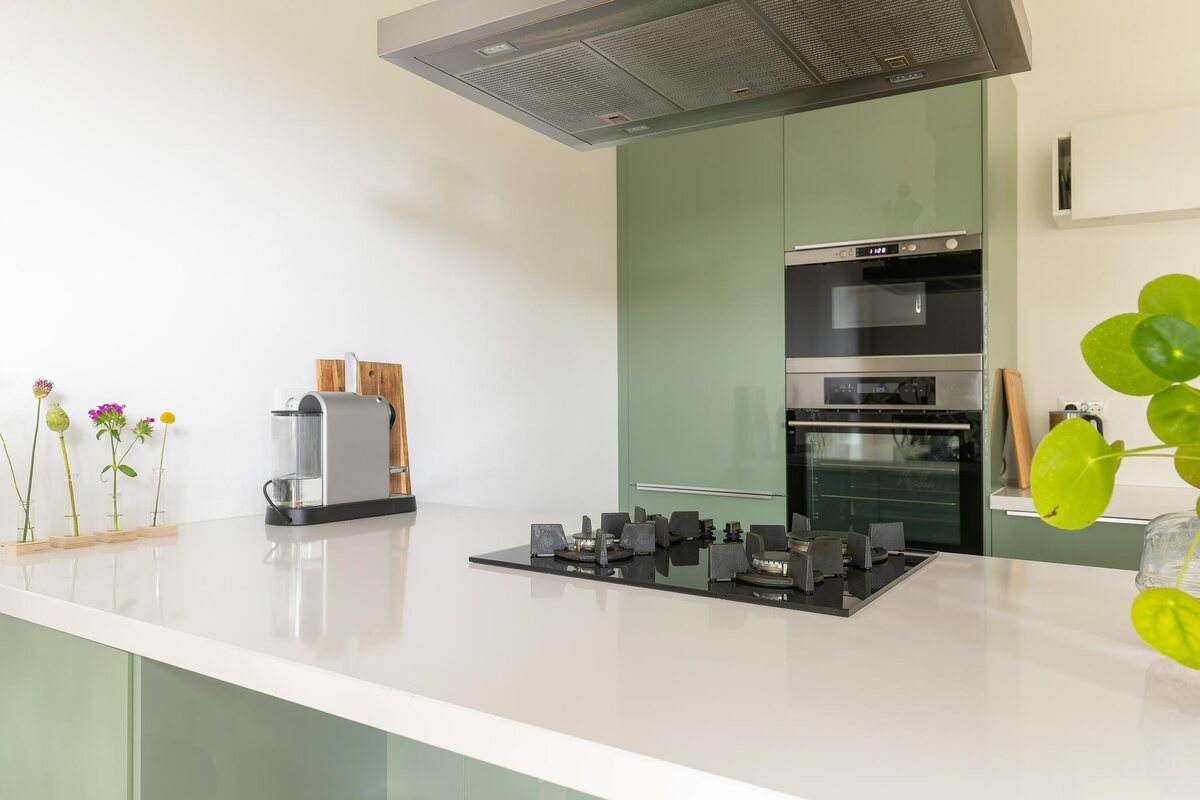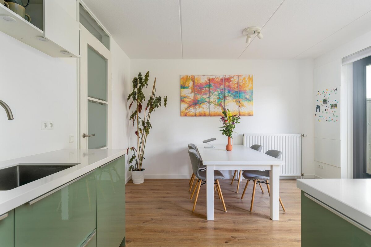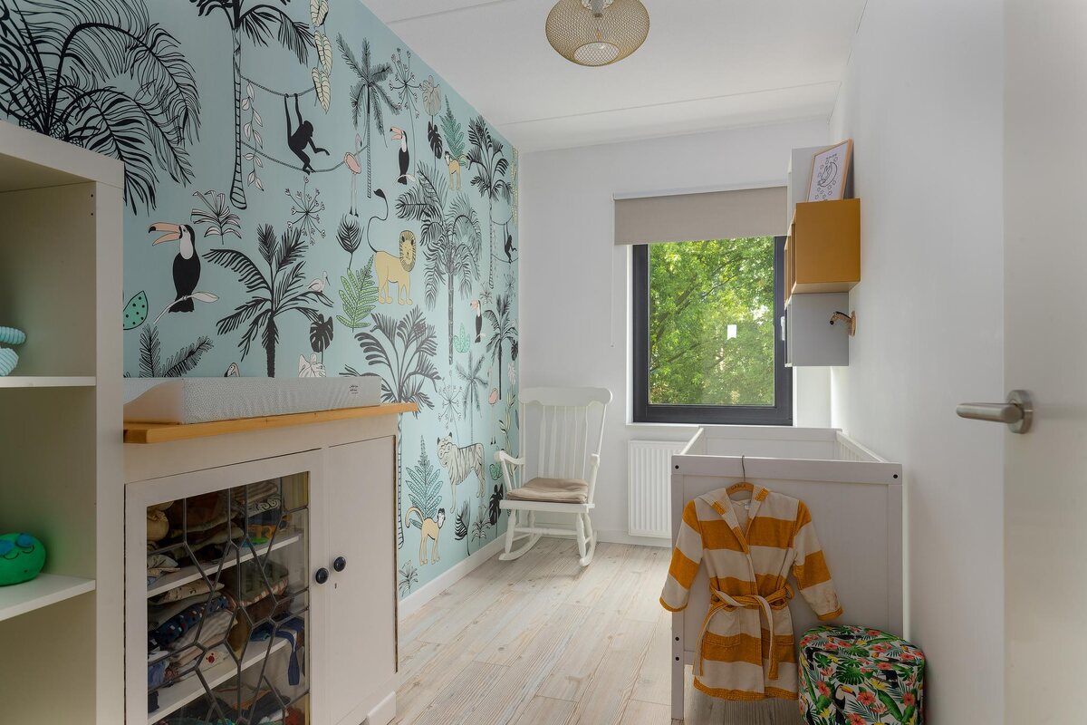 Begane grond: entree/hal, toilet, inpandige berging (ca. 8 m2 met laminaatvloer en loopdeur naar de parkeerplaats), trapkast en meterkast. Grote (ca. 22 m2) tuingerichte woonkeuken met kookeiland, voorzien van gaskookplaat en rvs afzuigkap en een wandmeubel met vaatwasser, koel-vriescombi en een oven (pyrolytisch: schoonmaakfunctie). Vanuit de keuken toegang tot zonnig terras (ca. 14 m2) met vrij uitzicht. Een heerlijke plek om te zitten en te genieten van het groen.Eerste verdieping: overloop, lekker lichte en ruime woonkamer (ca. 32 m2) met keurige laminaatvloer en fraai zicht op het achtergelegen groen. Compacte baby-/werkkamer (ca. 4 m2).Tweede verdieping: ruime overloop.Drie nette slaapkamers van circa 14, 10 en 8 m2. Keurige badkamer (6,5 m2) met grote inloopdouche, prachtig wastafelmeubel met kommen en een 2e toilet. Stookruimte/waskamer (ca. 4 m2) met cv-opstelling en wasmachine-aansluiting.