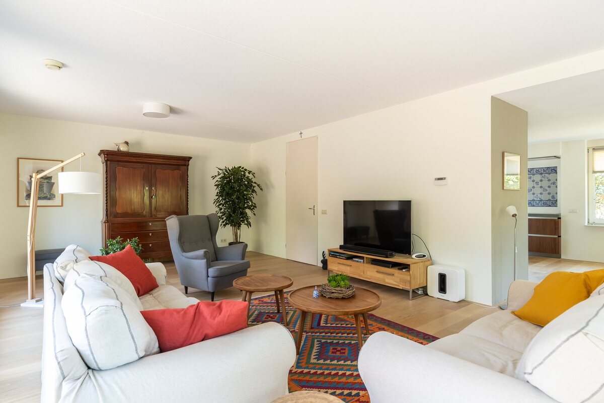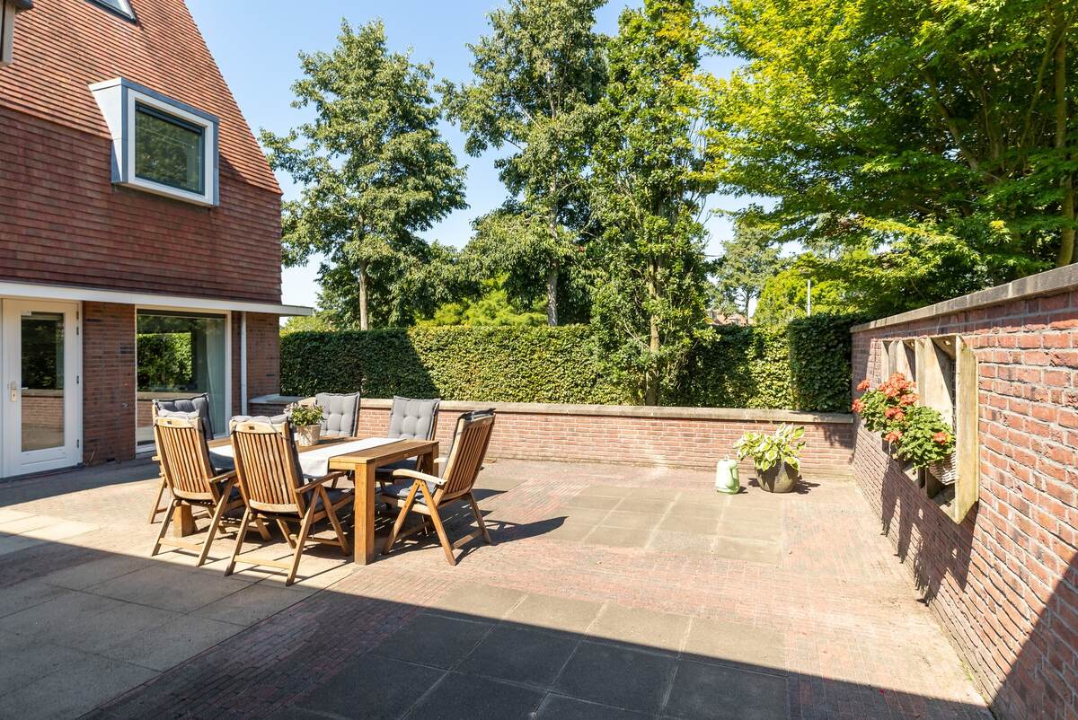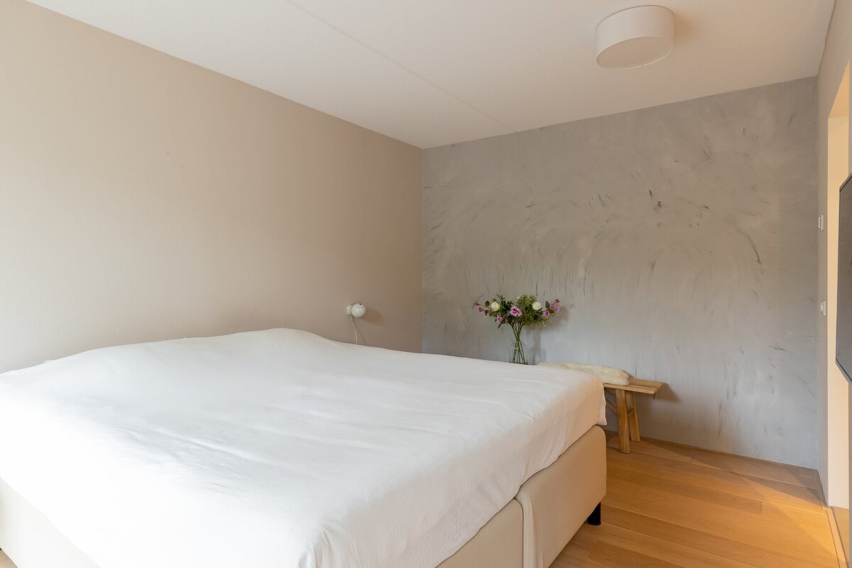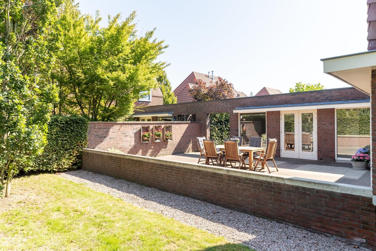 Begane grond: ruime hal met deur naar de aangebouwde garage (21 m2), wc met hangend toilet, royale U-vormige living (ca. 67 m2) met houten parketvloer en openslaande deuren naar het riante en zonnige terras in de tuin. Luxe open maatkeuken (2017, door Hendriks & De Jonge Interieurbouw) voorzien van alle gemakken en vervaardigd van hoogwaardige materialen. Verder op de begane grond een grote slaapkamer (17 m2) met een unieke zeer fraaie luxe badkamer en suite met o.a. vloerverwarming, ligbad, douche, wastafelmeubel en separaat 2e toilet. Deze slaapkamer heeft eveneens openslaande deuren naar het terras.