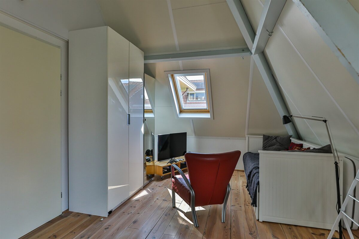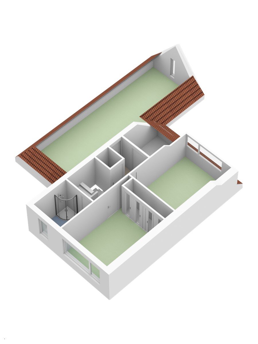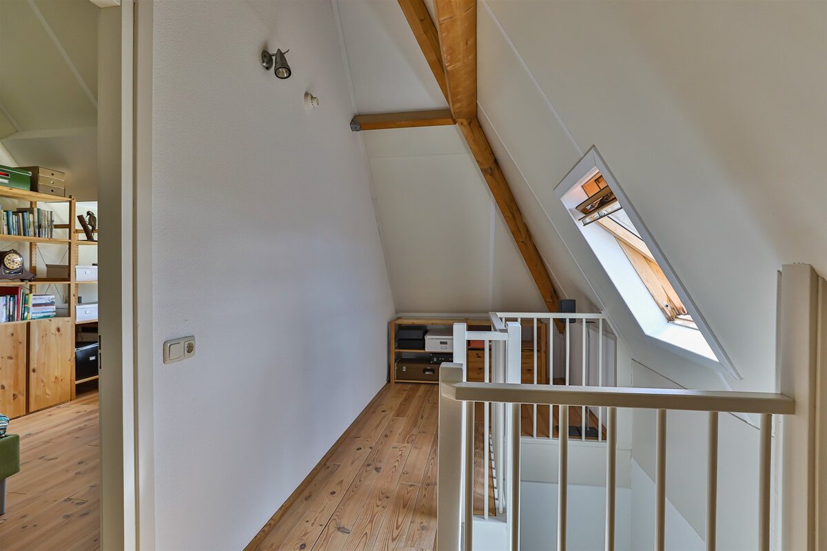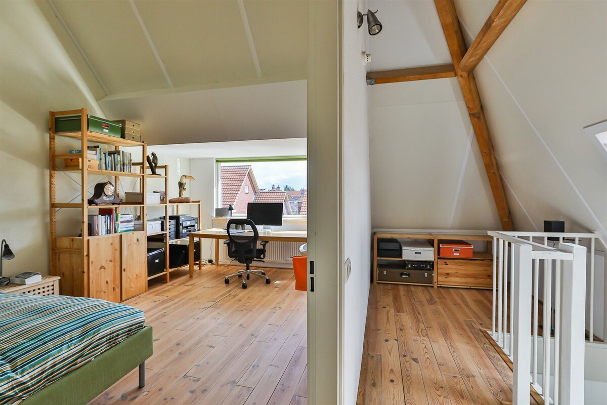 2e verd.: ruime overloop met bergruimte, royale slaapkamer van circa 22m² (ook te splitsen in twee mooie slaapkamers). De hoogte van de nok maakt het mogelijk om nog een derde verdieping met zolderberging te maken.