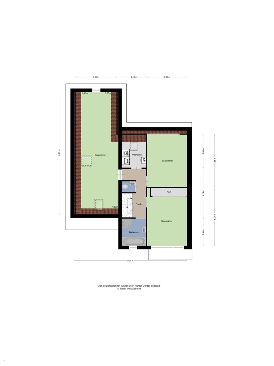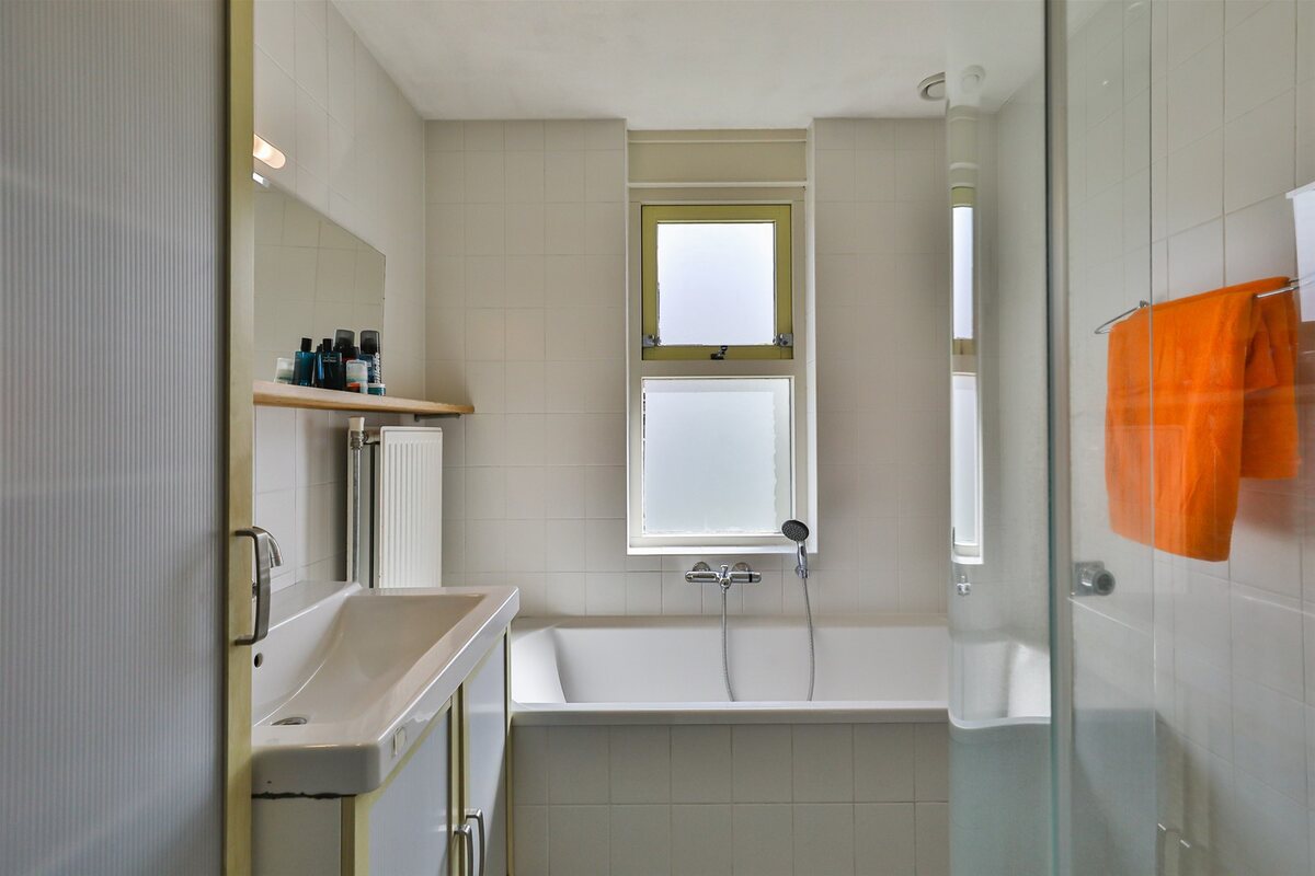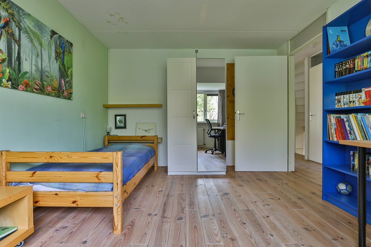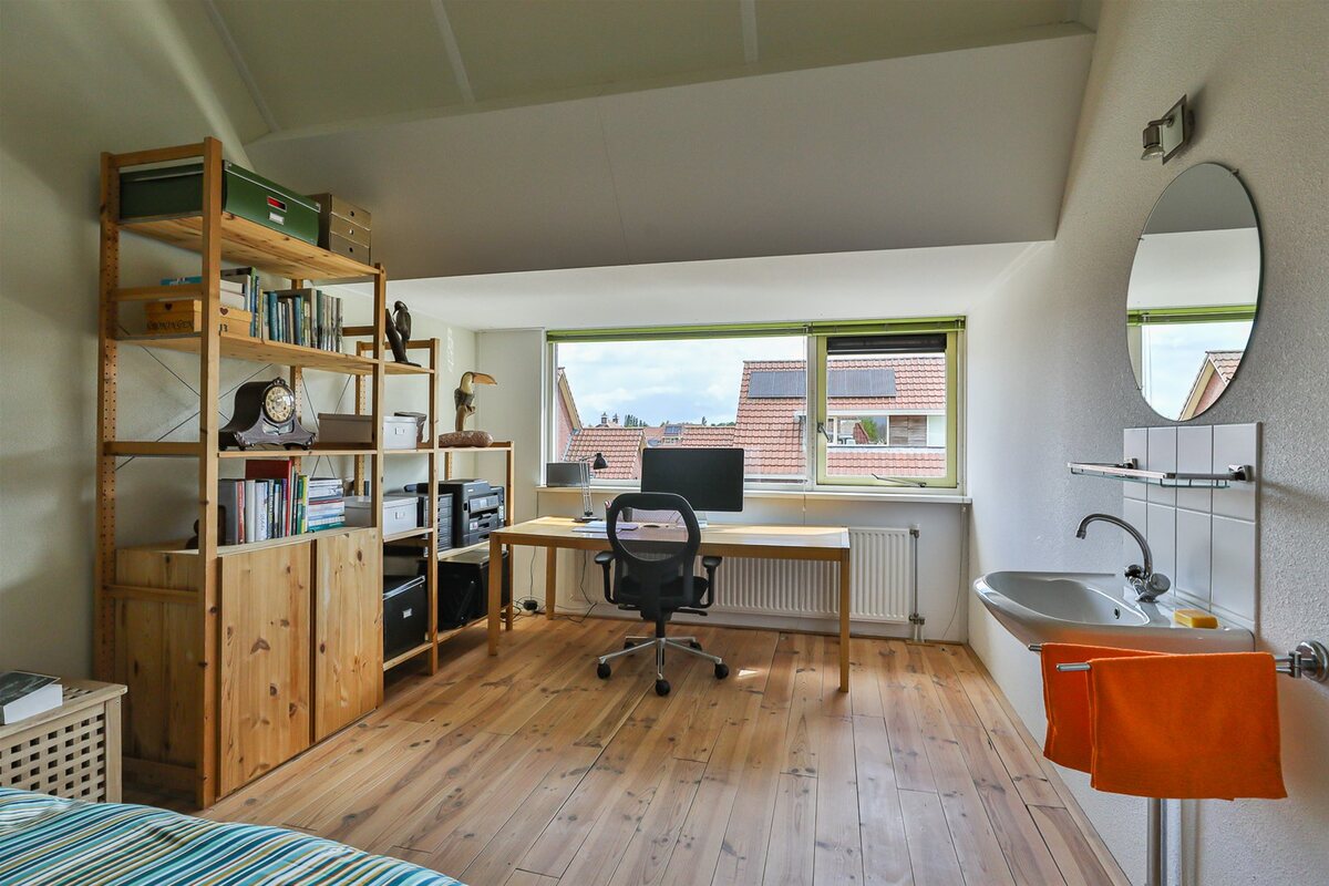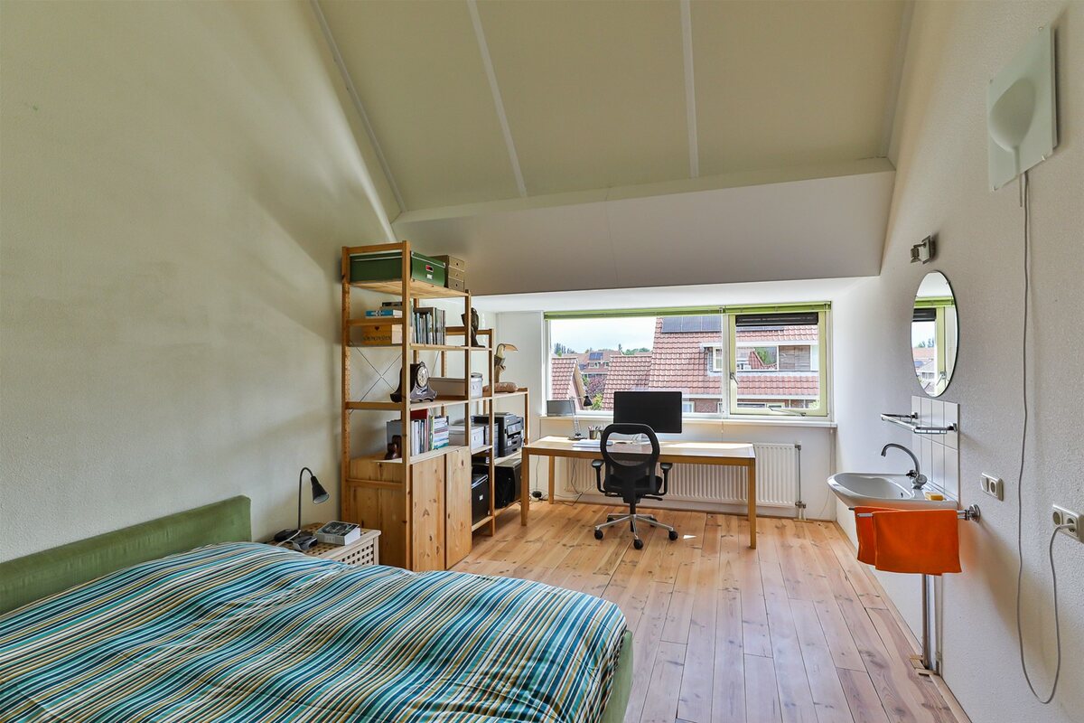 2e verd.: ruime overloop met bergruimte, royale slaapkamer van circa 22m² (ook te splitsen in twee mooie slaapkamers). De hoogte van de nok maakt het mogelijk om nog een derde verdieping met zolderberging te maken.