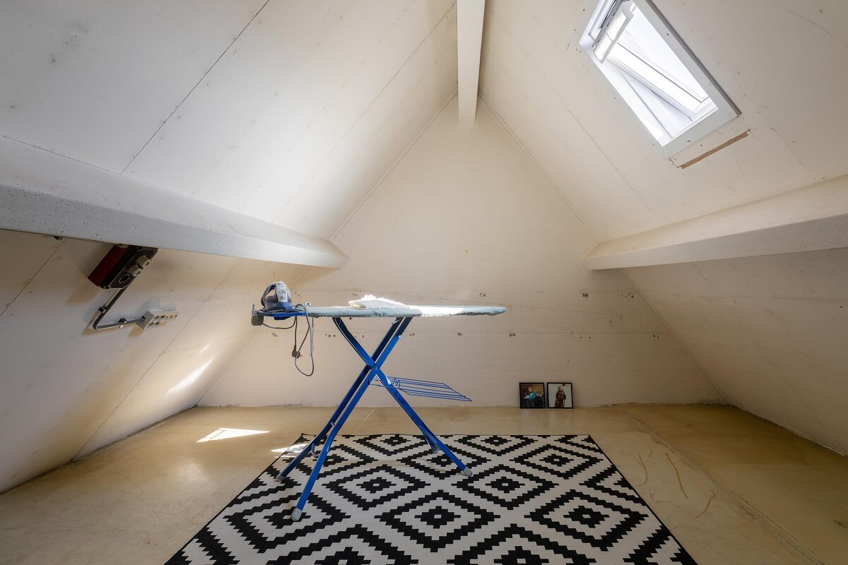 Begane grond: entree/hal (8 m2) met toilet en toegang tot de garage en een lichte en L-vormige woonkamer (houten vloer) met schuifpui naar de tuin en een open keuken (samen circa 36 m2).Eerste verdieping: overloop, drie slaapkamers (circa 9, 12 en 10m²), badkamer met tweede toilet, douche en wastafel.Tweede verdieping: zolderkamer waar eenvoudig nog een vierde slaapkamer (van ongeveer 13 m2) is te realiseren. Verder is er hier de cv-opstelling.