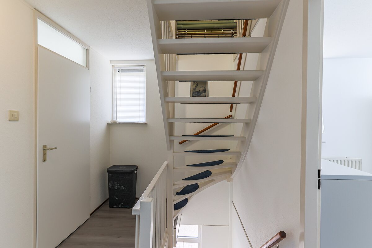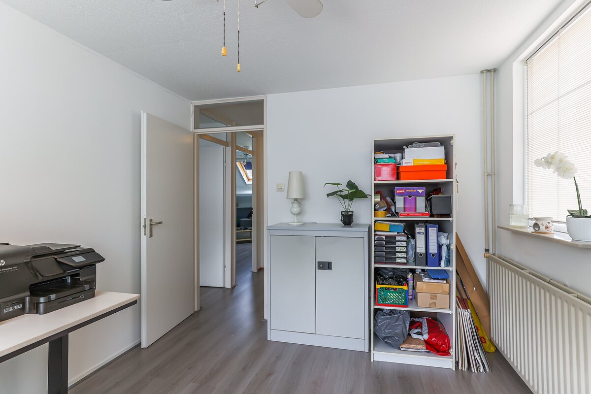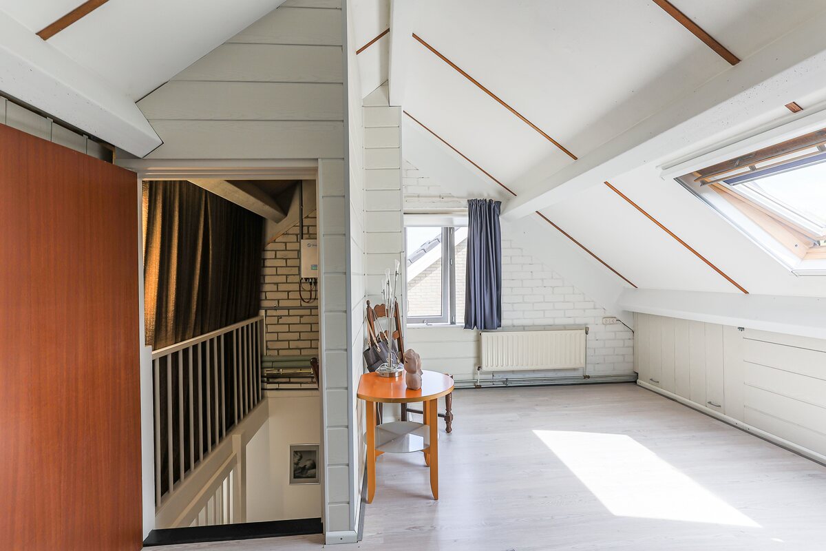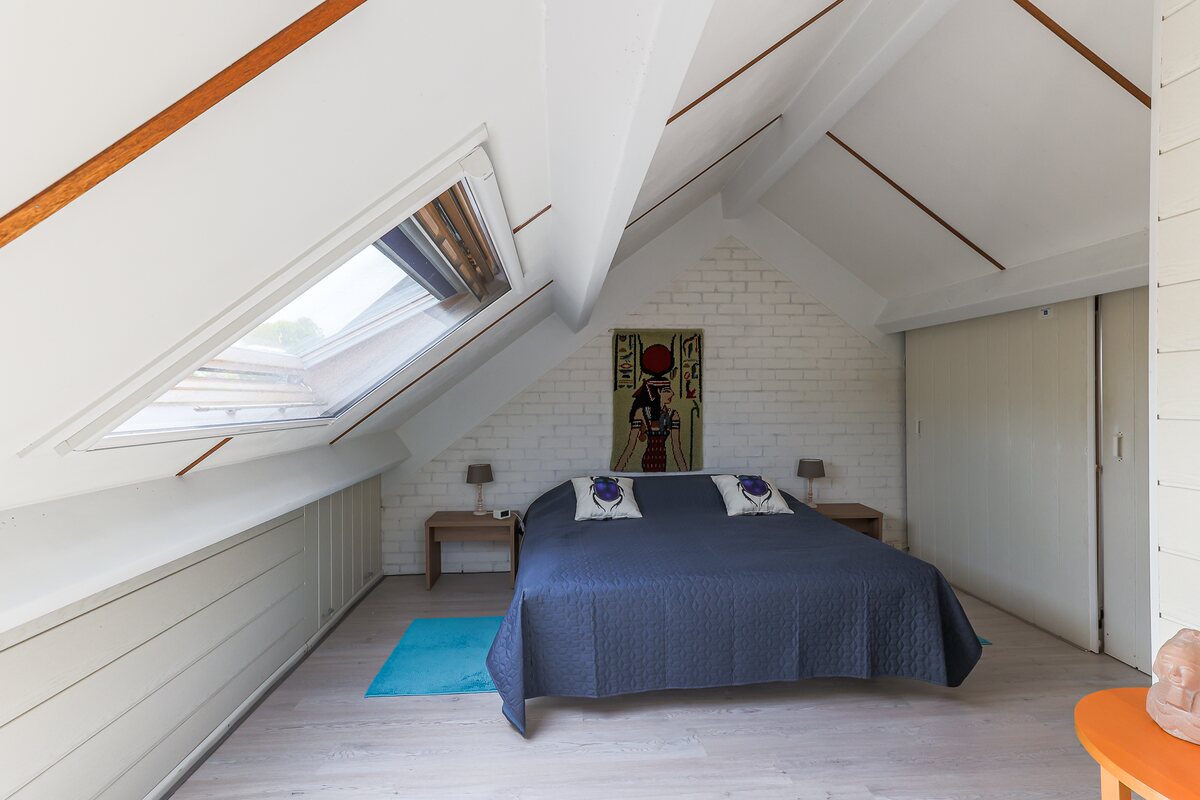 2e Verdieping: overloopje met CV ketel (2021, eigendom).Royale zolderkamer (ca. 19 m²) met dakraam en zijgevelraam.Veel bergruimte achter schuifwand.