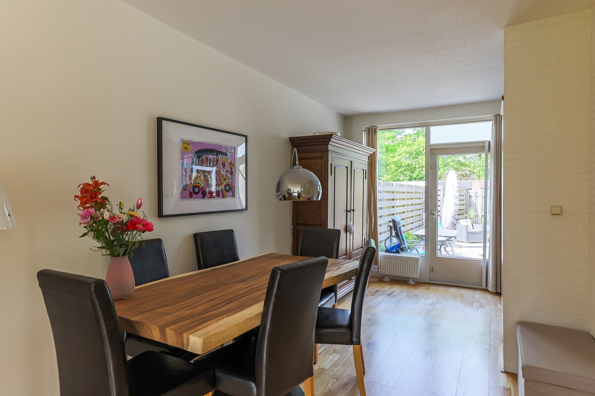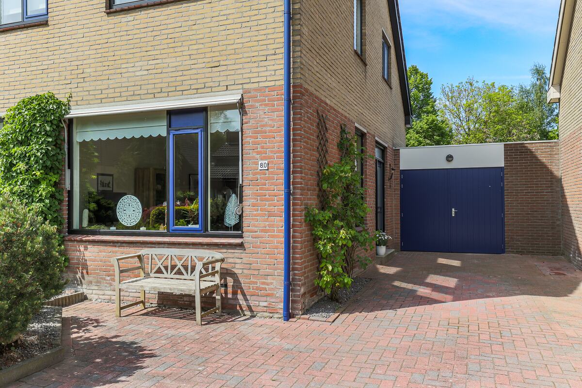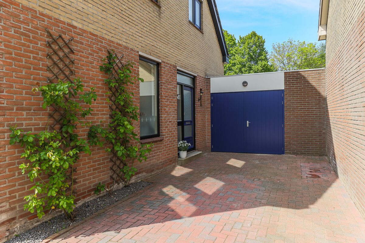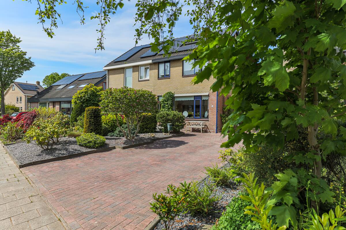 Voortuin: verzorgd en diep, daardoor veel gevoel van privacy. Lange eigen oprit (3 of 4 auto's).Achtertuin: L-vormig en ca. 10 meter diep (vanaf achtergevel woning) en aan de achterzijde ca. 8,5 meter breed. De tuin ligt 's zomers de gehele dag in de zon, inclusief de avond. Achterom is er nu niet, maar eventueel wel mogelijk.