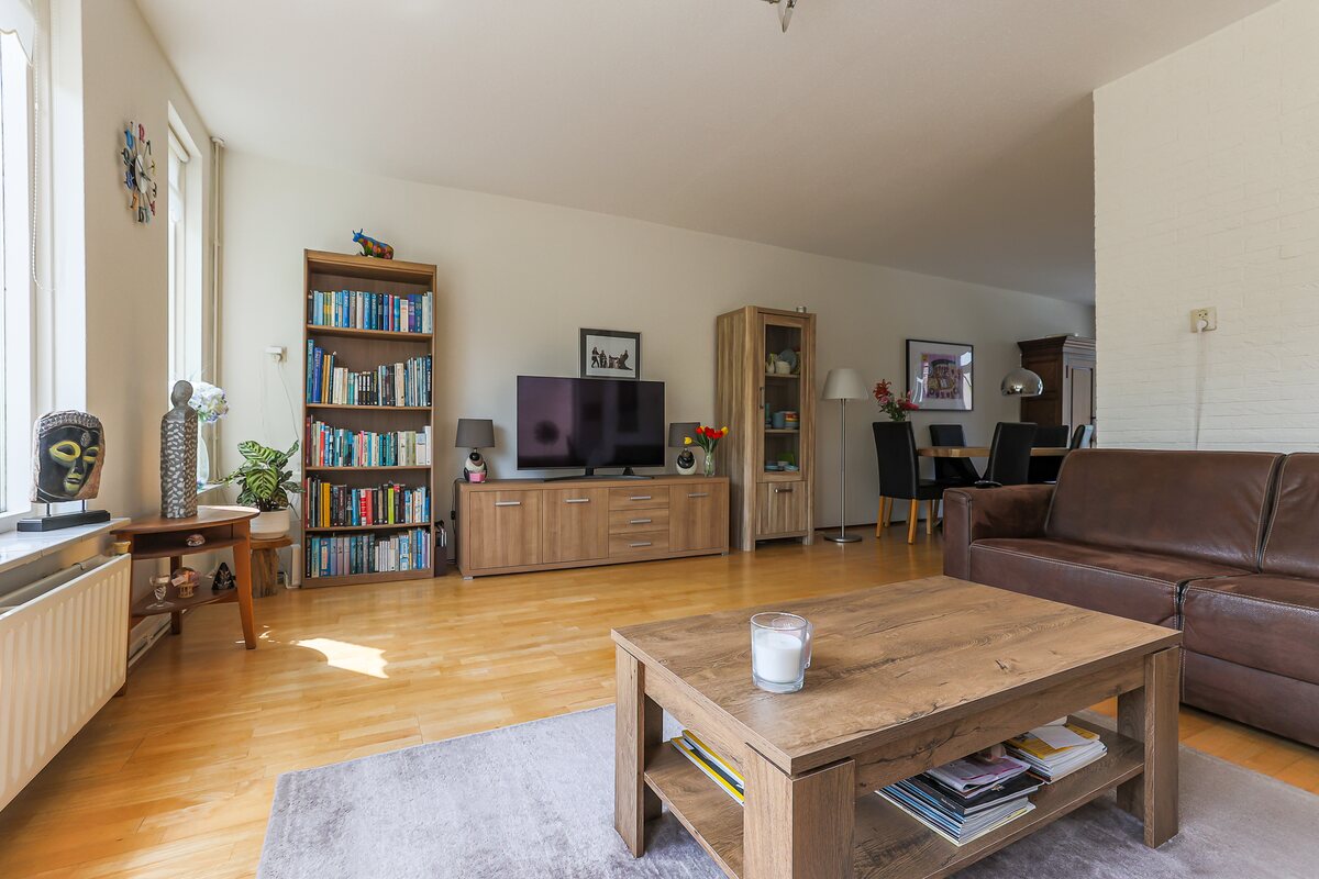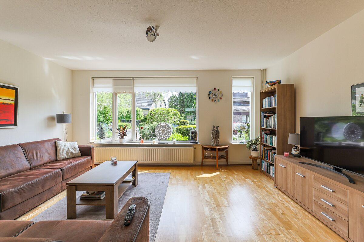 Begane grond: Hal met toilet, trapopgang en meterkast.Ruime en lichte L-vormige woonkamer (ca. 29 m2) met parketvloer en zijgevelraam.Half open - en tuingerichte woonkeuken (ca. 12 m²) in hoekopstelling en met enige inbouwapparatuur, loopdeur naar de tuin en doorloop naar de garage.De L-vormige en riante garage (ca. 20 m2) beschikt over een gootsteen en wasmachine aansluiting, openslaande deuren naar de oprit, deur keuken en loopdeur naar de tuin.