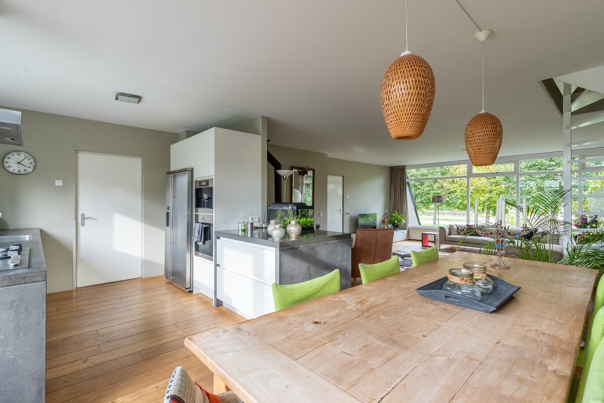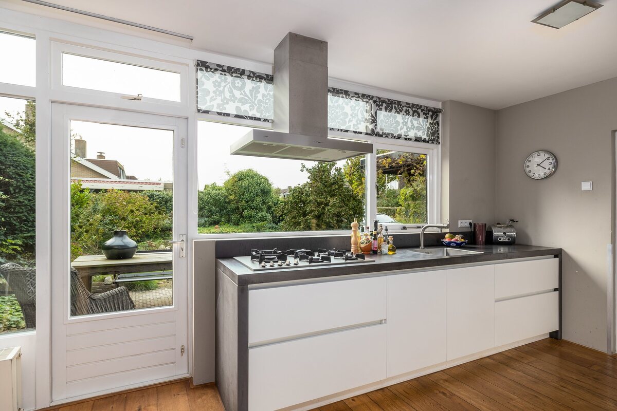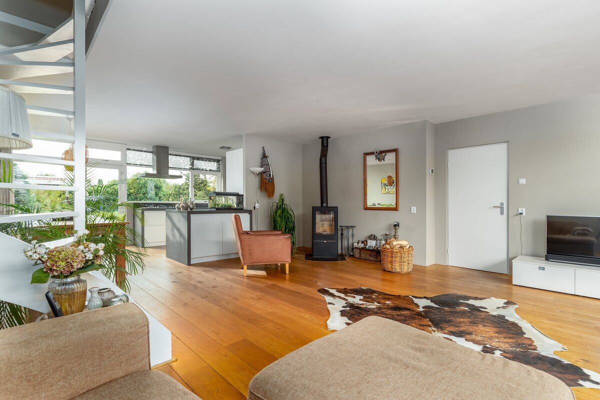 Hal/entree met modern toilet, meterkast en toegang tot alle vertrekken.Prachtige lichte en riante doorzonwoonkamer (6 meter breed en dik 10 meter diep, 60 m2) met prachtige eikenhouten vloer, open trap naar de verdieping, houtkachel en semi-open keuken.De keuken is modern en voorzien van alle gemakken: vaatwasser, koffieautomaat, oven, Amerikaanse koel-/vriescombi, gaskookplaat met wokbrander en afzuigkap. Doorloop naar de bijkeuken.Bijkeuken (ca. 11 m2) met pantry, opstelplaats van de wasmachine, CV HR ketel (leaseketel uit 2010, contract 12 1/2 jaar) en deur naar de tuin.Slaap-/studeerkamer (ca. 10 m2) met eikenhouten vloerdelen. Zicht op de voortuin.Verdieping: overloop met toegang tot alle vertrekken. Eveneens mooie eiken houten vloerdelen op de gehele verdieping.Royale slaapkamer voorzijde (ca. 21 m2) met zijgevel raam en dakraam. Opdelen van deze slaapkamer is eenvoudig te realiseren. Twee slaapkamers aan de achterzijde (ca. 12 en 8 m2).Eenvoudige badkamer (ca. 5 m2) met douchebad, tweede toilet en wastafelkastje met kom.Tweede verdieping met overloop en een vierde slaapkamer van ca. 10 m2.Heerlijke zonovergoten achtertuin met gezellige veranda, een terras, gazon en borders. Aan de achtertuin ligt de parkeerplaats (twee mogelijk). Ruime schuur met elektra (ca. 18 m2).
