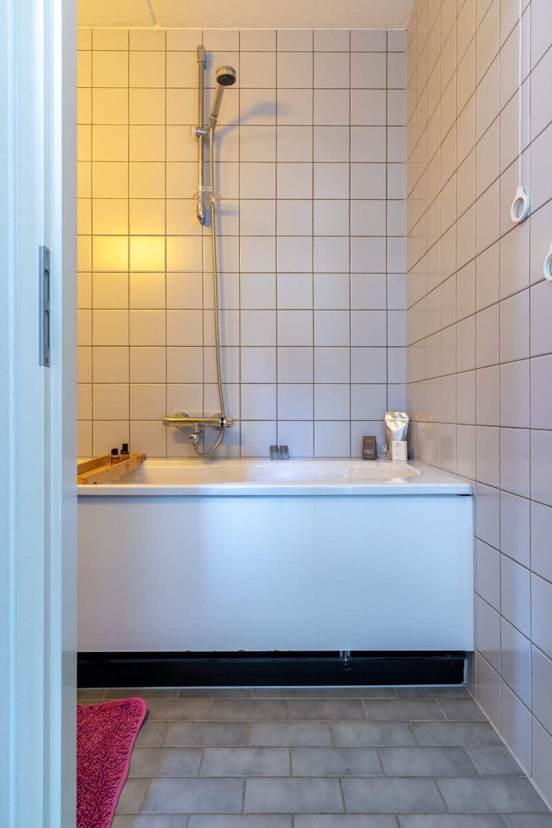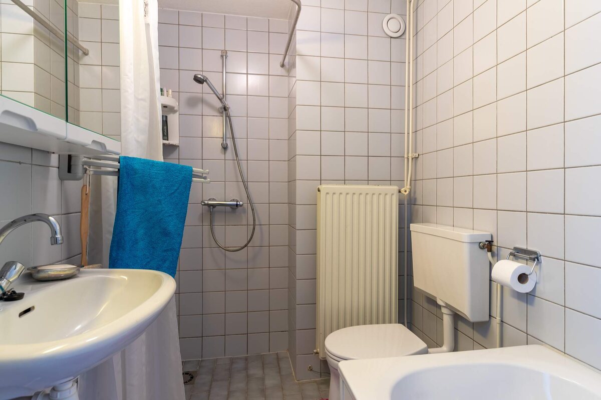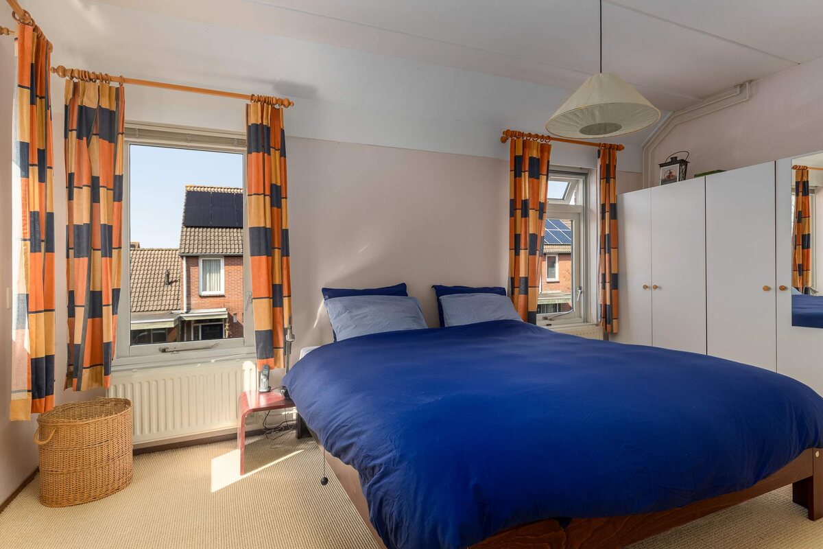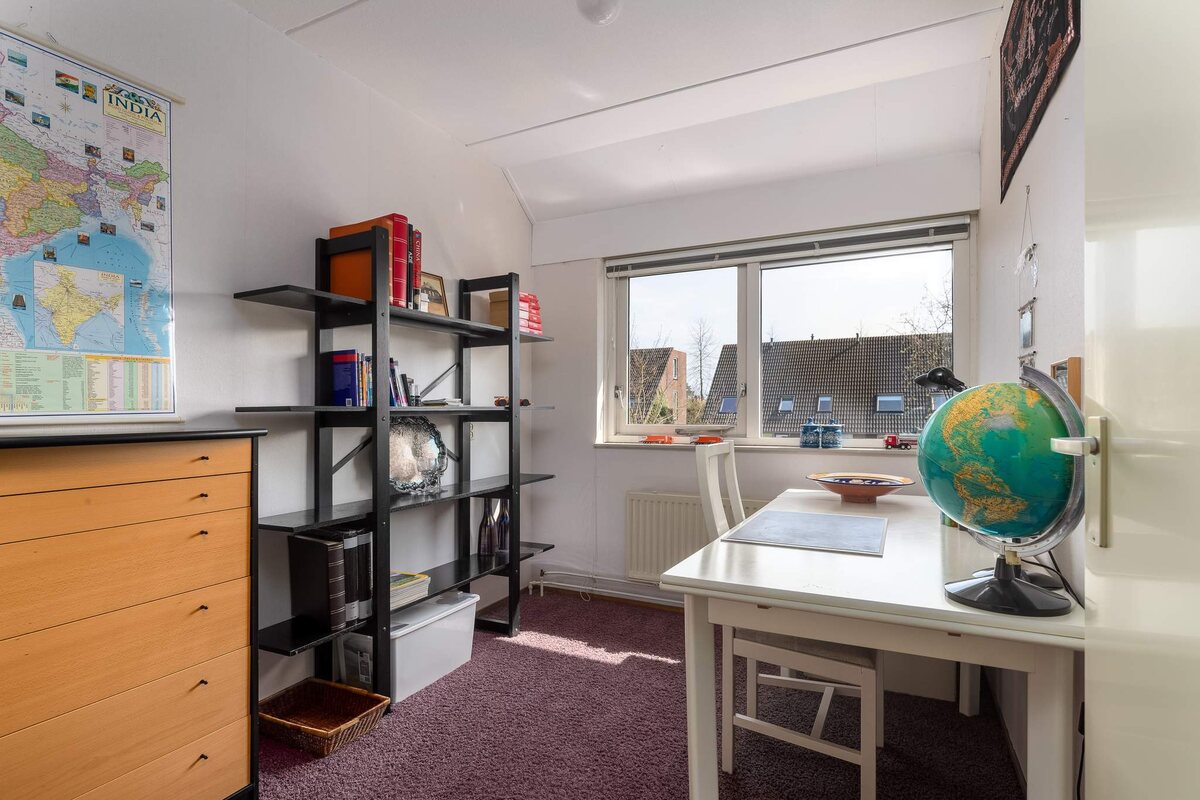 Eerste verdieping: overloop met toegang tot vier slaapkamers de badkamer. De grootste slaapkamer bevindt zich aan de voorzijde van de woning en is ca. 14 m² groot. Aan de achterzijde zijn twee slaapkamers van 7 m² aanwezig en een slaapkamer van 9 m² met knieschotten. De badkamer van ca. 4 m² groot is eenvoudig, maar beschikt wel over een ligbad, inloopdouche, toilet en een wastafel.