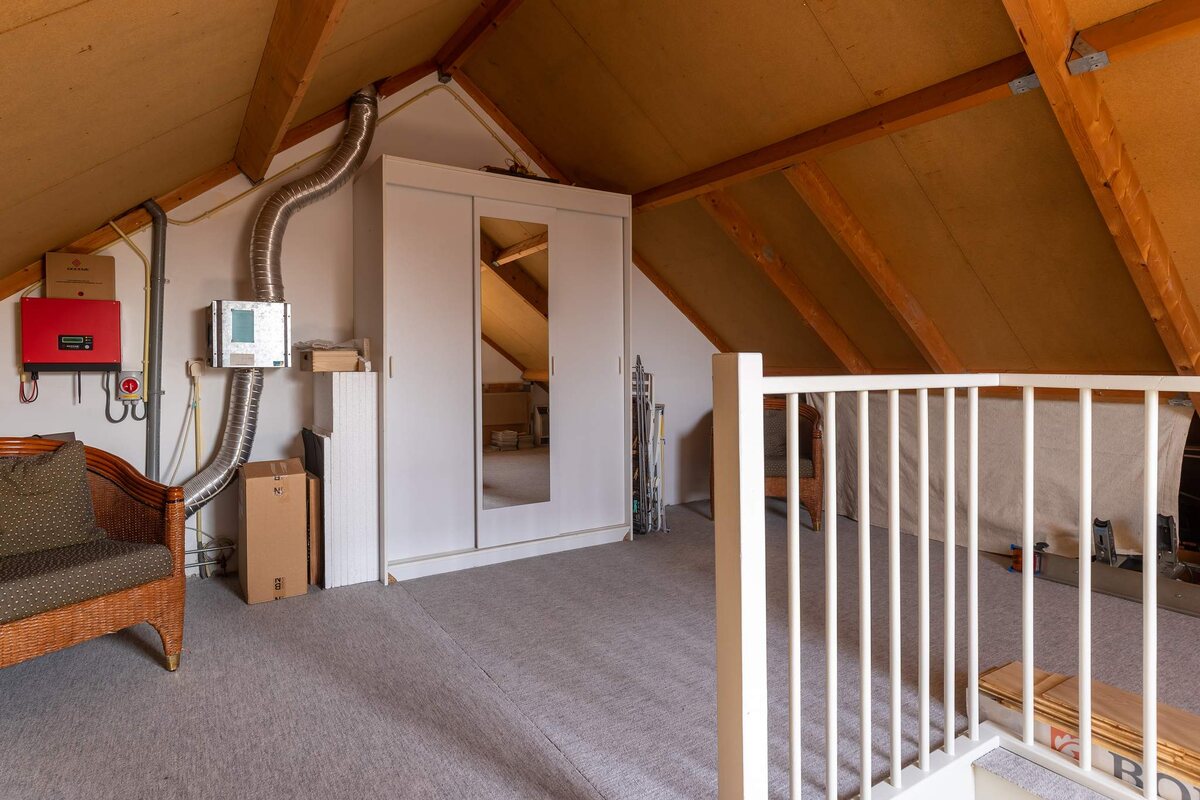 Zolderverdieping: momenteel is de zolderverdieping een vrij indeelbare ruimte van ca. 18 m². Deze ruimte kan heel goed gebruikt worden voor een vijfde slaapkamer, hobbykamer of wat men eventueel maar wil.
