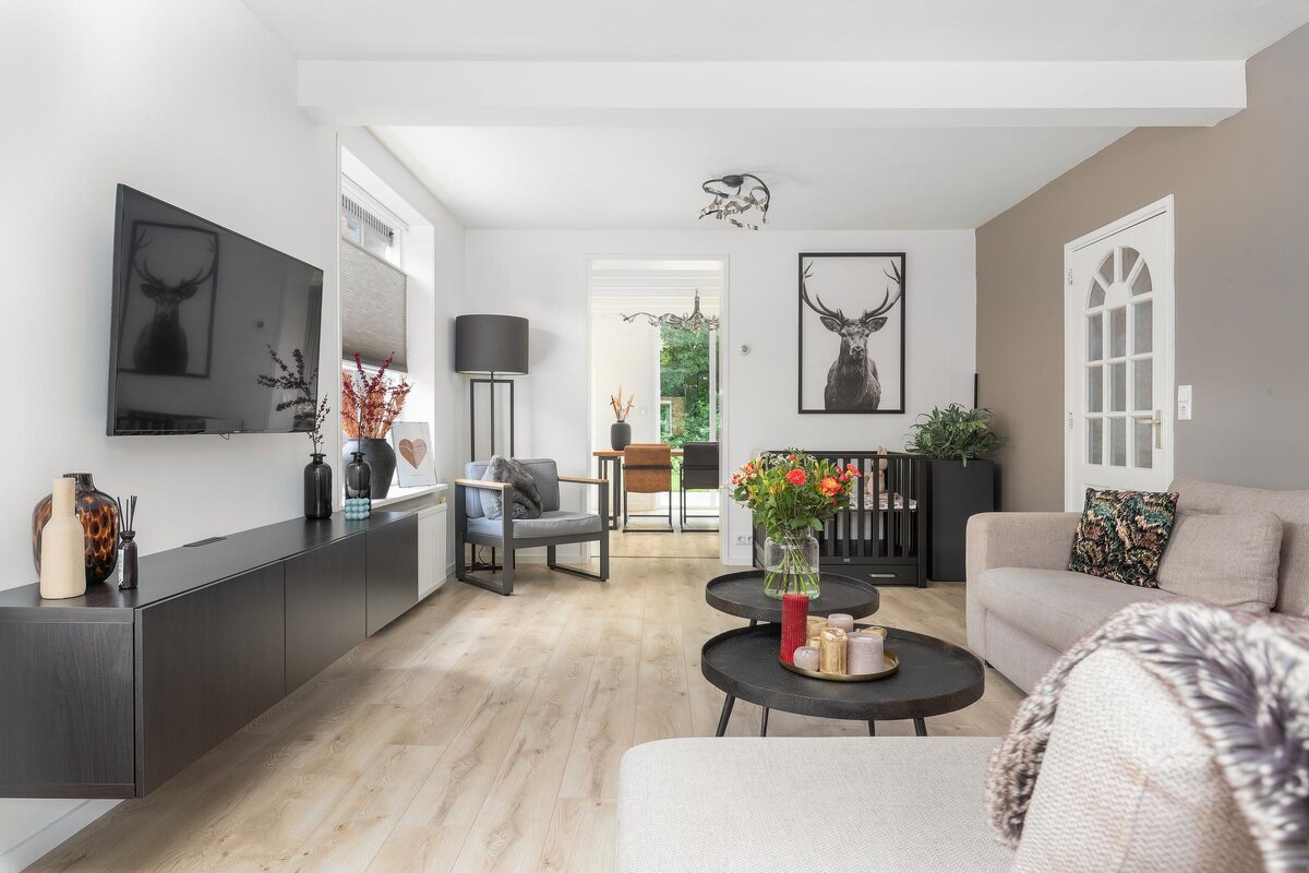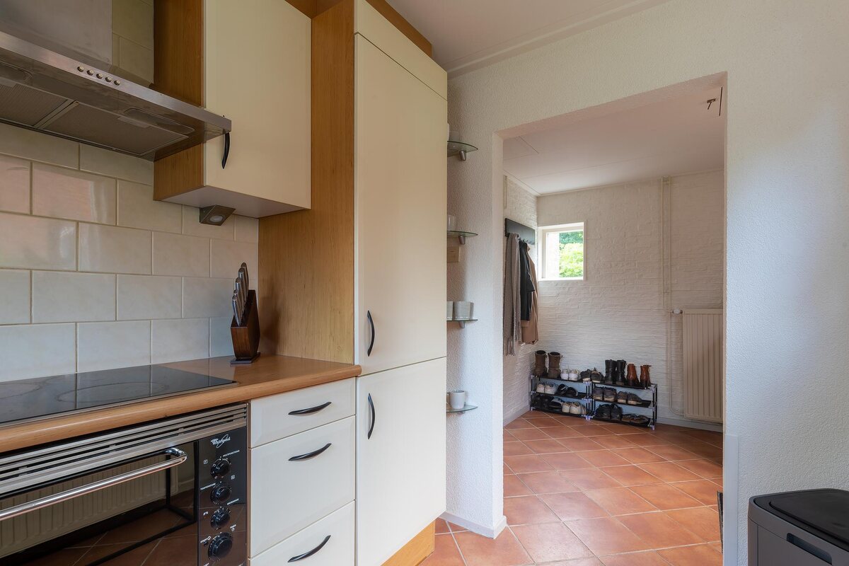 Begane grond: entree met trapopgang naar de eerste verdieping en toegang tot de woonkamer. De woonkamer is ca. 26 m² groot. Aangrenzend bevindt zich een tuikamer van ca. 16 m² met een bijkeuken van ca. 7 m² groot. De tuinkamer kan eventueel dienst doen als slaapkamer en de bijkeuken als badkamer. Vanuit de woonkamer is er toegang tot een hal met toilet en een kelderkast. De dichte keuken van ca. 7 m² is voorzien van een keramische kookplaat, een afzuigkap, een vaatwasser, een koelkast, een vrieskast en een combimagnetron. Via een vlizotrap in de hal is de bergzolder met cv opstelling te bereiken.