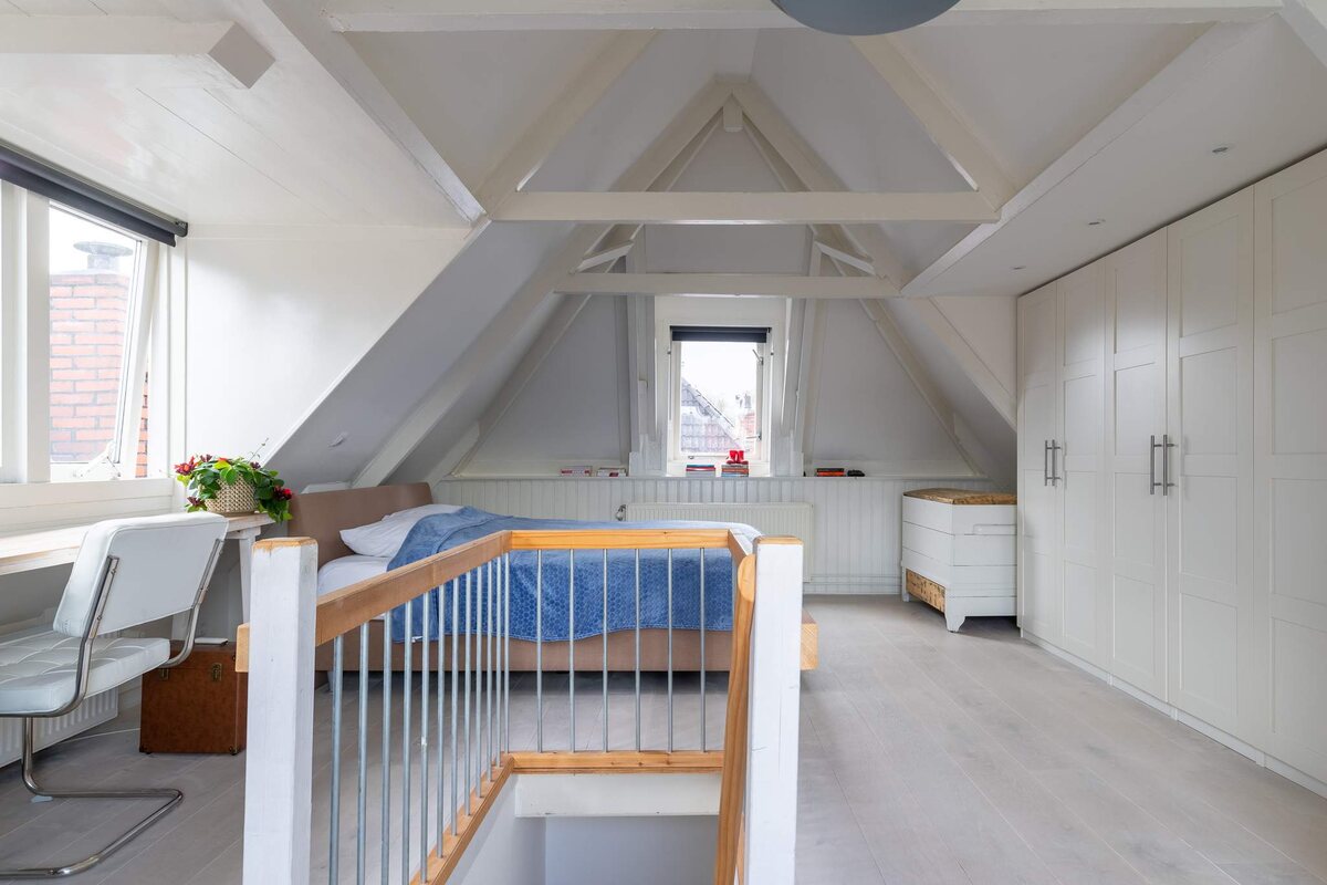 Prachtige lichte en open ruimte (ca. 28 m2, twee slaapkamers mogelijk) met karakter (houten balken) veel licht en twee dakkapellen.