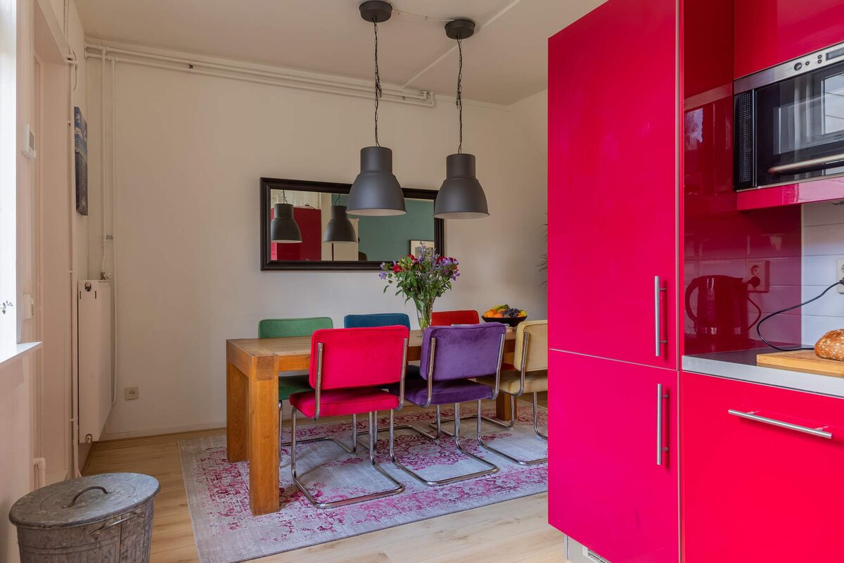 Entree in kleine hal met trapopgang.Ruime woonkamer met semi-open keuken (totaal ca 35 m2). Laminaatvloer, hoog plafond, doorloop bijkeuken en toilet.De keuken (hoekopstelling) is voorzien van alle gemakken: koelvriescombi, vaatwasser, oven, gaskookplaat en afzuigkap. Zicht op de tuin.Bijkeuken (ca. 6 m2) met modern toilet, CV ketel (2013, eigendom), wasmachine aansluiting en deur naar de tuin.Verdieping: overloop met vaste kast.Slaapkamer voorzijde (ca. 17 m2) met balkenplafond en glas-in-lood ramen.Slaapkamer achterzijde (ca. 15 m2) met balken plafond.Nette badkamer (ca. 4,5 m2) met douchebad, dubbele wastafel en tweede toilet.Zolderverdieping: