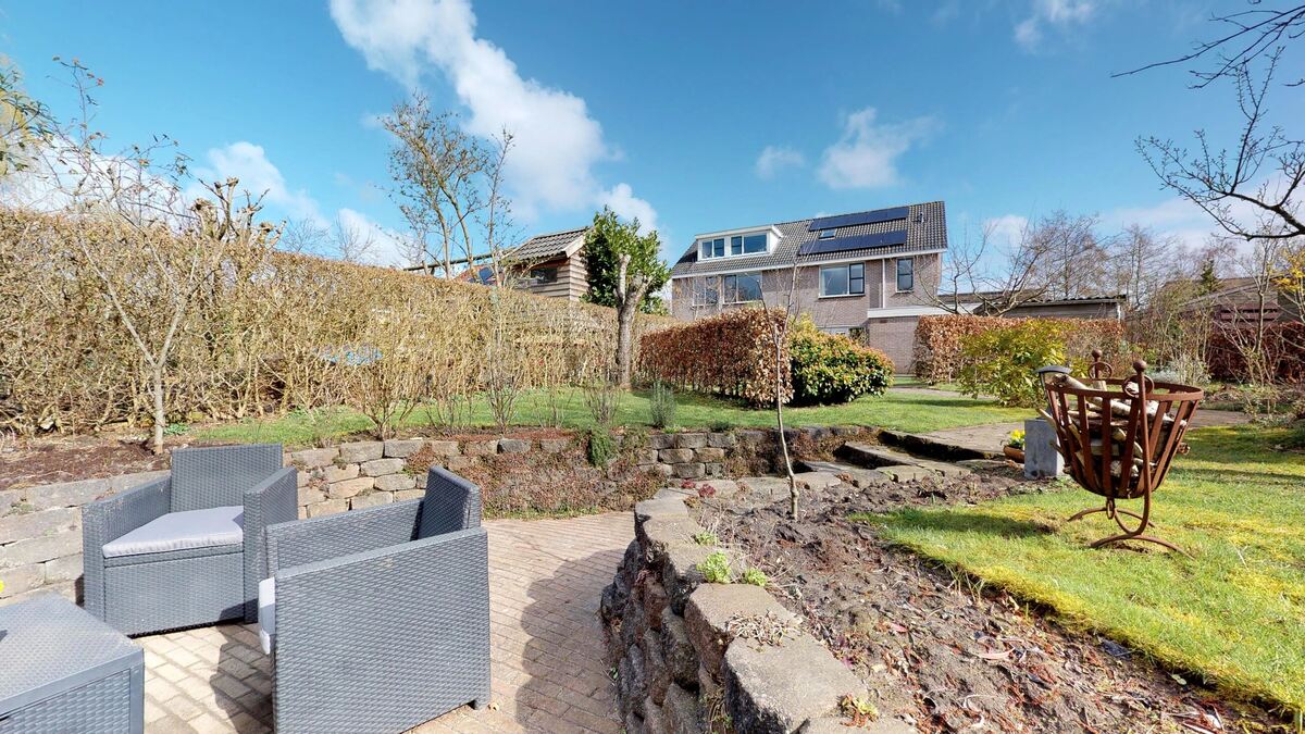De woning is gelegen op een perceel van maar liefst 517 m2 bestaande uit een aangelegde zongerichte achtertuin (circa 270 m2) op het westen. Vanuit de keuken via openslaande deuren naar een lekker terras. Maar ook gelegen aan het water met een heerlijke zitkuil! In de zomer een fijne visplaats en in de winter zo het ijs op! In de achtertuin staat een houten berging van 12 m2. Verder een keurige voortuin met oprit met plek voor 2 auto's.