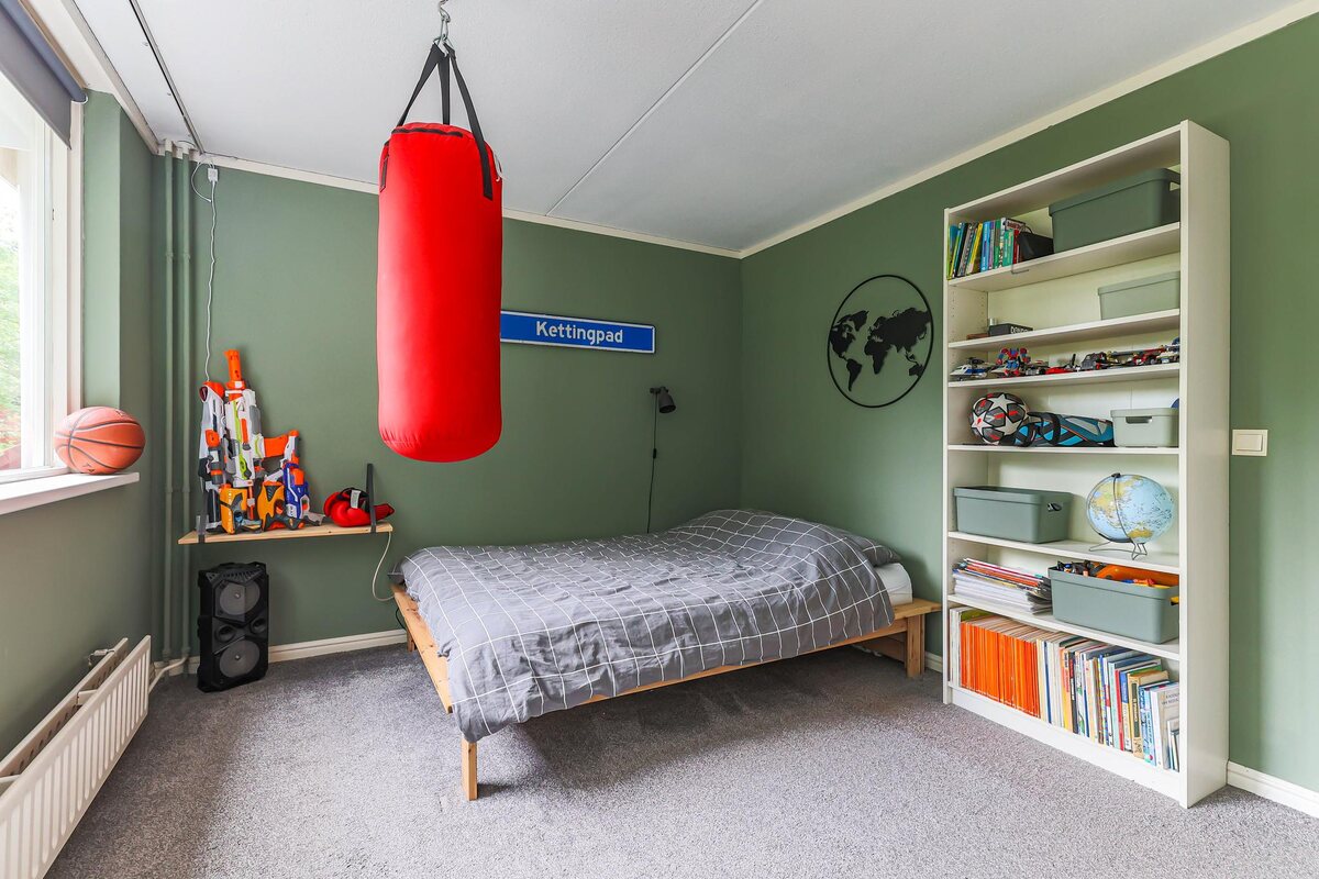 Begane grond: entree/tochtportaal, U-vormige woonkamer (maar liefst 50 m2!) met pelletkachel en open woonkeuken (2017) voorzien van diverse apparatuur en openslaande tuindeuren. Verder een praktische bijkeuken (5 m2) met wasmachineaansluiting. Tussenhal met toilet en trapopgang.Eerste verdieping: overloop, drie slaapkamers ca. 15, 12 en 7 m2 en een nette badkamer (5 m2) met ligbad met douche, tweede toilet en wastafel.Tweede verdieping: overloop, bergruimte en een fraaie 4e slaapkamer van 13 m2 (gemeten vanaf 1,5 m2).
