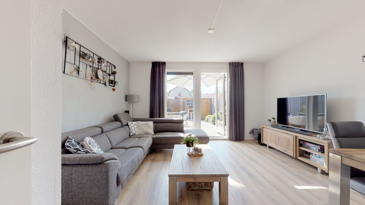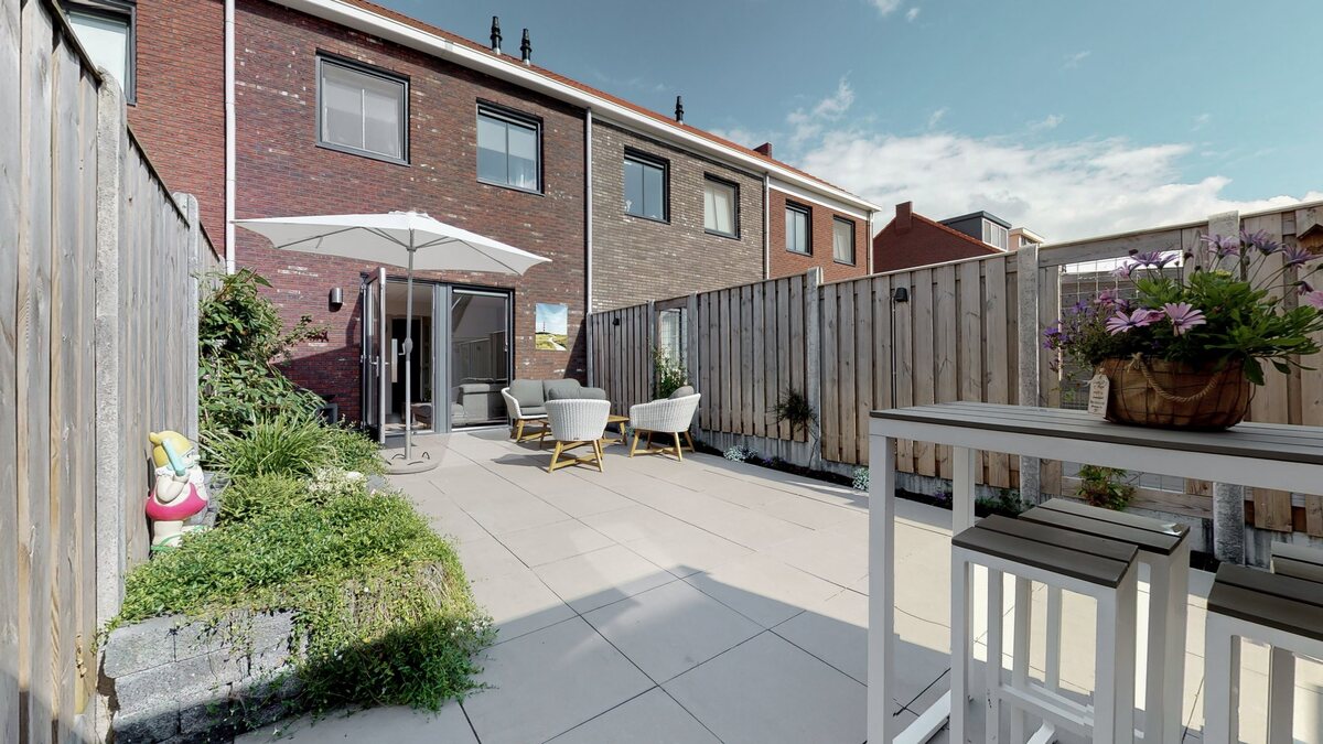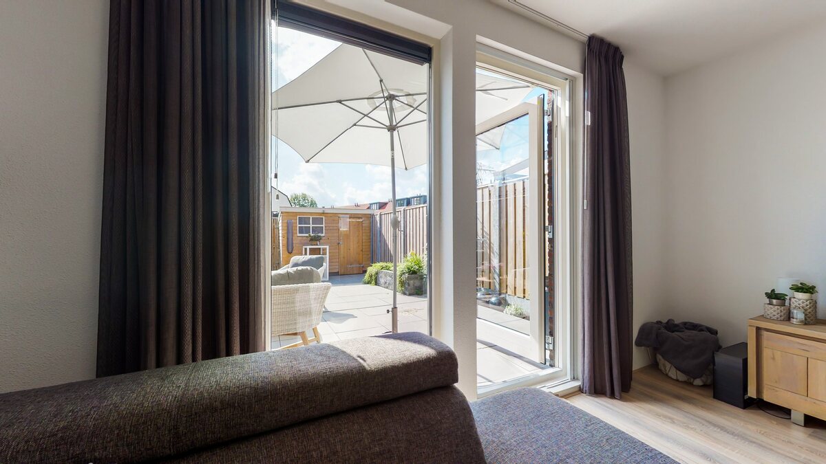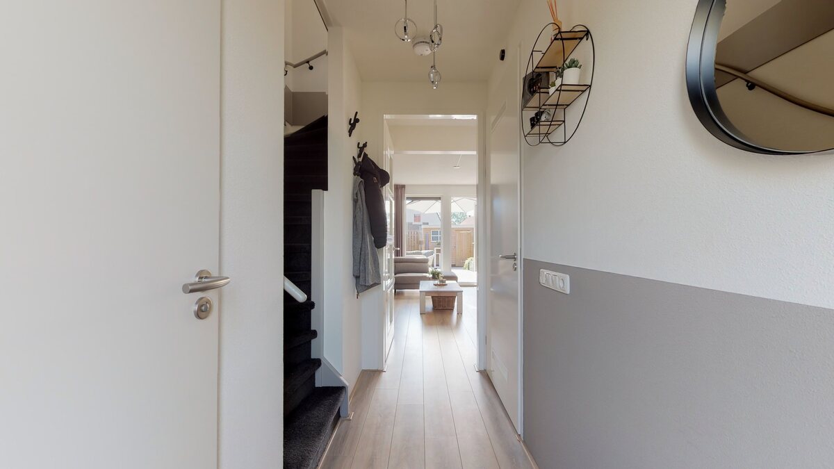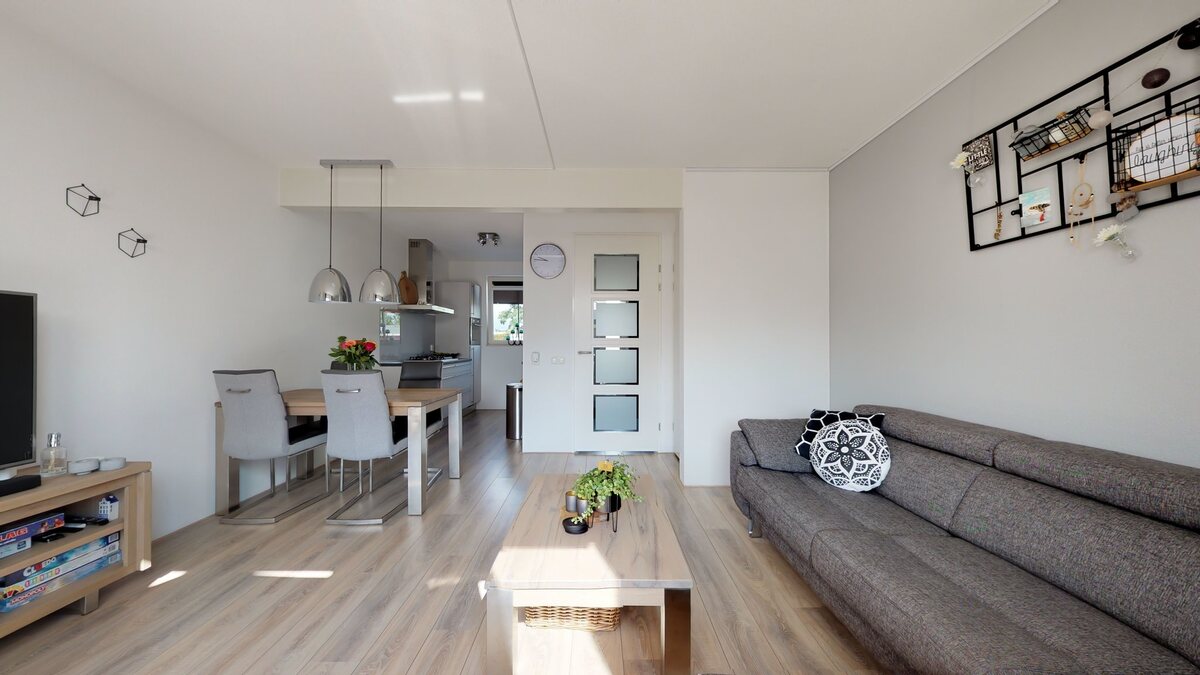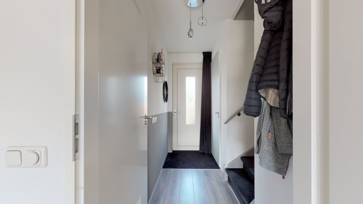Begane grond: entree, hal, toilet met hangend closet en fonteintje, lichte tuingerichte woonkamer met deur naar de tuin, trapkast, open moderne keuken voorzien van inbouwapparatuur. De woonkamer en keuken zijn samen circa 29 m2.Eerste verdieping: overloop, 2 slaapkamers van circa 14 en 12 m2, strakke, gave badkamer met ruime douche, toilet (hangend closet) en wastafelmeubel.Tweede verdieping: via vlizotrap naar de ruime zolder van circa 18 m2 (gemeten op 1,5m hoogte). Na plaatsing vaste trap is deze in te richten als derde slaapkamer en bergruimte.