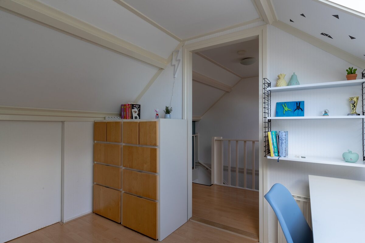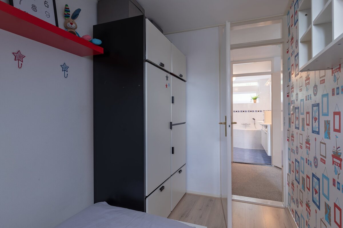 Begane grond: entree, ruime hal (circa 7 m2) en trapopgang, moderne meterkast en hangend toilet. Tuingerichte woonkamer (44 m2) met deur naar de tuin op het zuiden. Verder een moderne en luxe open keuken (2017) met een keukenblok in hoekopstelling, een barretje en inbouwapparatuur. Aan de voorzijde een flinke en praktische berging van 8 m2 (ook van binnenuit bereikbaar)Eerste verdieping: overloop, 3 slaapkamers (circa 15, 11 en 7 m2)en een nette badkamer met ligbad, hangend toilet, douchehoek en dubbel wastafelmeubel.Tweede verdieping: overloop met bergruimte voorzien van cv-ketelopstelling en wasmachineaansluiting en een 4e slaapkamer (ca. 9 m2) met dakraam