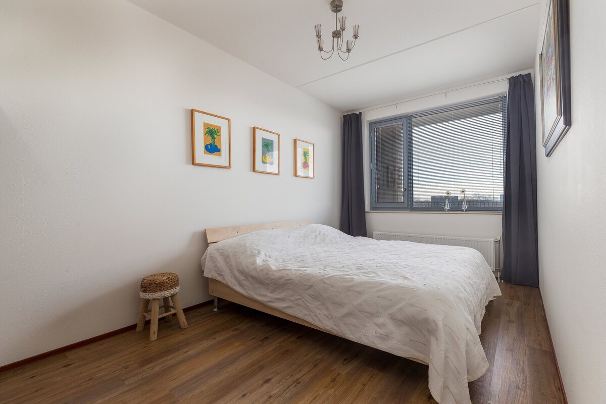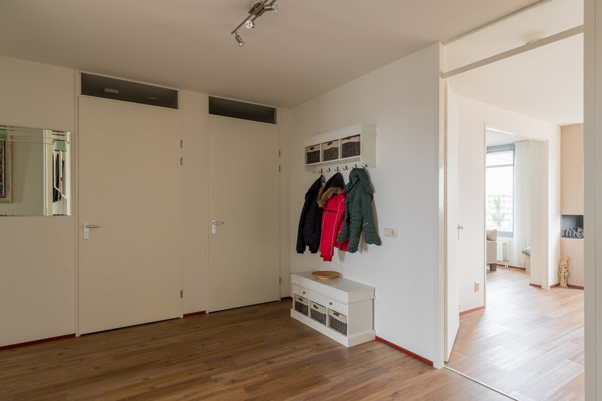 Begane grond: afgesloten portiek met videofoon, trapopgang, lift en toegang naar de parkeergarage en bergingen.Vierde verdieping: entree, ruime hal (16 m2), hangend toilet (2019), wasruimte, royale en lichte living (54 m2) verdeeld in een woonkamer (28 m2) en een fijne woonkeuken (25 m2) met aanrechtblok en kastenwand v.v. inbouwapparatuur (2019). Verder 3 slaapkamers (8, 12 en 21 m2) De grootste met inloopkast van 5 m2. De badkamer is 8 m2 en gepimpt in 2019. Met ligbad, douche en dubbel wasmeubel.