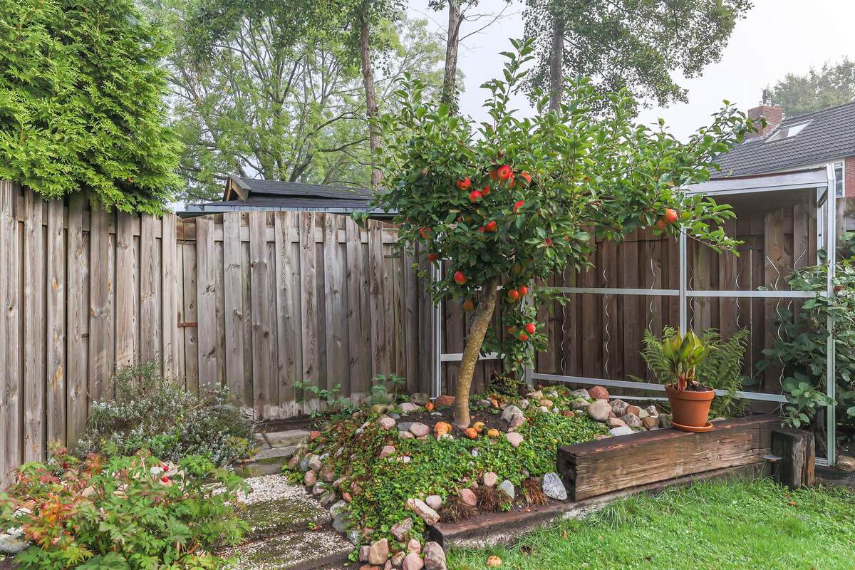 Het perceel is groot te noemen met een oppervlakte van 330 m2. Flinke voortuin en oprit (ook carport) en heerlijk besloten groene achtertuin (ongeveer 15 meter diep). Op het perceel een grote en praktische garage (28 m2) met smeerkelder en zolder.