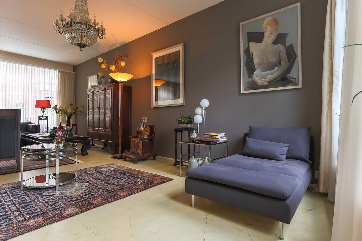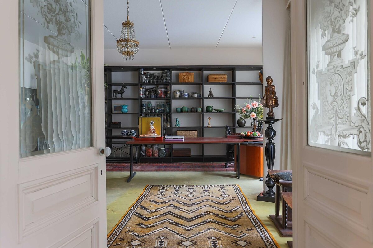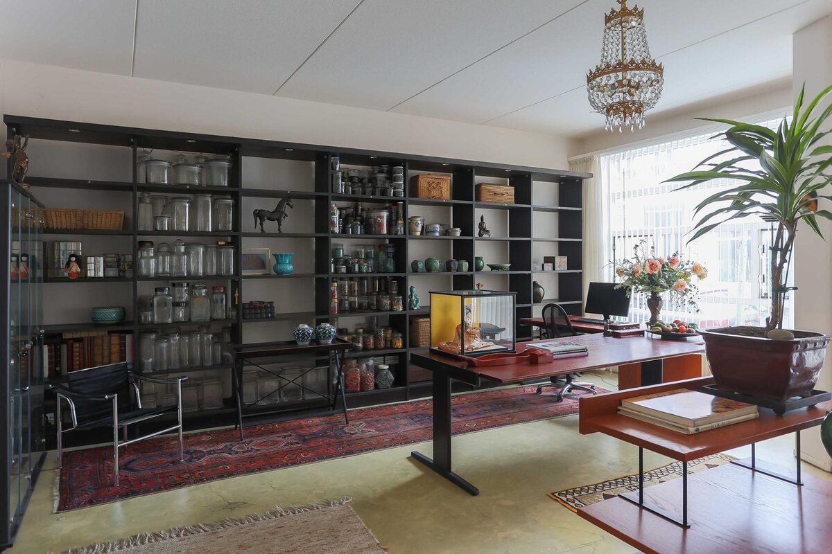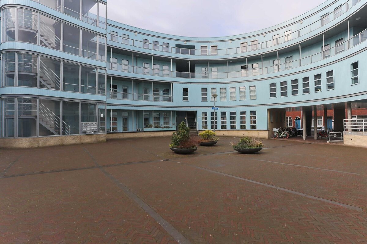 Entree/hal met granietvloer, toilet meterkast en toegang tot alle vertrekken.Woonkamer met open woonkeuken (ca 93 m2!) met gashaard, unieke (geschilderde marmer) vloer, veel raamoppervlak en uitkijk op de binnenplaats van het complex en op de Violenstraat. De woonkamer en keuken zijn gescheiden middels een room-divider. Deur naar het inpandige balkon aan de voorzijde.De keukeninrichting is wat gedateerd, maar wel voorzien van alle gemakken: koel-vriescombi, vaatwasser, oven, inductiekookplaat en heel veel bergruimte in onder- en bovenkastjes.Het atelier (ca. 38 m2) is bereikbaar via fraaie karakteristieke openslaande deuren vanuit de woonkamer en vanuit de hal. Deze prachtige multifunctionele ruimte heeft eveneens een deur naar het voorgelegen balkon.De L-vormige slaapkamer (ca. 28 m2) heeft een eigen balkon, walk-in-closet en een schuifpui naar de stadstuin.Badkamer (ca. 10 m2) met ligbad, wastafelmeubel, douche en toilet.Stadtuin: op de middag- en avondzon, ca. 8,5 m. diep bij 3,5 m breed.Ruime bijkeuken (ca. 9 m2) met CV ketel en wasm. aansluiting.