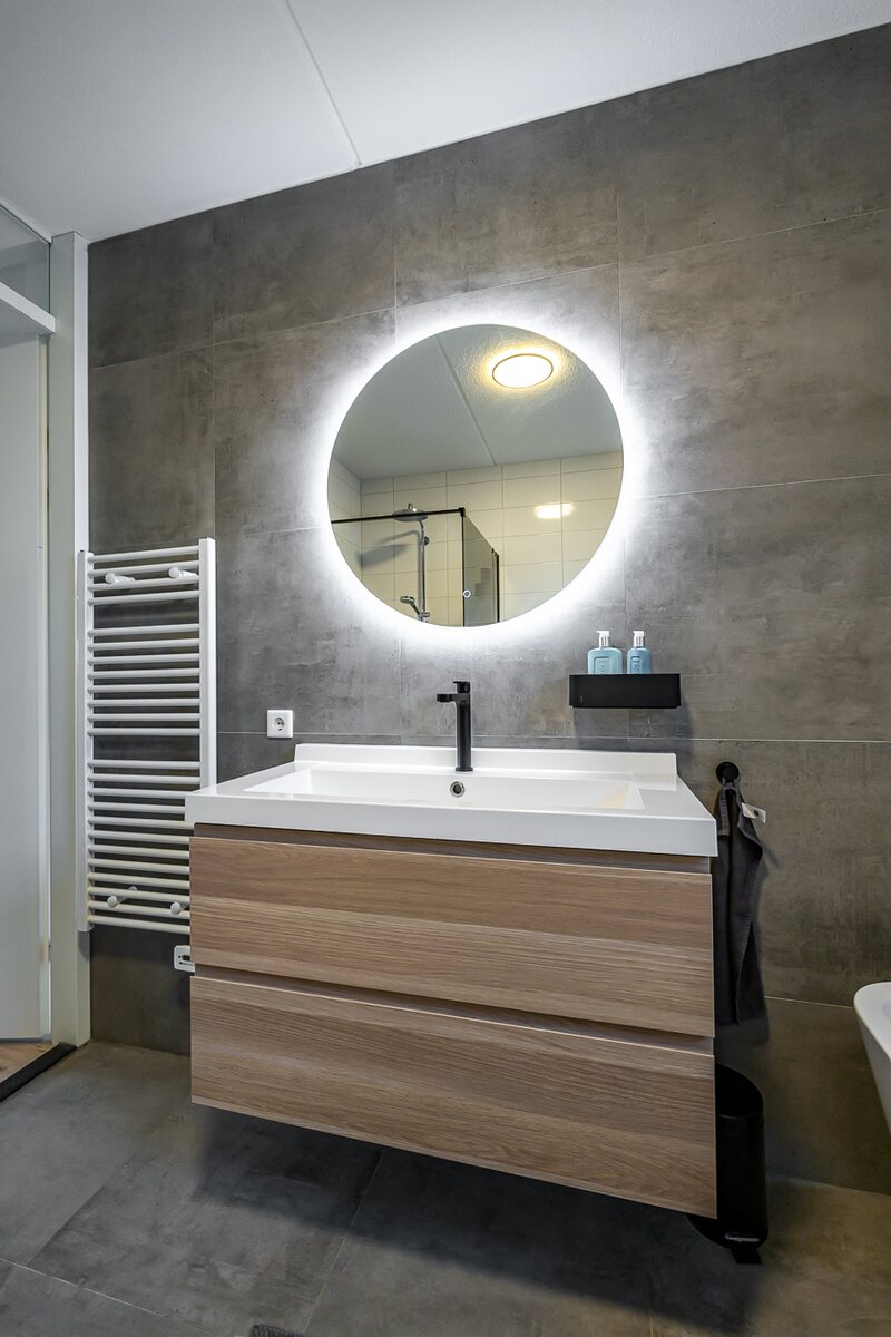 Eerste verdieping: overloop.Op de eerste verdieping bevinden zich drie slaapkamers van 13, 13 en 8 m2. Moderne en luxe badkamer (ca. 7 m2) die beschikt over een design ligbad, wastafelmeubel, een inloopdouche en een tweede toilet.
