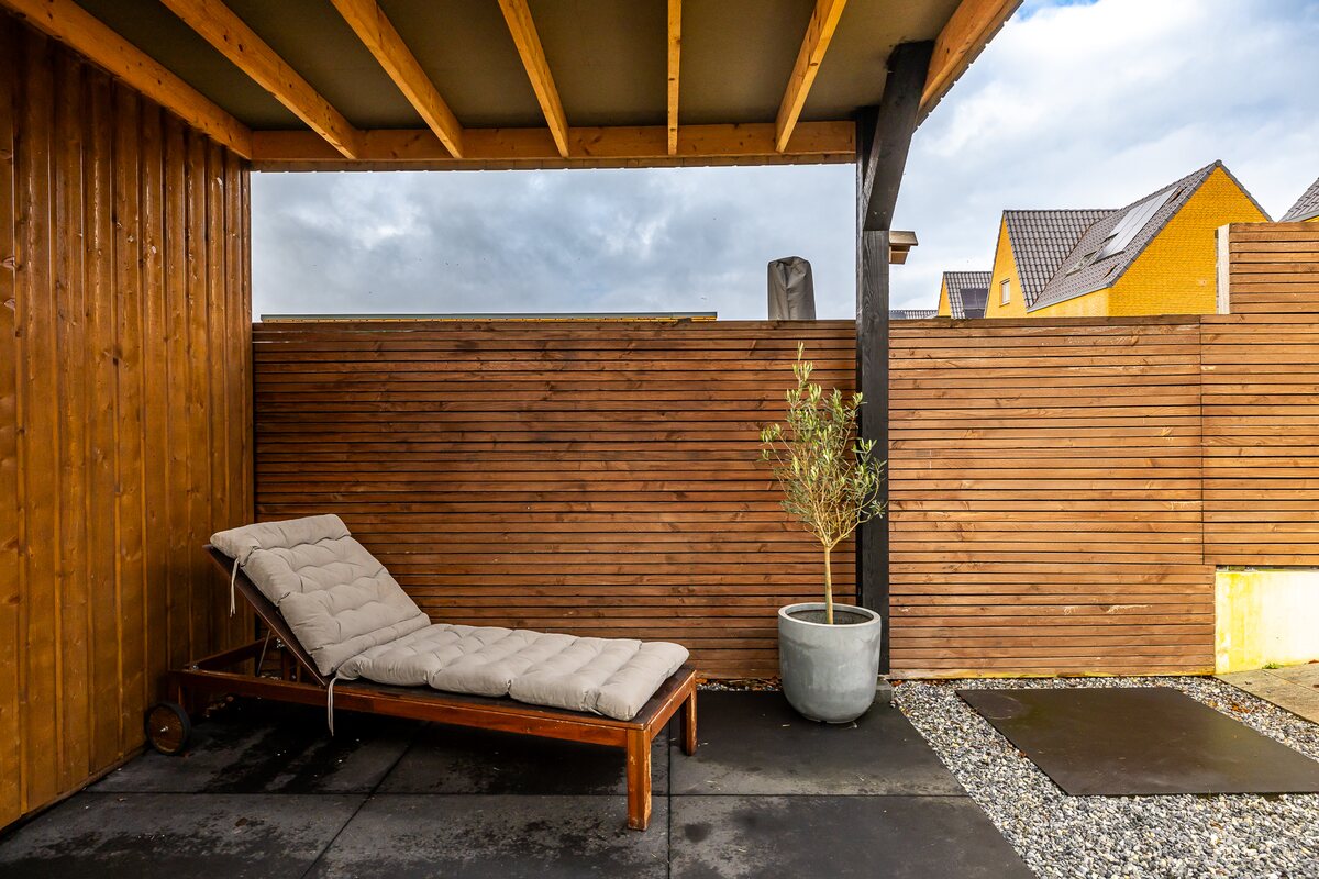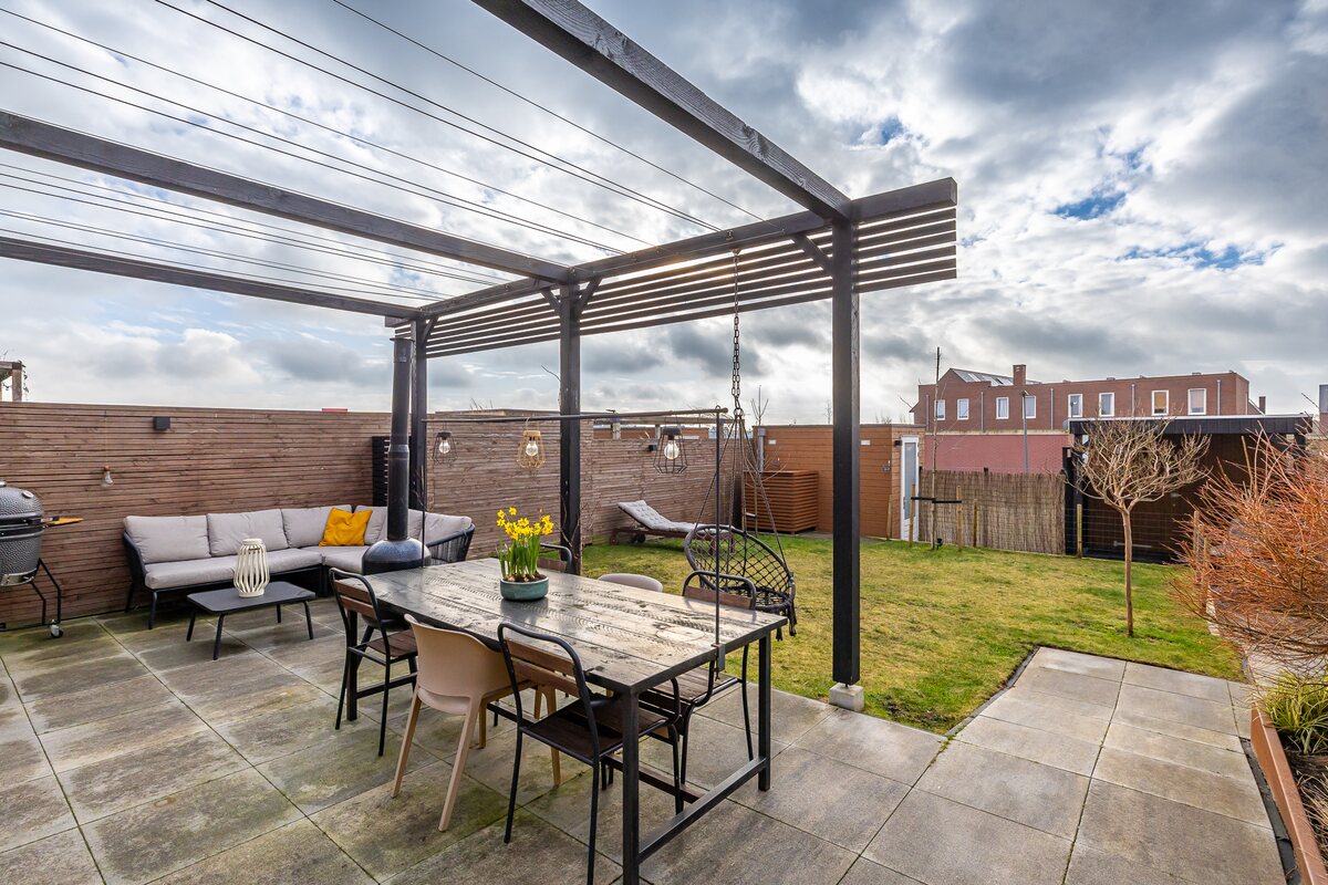 De woning beschikt over een heerlijke diepe en brede tuin, georiënteerd op het zuiden, twee houten bergingen, waarvan een met overkapping. Pal achter de woning ligt een zonneterras met een zonnescherm. De twee parkeerplaatsen liggen direct aan de tuin.