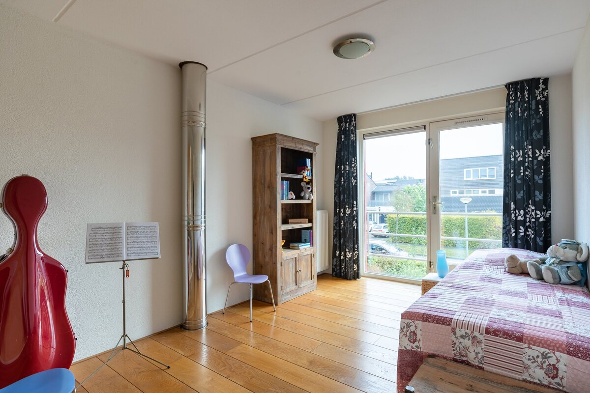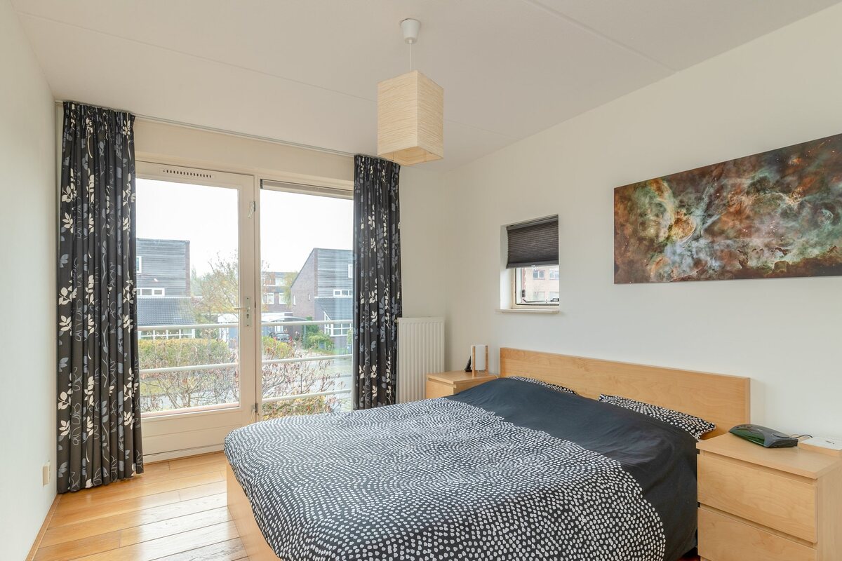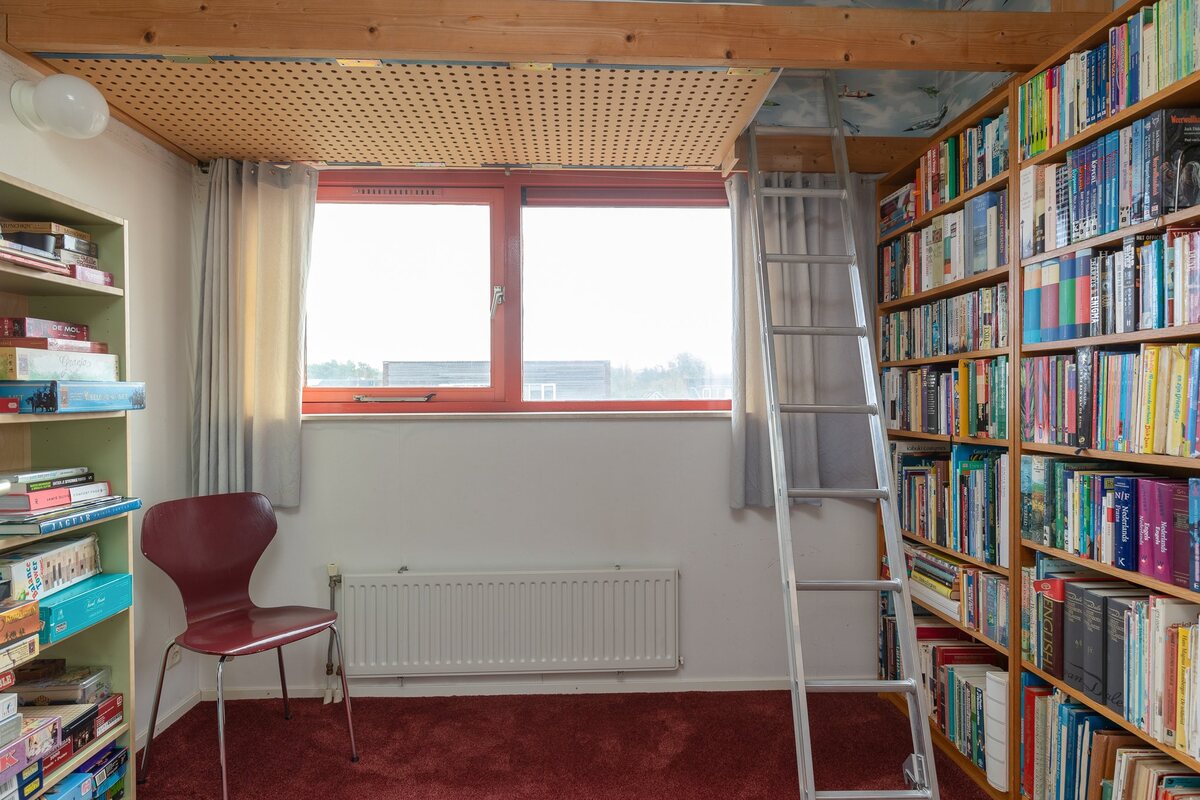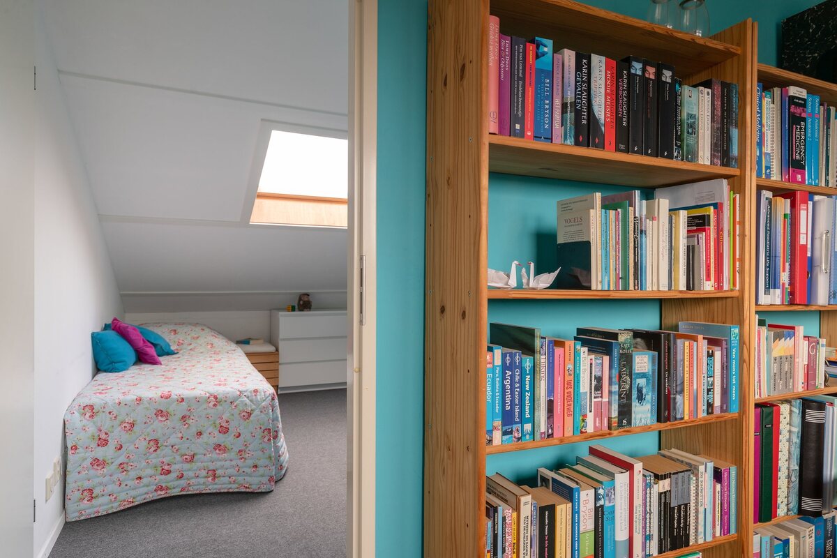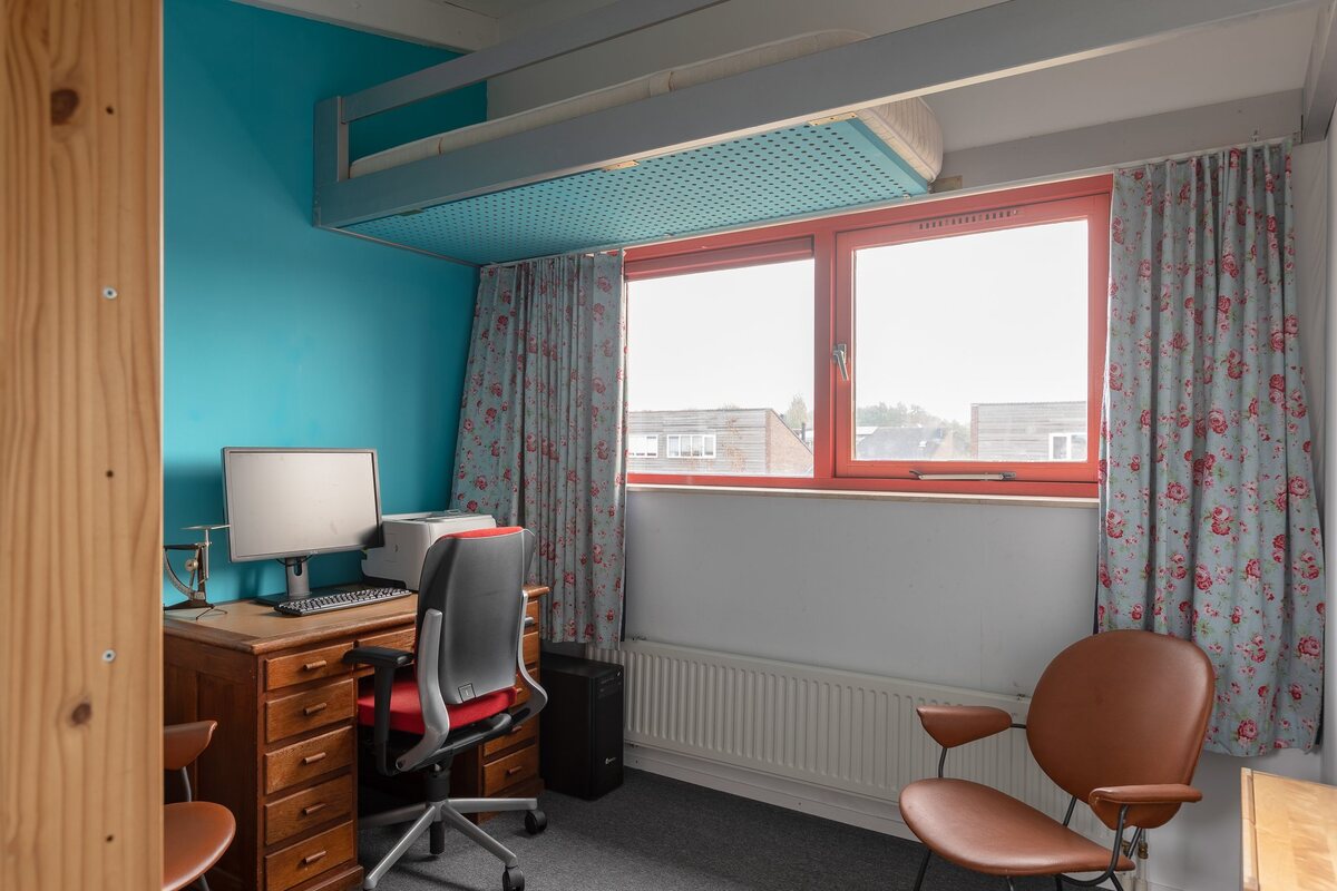 Tweede verdieping: overloop en bergruimte, 3 slaapkamers van resp. 8, 8 en 8 m2. Een slaapkamer is toegankelijk via de andere slaapkamer. Extra dakraam. Twee slaapkamers hebben gave hoogslapers!
