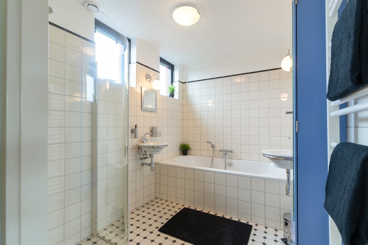 Eerste verdieping: ruime lichte overloop, ouderslaapkamer (circa 15 m2) is voorzien van een frans balkon, slaapkamer van circa 11 m2 voorzien van een frans balkon en met toegang tot trapkast, separaat tweede toilet en badkamer voorzien van ligbad, douchecabine en 2 wastafels in praktische opstelling.