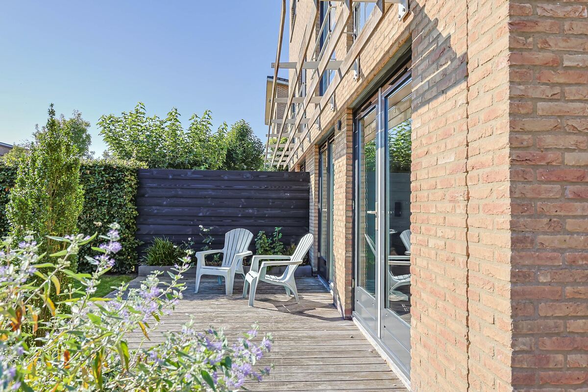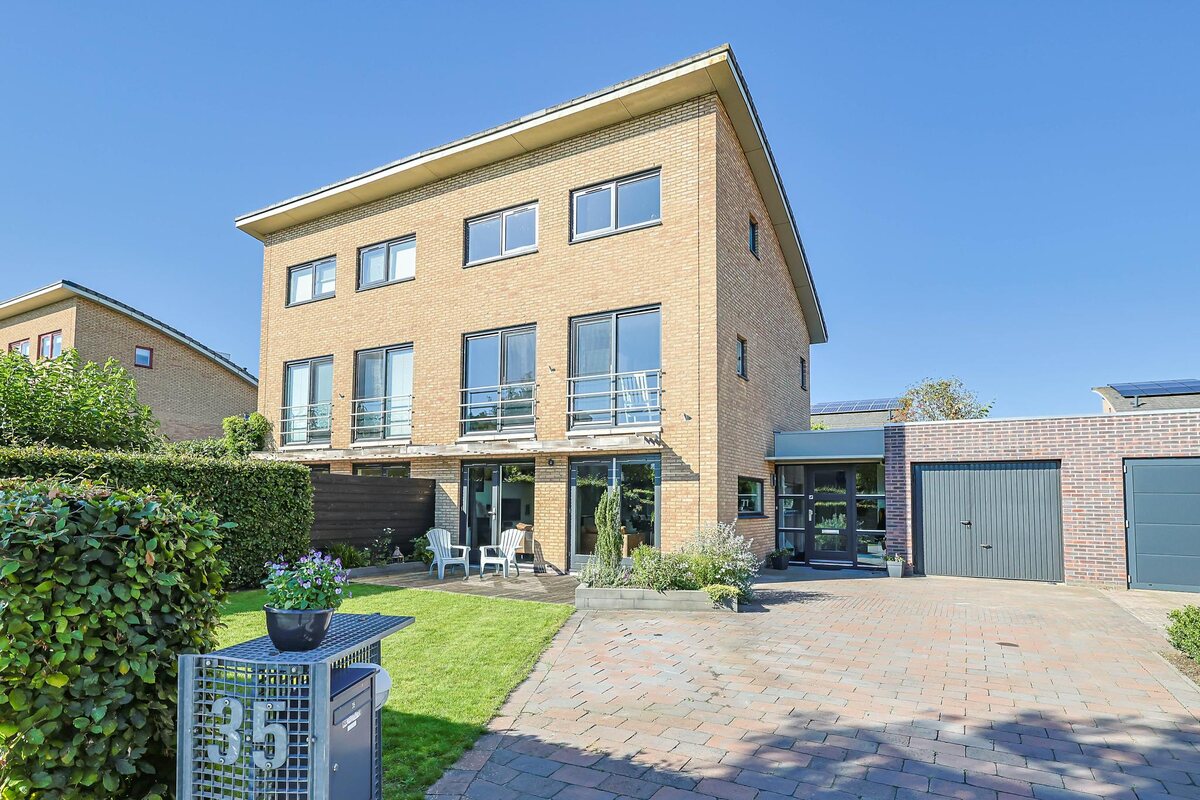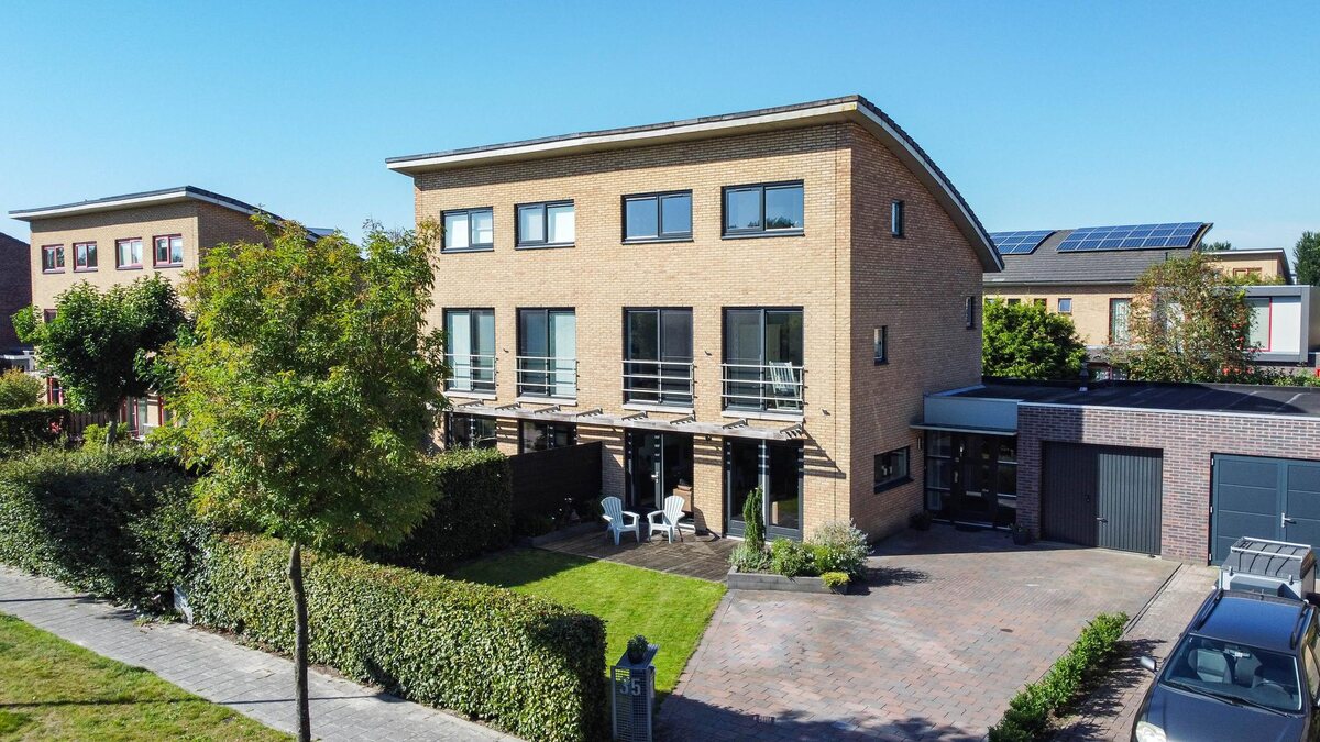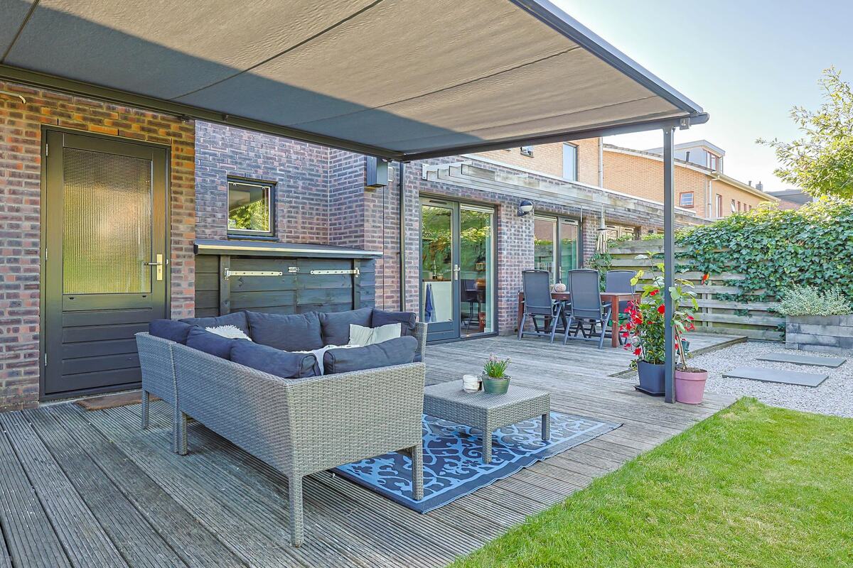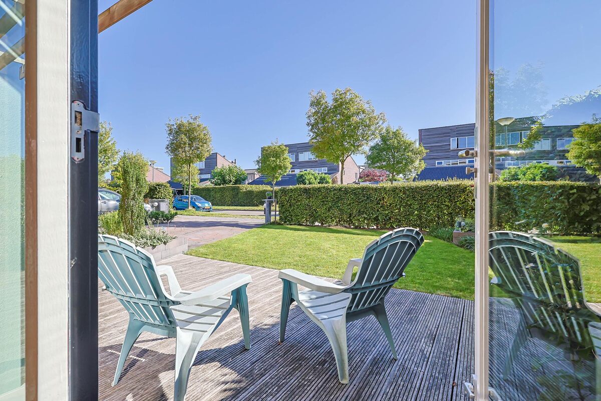 Heerlijk zonovergoten en besloten achtertuin (ca. 10 bij 10 m.) op het westen met groot elektrisch zonnescherm, buitenkraan, terras, borders en gazon.Grote eigen oprit voor drie auto's.Ruime voortuin op de ochtendzon.