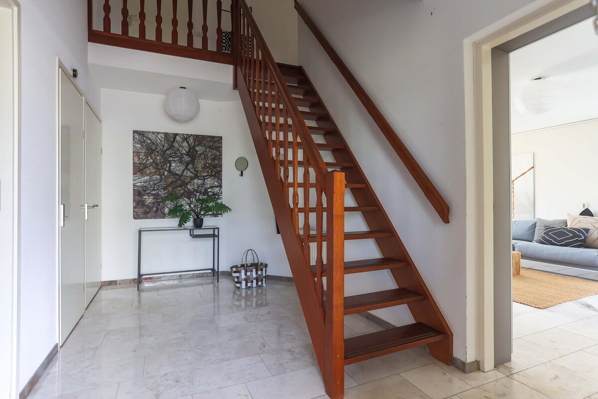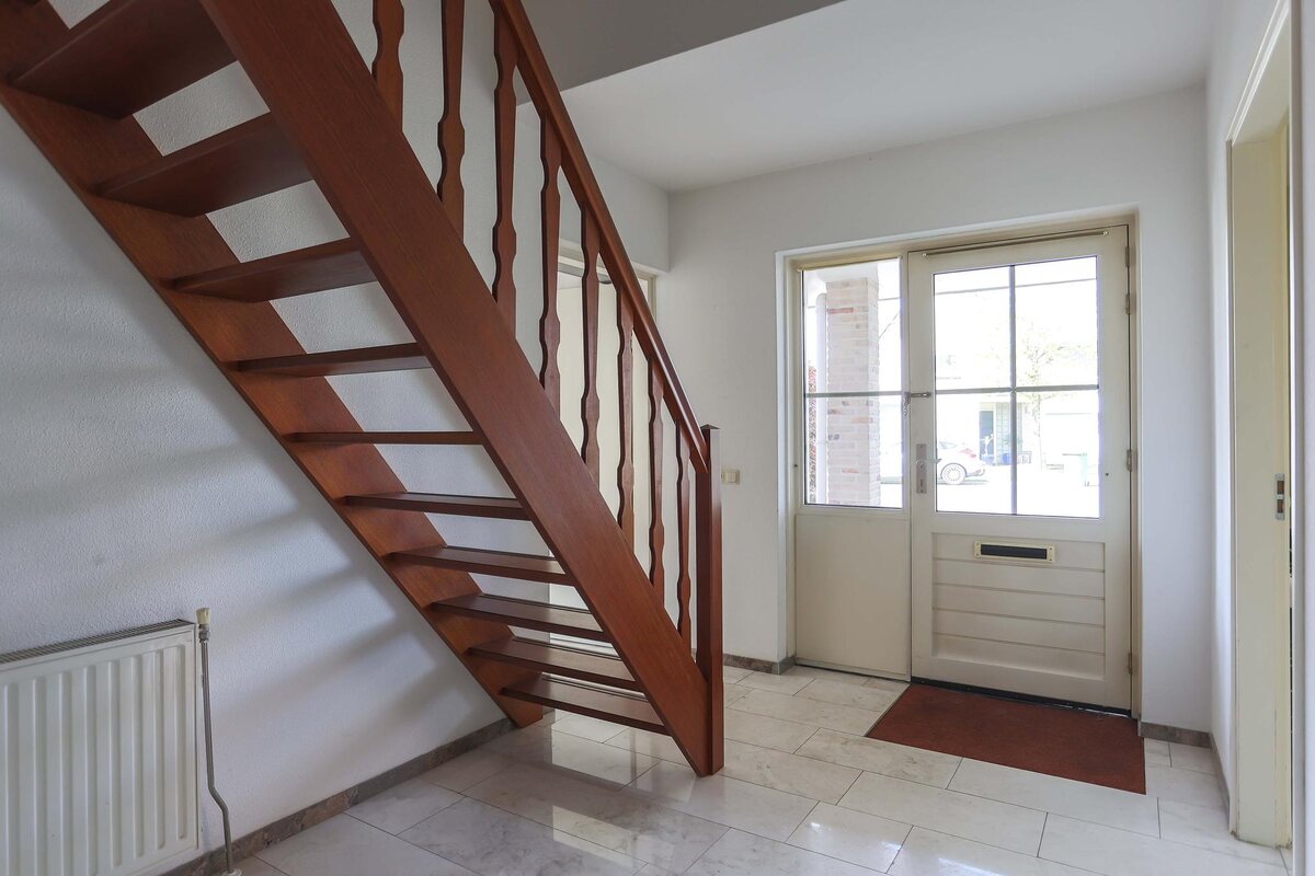 Begane grond: entree/hal (lekker ruim van formaat), meterkast, hangend toilet, slaapkamer van 16 m2 met doorloop naar de 1e badkamer van 5 m2, lichte en riante L-vormige woonkamer circa 51 m2 (vloerverwarmd) met schuifpui naar de tuin, half open keuken met een nette keukeninrichting. Riante bijkeuken met wasmachineaansluiting en doorloop naar de ruime garage van 27 m2. Eerste verdieping: overloop, 3 flinke slaapkamers (26, 16 en 14 m2), waarvan 1 met inloopkast en een betegelde (2e) badkamer (11 m2) met douche, hoekbad, twee wastafels en een tweede toilet.Tweede verdieping: via vlizotrap te bereiken zolder (bruto vloeroppervlak van 37 m2).